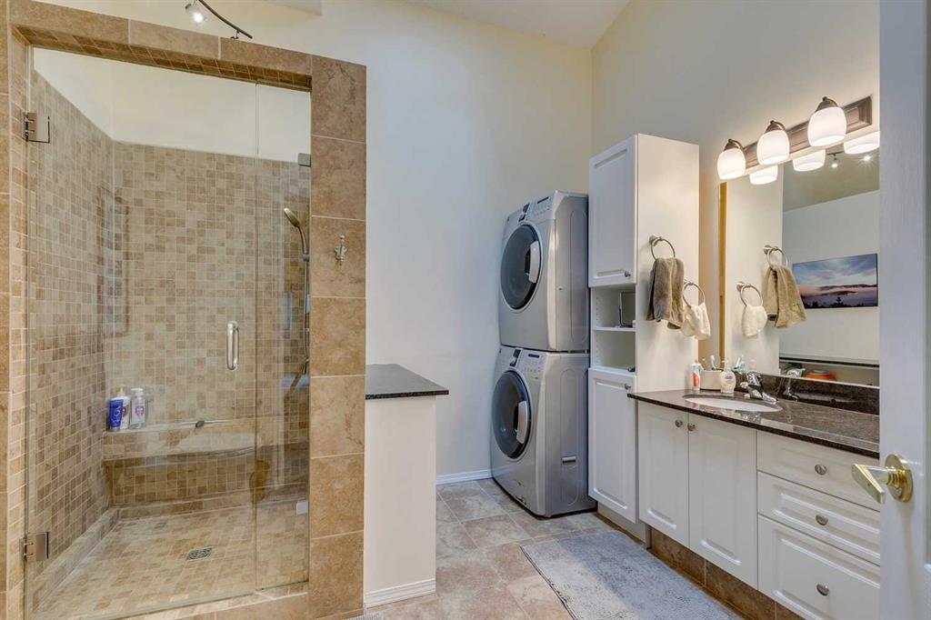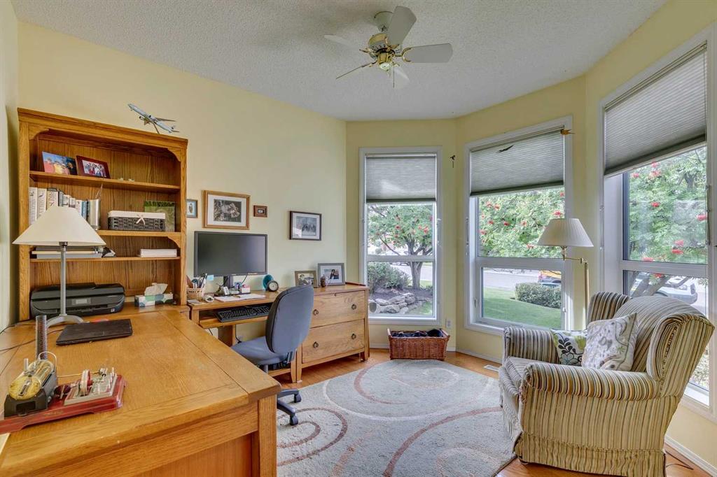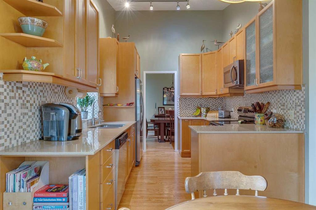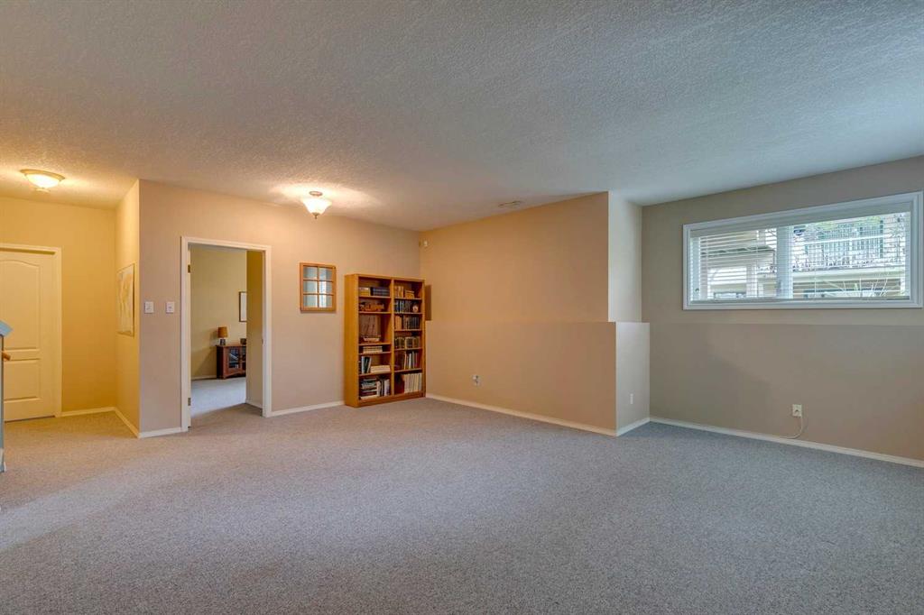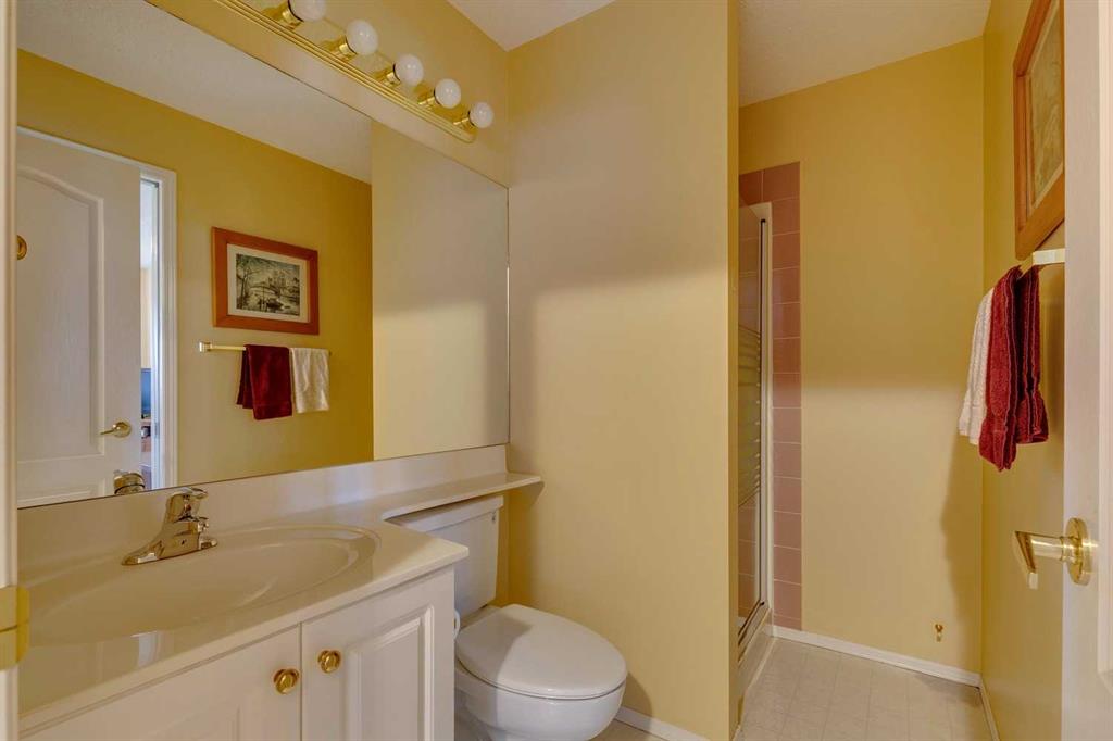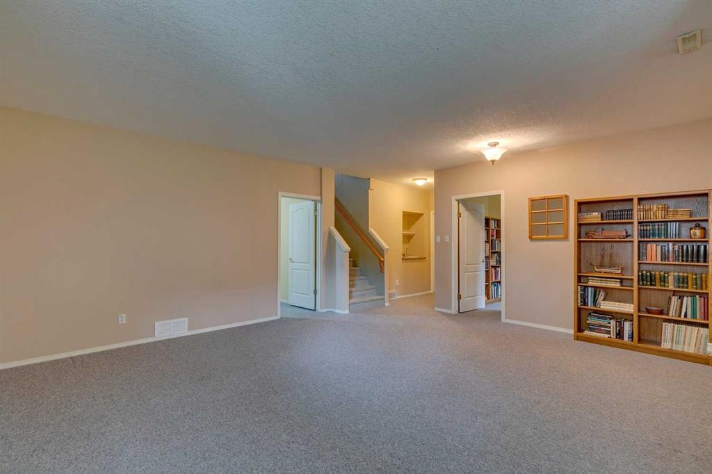 Excellent opportunity in this highly sought-after fee-simple detached bungalow villa complex in Evergreen Estates. $164/month includes snow removal and landscaping, allowing you to enjoy a carefree lifestyle in a detached bungalow. Nicely upgraded and maintained home features soaring vaulted ceilings, rich 3/4″ white oak hardwood floors, a newer kitchen with full-height cabinets, quartz countertops, stainless steel appliances and tile backsplash. Large primary bedroom with a lavish renovated ensuite and main floor bath with an oversized 10mil glass shower, granite vanities, tile floors, undermount sinks, and upgraded faucets. Full basement development offers a third bedroom, a huge family room with a fireplace, a cozy wet bar, a full bath, a craft room/second office, and a workshop. New furnace and hot water tank, new water softener, rebuilt composite rear deck, triple pane windows with metal clad exterior frames, new gutters, newer garage door and opener, some upgraded blinds, new front and rear doors and more. This property has been professionally maintained, and mechanical components have been serviced regularly since the owners purchased the home. Walk to Fish Creek Park in seconds from this home or enjoy the amazing network of community pathways. Great access to the ring road, shopping and schools. Evergreen Estates is a truly “Estate” home community with only single-family homes, large lots, very low density and mature trees throughout the community. The sellers have only occupied the home for seven months a year since they have owned it.