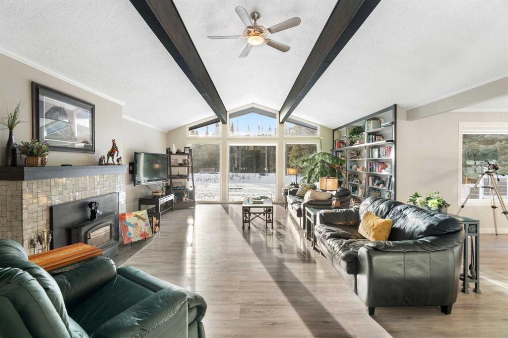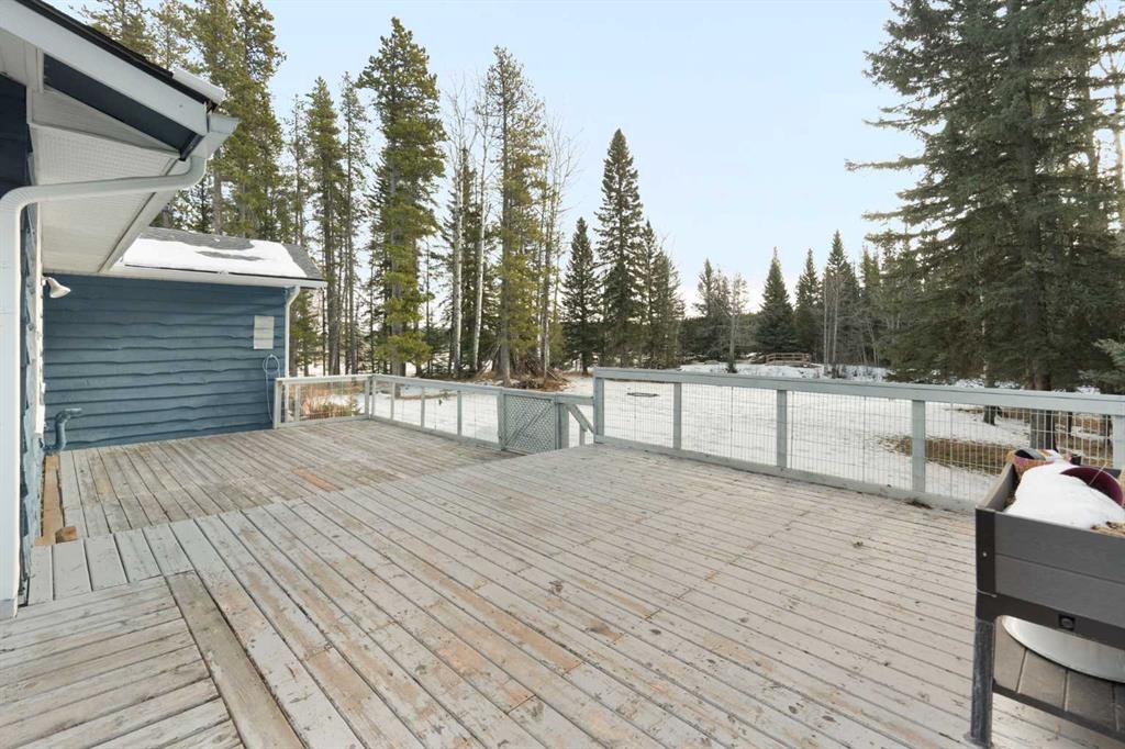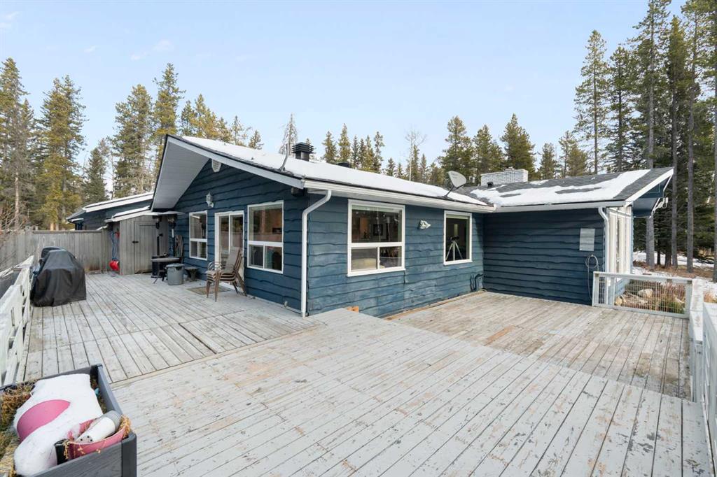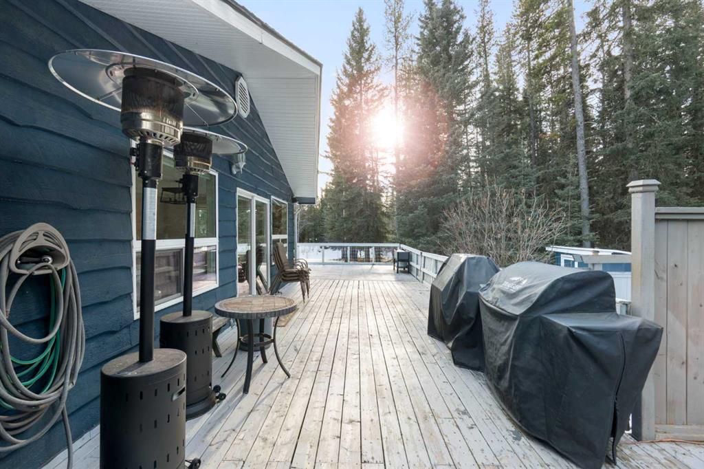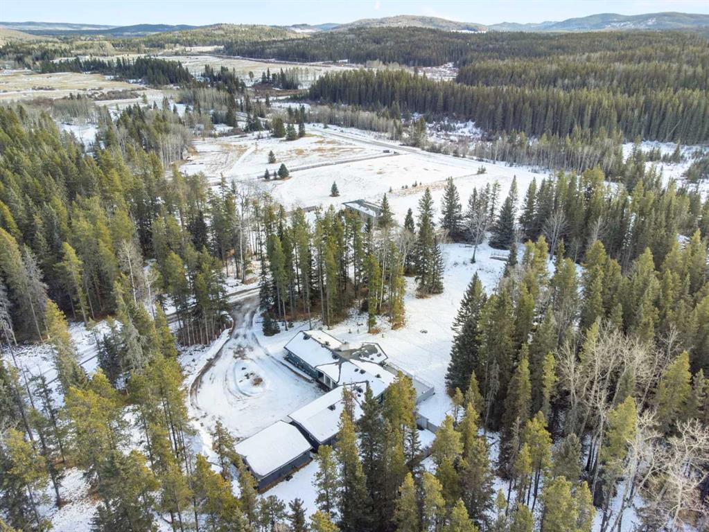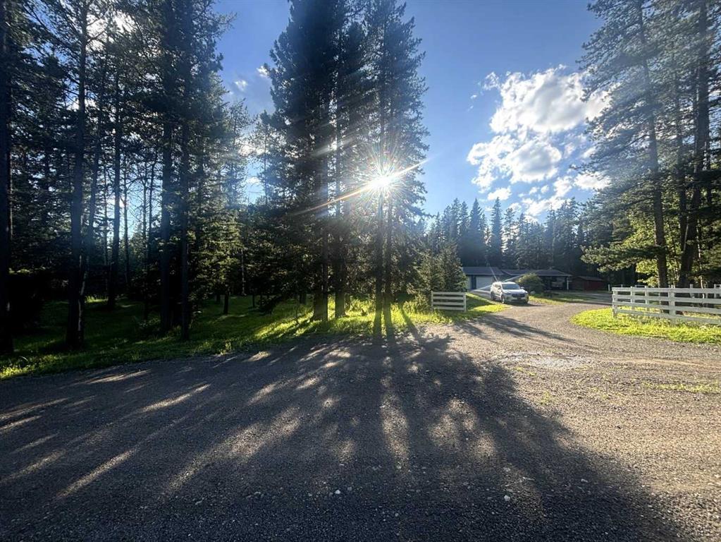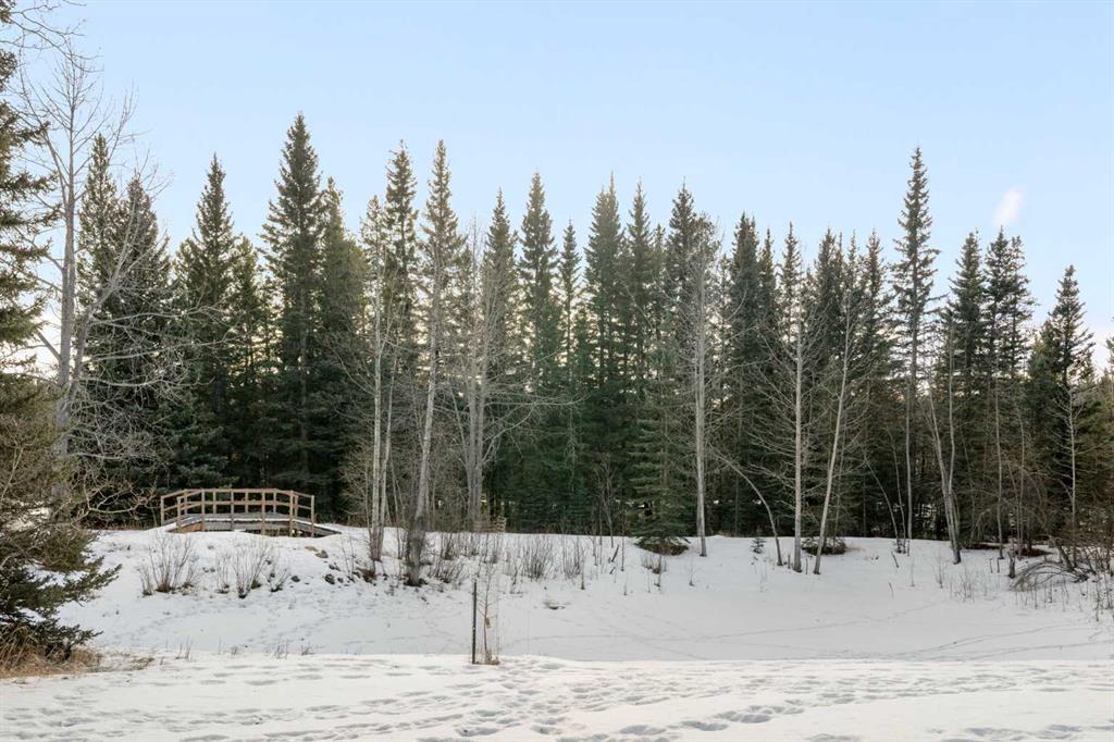 Set on a private and beautifully treed 4-acre estate parcel in West Bragg Creek, this exceptional property offers a rare blend of refined country living, modern comfort, and equestrian capability—just 7 minutes to Bragg Creek and within easy reach of Calgary. Boasting approximately 2,400 sq ft above grade, with 762 sq ft in the lower level (plus a crawl space), the home is thoughtfully designed for both elegant entertaining and everyday living. A dramatic Vaulted Family room anchors the residence with soaring vaulted ceilings, a wood-burning fireplace, and expansive windows framing breathtaking natural views in every season. The kitchen, dining, and family spaces flow seamlessly to an impressive wraparound deck, lower level reinforced to support an above ground outdoor pool and a deck storage room. Also featuring a private hot tub area under the stars—perfect for summer gatherings or quiet evenings immersed in nature. The primary suite is a private retreat with a coffee bar, oversized walk-in closet, and doors leading directly to the rear deck, complemented by a 3-piece ensuite. Two additional bedrooms, a full bath, and main-level laundry complete the living space. An attached heated and insulated garage with dog door and kennel, along with two fully fenced dedicated dog runs, caters perfectly to acreage living. An additional three-car carport provides ample covered parking for vehicles, trailers, or recreational equipment. There is a large shed off the deck for patio furniture storage, a small tool storage shed, and a skid mounted, five cord wood shed. A backup emergency generator ensures year-round peace of mind. The lower level offers a large recreation room (ideal for a home gym), a home office, utility space and pump room, and abundant crawl-space storage—perfect for a media lounge, or hobby space. Outdoors, manicured lawns, mature trees, and a tranquil pond with bridge create a secluded, park-like setting. The property is partially fenced with the East and North sides open, and ample spare posts on site. It is zoned for up to four horses, making it ideal for equestrian enthusiasts who value both beauty and functionality. Enjoy starry nights, quiet walks along the pond, or relaxing in the hot tub surrounded by nature. A rare offering that combines luxury, land, lifestyle, and location in one of the Foothills’ most coveted communities. Large Upgraded Windows, 1200 sq ft main deck,
