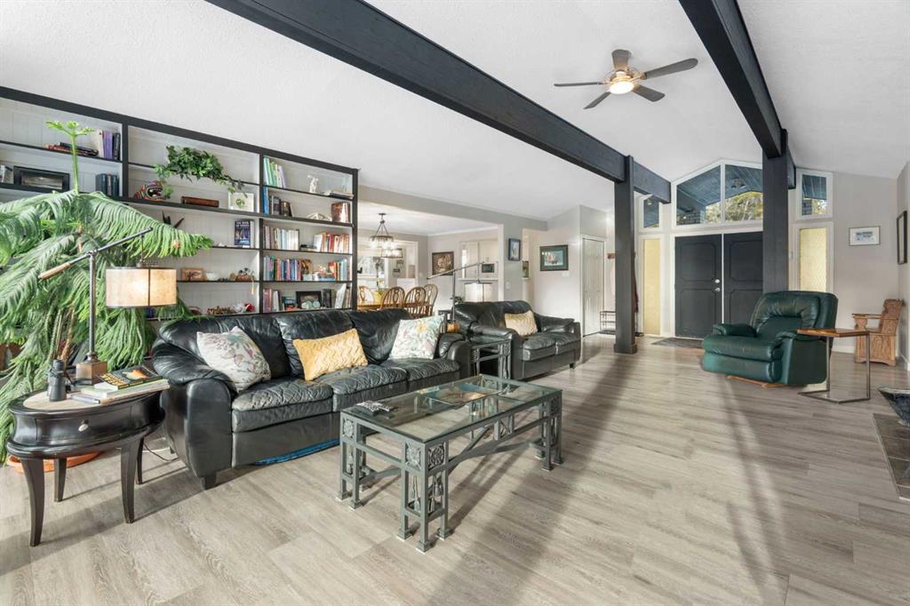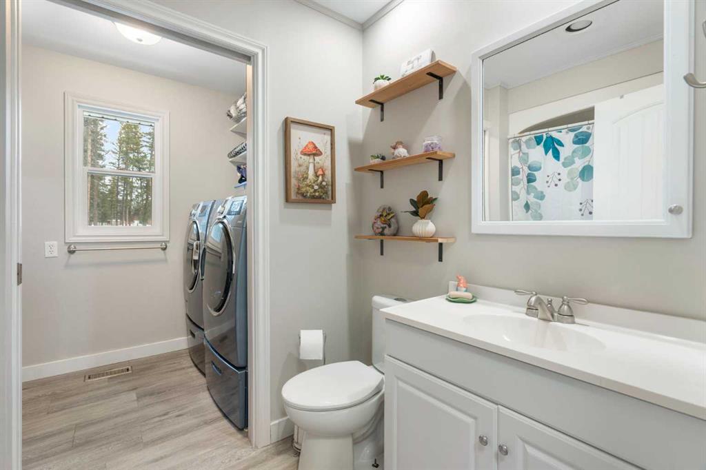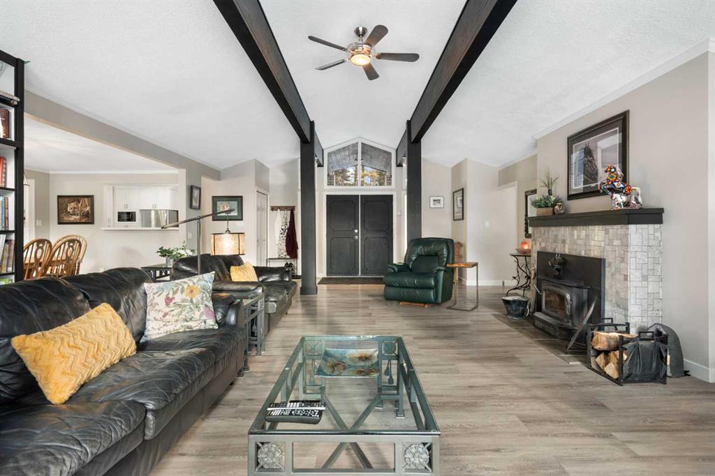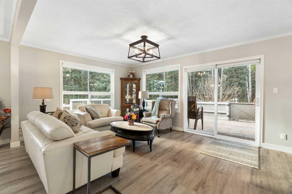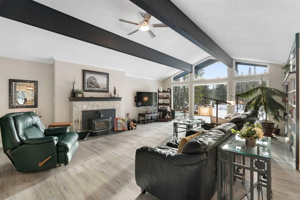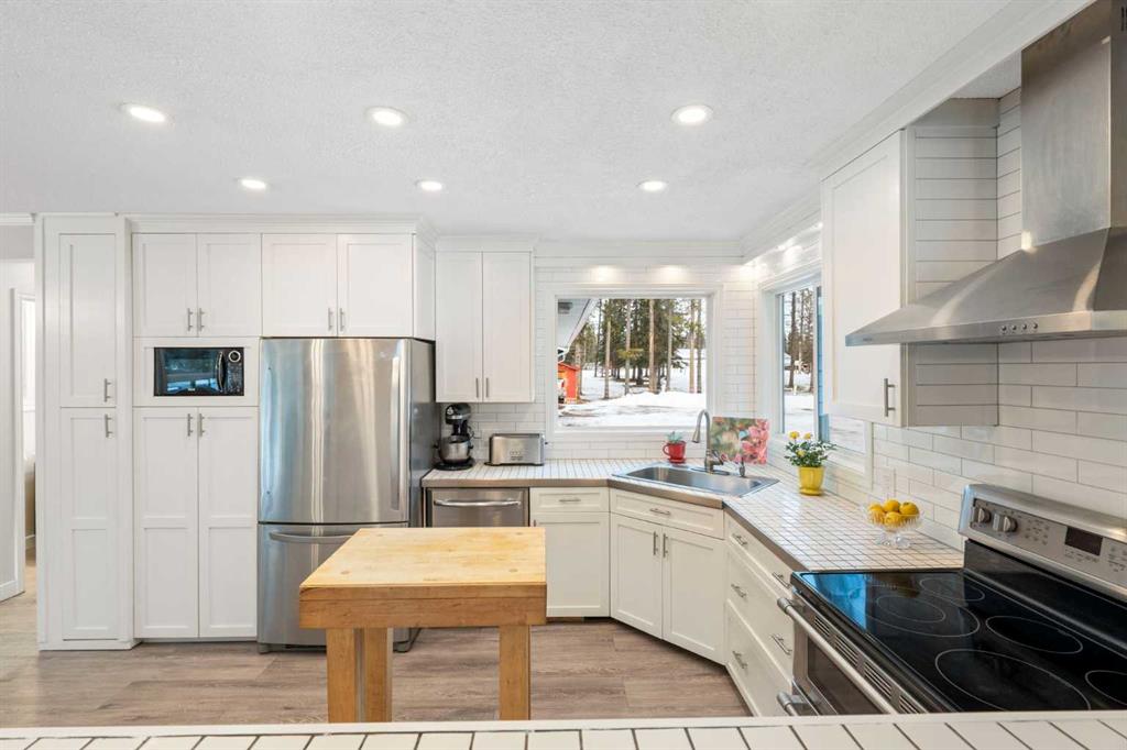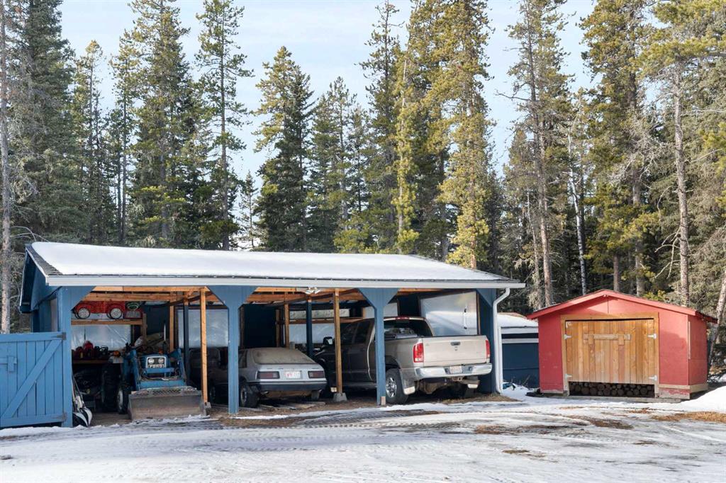 Set on a private and beautifully treed 4-acre estate parcel in West Bragg Creek, this exceptional property offers a rare blend of refined country living, modern comfort, and equestrian capability—just 7 minutes to Bragg Creek and within easy reach of Calgary. Boasting approximately 2,400 sq ft above grade, with 762 sq ft in the lower level (plus a crawl space), the home is thoughtfully designed for both elegant entertaining and everyday living. A dramatic Vaulted Family room anchors the residence with soaring vaulted ceilings, a wood-burning fireplace, and expansive windows framing breathtaking natural views in every season. The kitchen, dining, and family spaces flow seamlessly to an impressive wraparound deck, lower level reinforced to support an above ground outdoor pool and a deck storage room. Also featuring a private hot tub area under the stars—perfect for summer gatherings or quiet evenings immersed in nature. The primary suite is a private retreat with a coffee bar, oversized walk-in closet, and doors leading directly to the rear deck, complemented by a 3-piece ensuite. Two additional bedrooms, a full bath, and main-level laundry complete the living space. An attached heated and insulated garage with dog door and kennel, along with two fully fenced dedicated dog runs, caters perfectly to acreage living. An additional three-car carport provides ample covered parking for vehicles, trailers, or recreational equipment. There is a large shed off the deck for patio furniture storage, a small tool storage shed, and a skid mounted, five cord wood shed. A backup emergency generator ensures year-round peace of mind. The lower level offers a large recreation room (ideal for a home gym), a home office, utility space and pump room, and abundant crawl-space storage—perfect for a media lounge, or hobby space. Outdoors, manicured lawns, mature trees, and a tranquil pond with bridge create a secluded, park-like setting. The property is partially fenced with the East and North sides open, and ample spare posts on site. It is zoned for up to four horses, making it ideal for equestrian enthusiasts who value both beauty and functionality. Enjoy starry nights, quiet walks along the pond, or relaxing in the hot tub surrounded by nature. A rare offering that combines luxury, land, lifestyle, and location in one of the Foothills’ most coveted communities. Large Upgraded Windows, 1200 sq ft main deck,