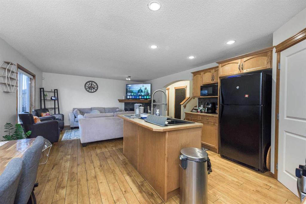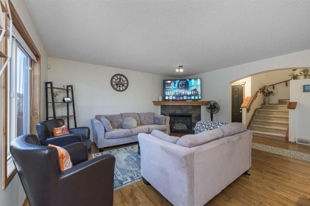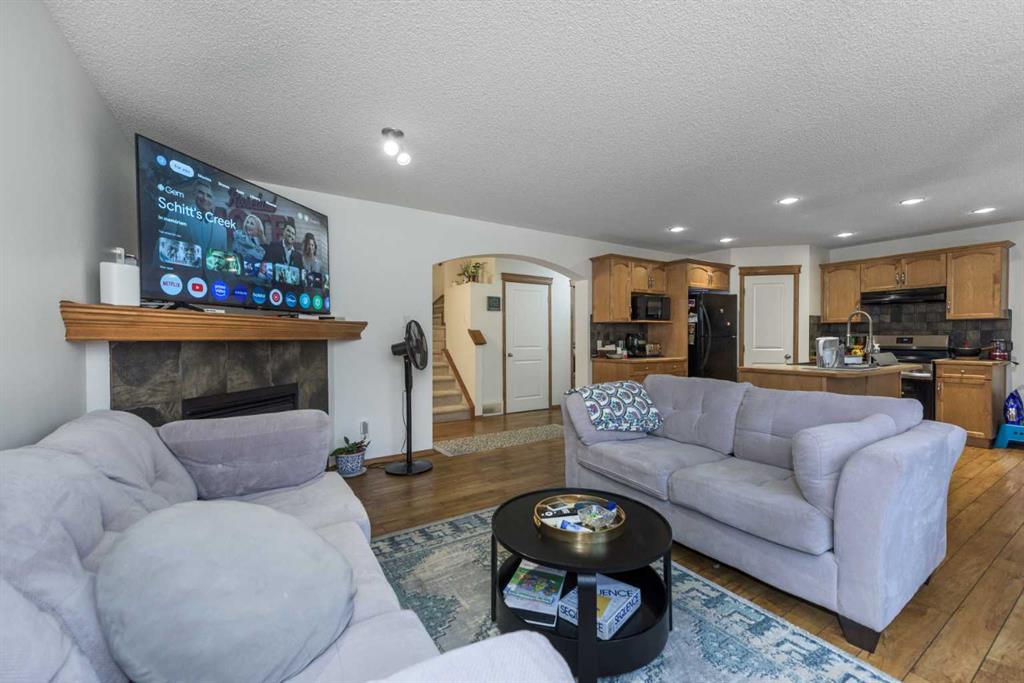 The main floor features a bright and inviting open concept design with a spacious living area, dining space, and a well-appointed kitchen ideal for both everyday life and entertaining. The cozy living room fireplace creates the perfect focal point — adding warmth and comfort during Calgary’s winter months. A convenient powder room (half bath) and direct access to the double attached garage complete the main level.