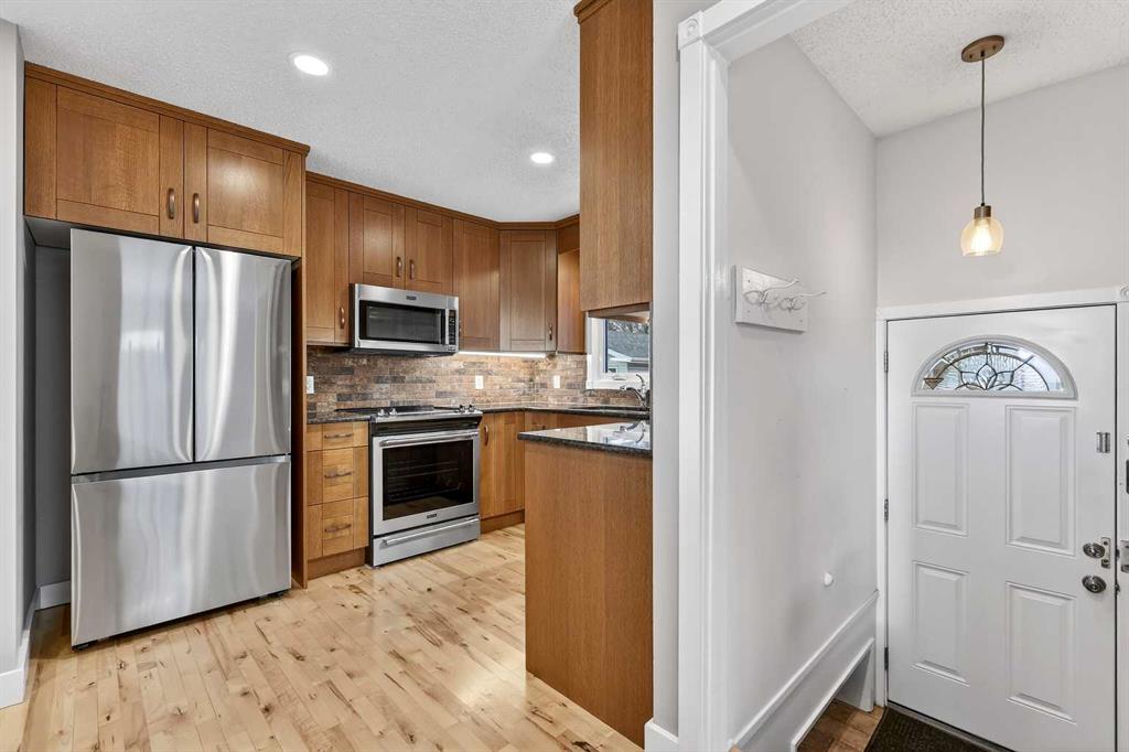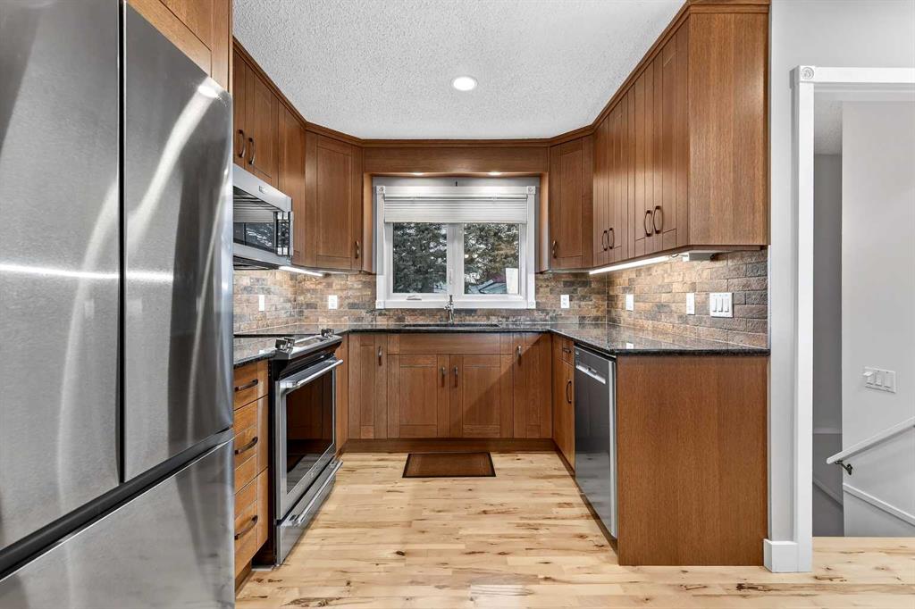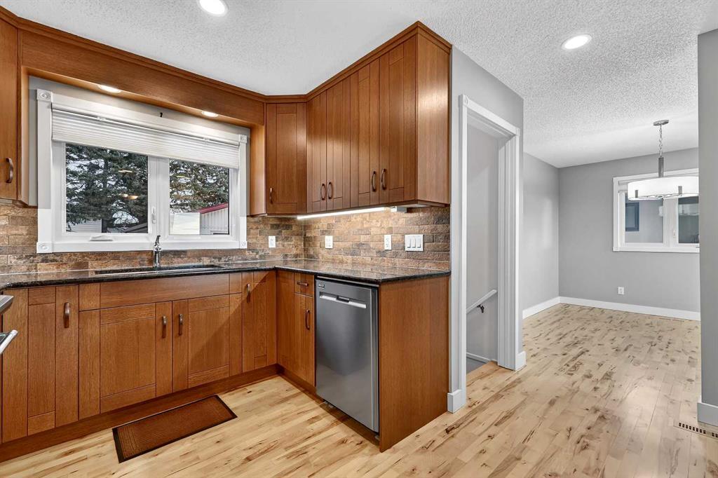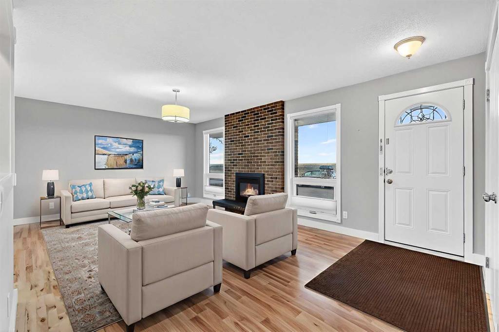 Open house Saturday Feb 14 – 1:00pm to 3:00pm, Sunday Feb 15 – 2:00pm to 4:00pm! Opportunities like this don’t come up often in Lynnwood’s highly sought-after Lynnview Ridge. Sitting on a ridge-facing lot with sweeping, unobstructed views of the Rocky Mountains and Bow River valley, this updated charming bungalow offers a rare chance to own in one of the community’s most coveted locations. Homes along this stretch are seldom available, and it’s easy to see why—steps from the Bow River pathway, minutes to downtown, and surrounded by parks, schools, and everyday amenities. Inside, the main level welcomes you with a generous front entry and gleaming hardwood floors that carry throughout the principal rooms. The open-concept living and dining area is warm and inviting, anchored by a cozy gas fireplace framed by a classic brick feature wall. Large windows capture the mountain panorama, filling the space with natural light. The kitchen has been tastefully updated with granite counters, stainless steel appliances, tile backsplash, a large island with built-in storage, and refreshed cabinetry—perfect for anyone who loves to cook or entertain. Three bedrooms sit on the main level, including a spacious primary suite with a walk-through closet that connects to the second bedroom, offering flexibility for a nursery, office, or dressing room. The bathrooms have been modernized, including a convenient 2-piece ensuite. The fully finished basement expands your living space with laminate flooring throughout, a large recreation/family room, two additional flex rooms, a full bathroom with a jetted tub, and a dedicated laundry area. Whether you need hobby rooms, guest space, or a home gym, the lower level adapts easily to your lifestyle. Outside, the property continues to impress. The large backyard is fully landscaped and enclosed with clean white vinyl fencing—ideal for kids, pets, or simply enjoying the outdoors. There is a spacious concrete patio area perfect for those summer bbq’s. The oversized detached double garage provides excellent parking and storage. The lot itself is generous, offering room to garden, relax, or even expand outdoor living spaces. Additional updates include newer asphalt shingles and central air conditioning for year-round comfort. Living in Lynnview means you’re moments from the Bow River pathway system, Lynnwood Ridge Park, off-leash areas, local shops, and quick access to major routes. It’s a peaceful, established neighbourhood with a strong sense of community, yet close enough to downtown Calgary to keep your commute short and simple. A well-kept bungalow with views like this is a rare find—this is one you’ll want to see in person.