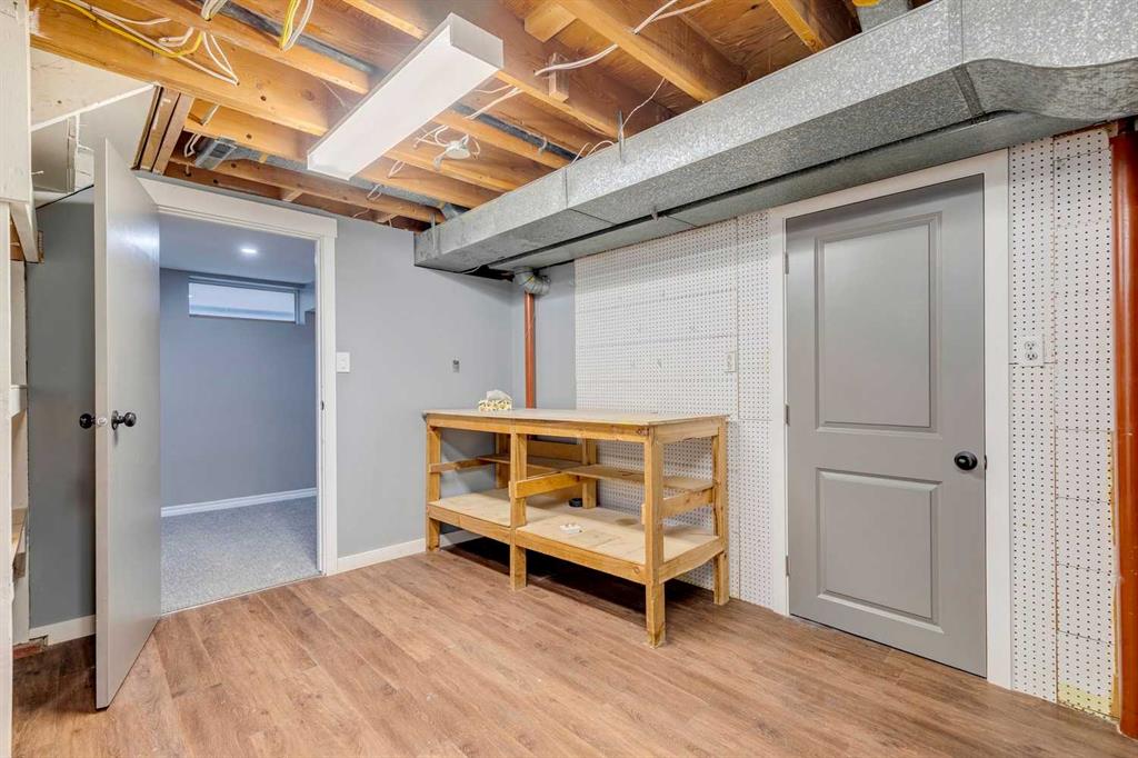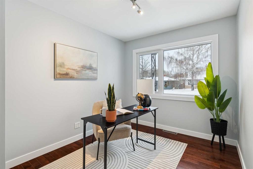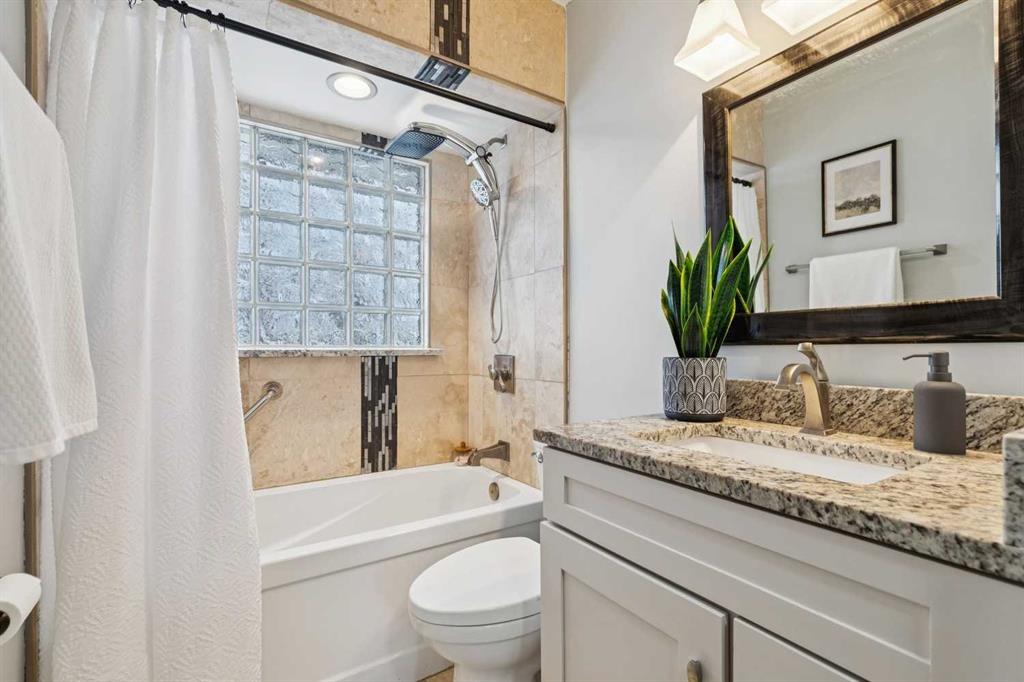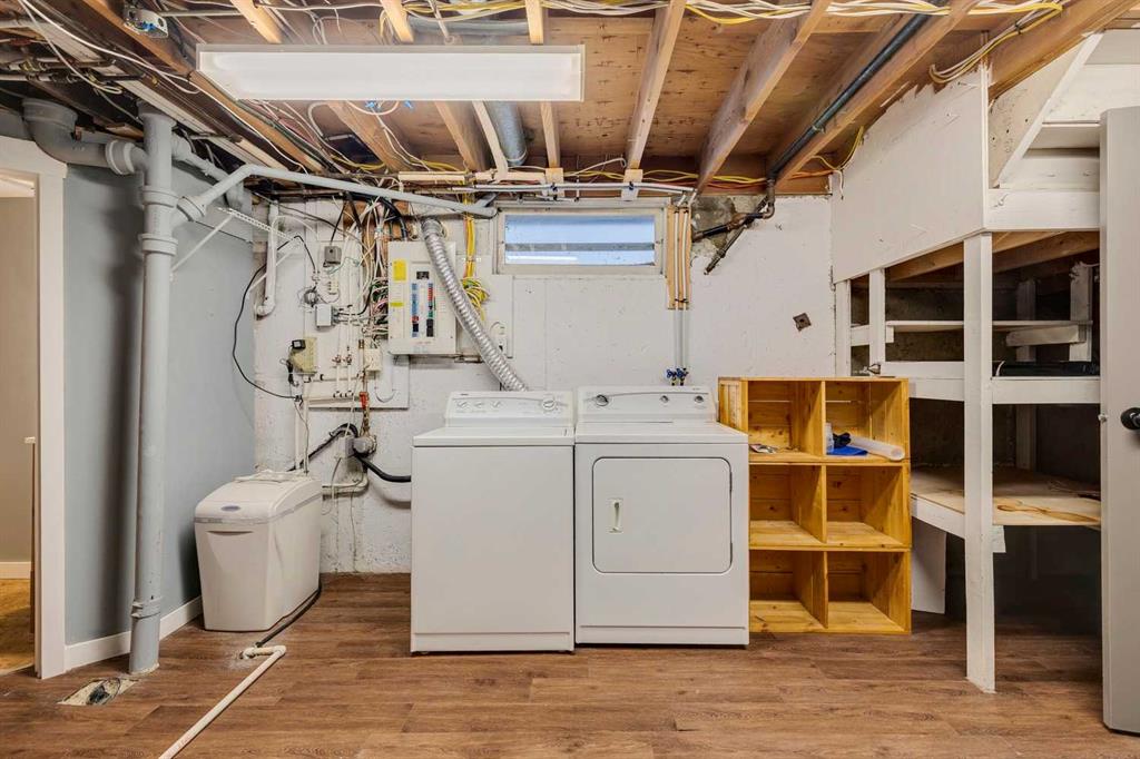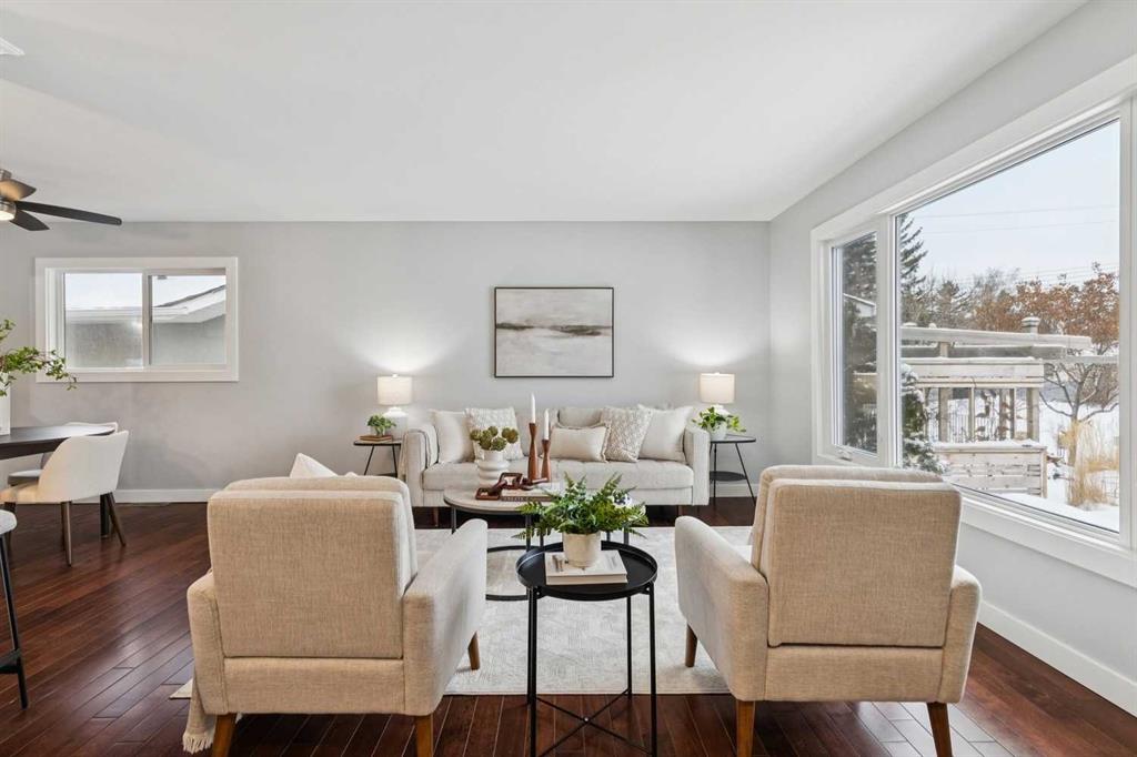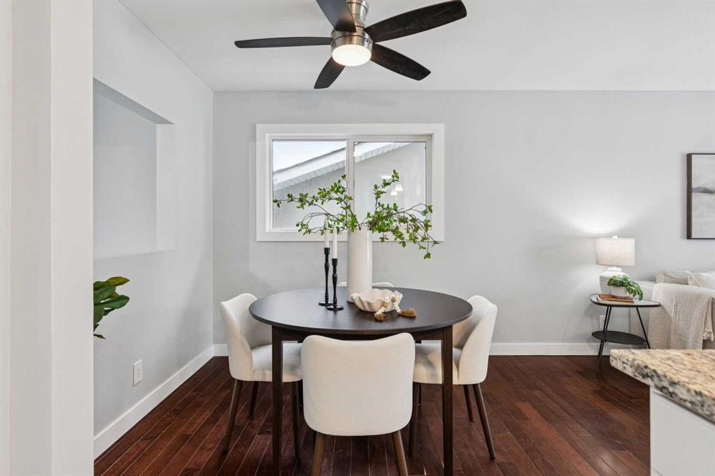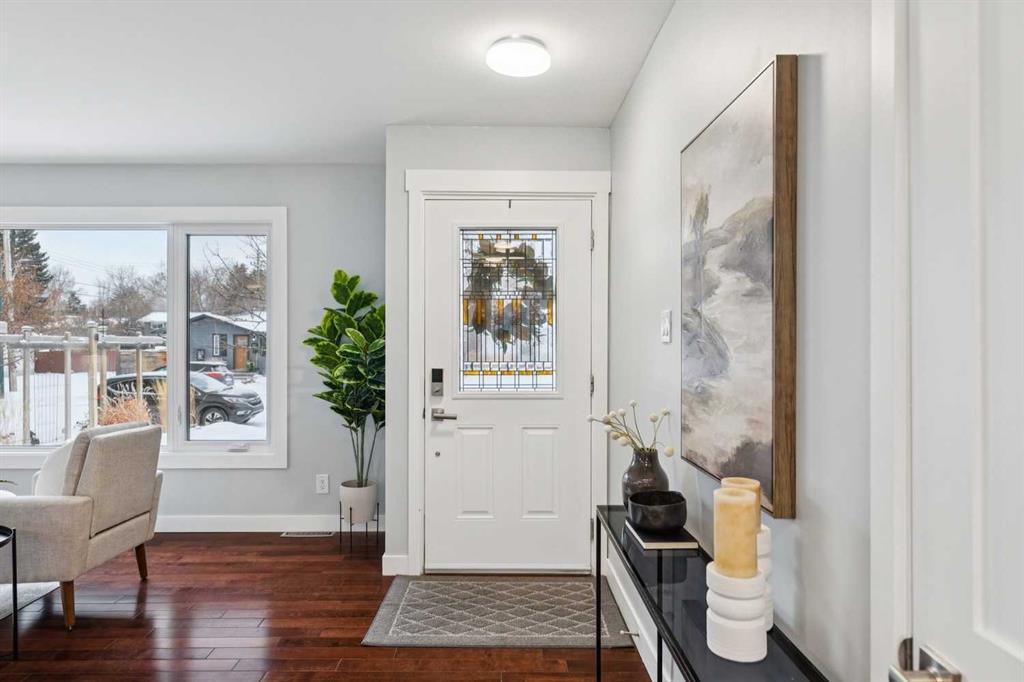 Welcome to this beautifully renovated bungalow nestled in the heart of Fairview, a mature, tree-lined community known for its welcoming feel and unbeatable convenience. Offering immediate possession, this move-in-ready home blends timeless charm with thoughtful modern updates throughout. Freshly painted throughout in 2025 and featuring new carpet in the fully developed basement (2025), the home is bright, refreshed, and ready for its next chapter. Hardwood floors grace the main level, where a large front window (new in 2024) fills the inviting living room with natural light and overlooks the landscaped front yard. The kitchen has been tastefully updated with newly painted cabinetry (2026), stylish new hardware, granite countertops, stainless steel appliances, a brand-new fridge (never used), breakfast bar seating, new lighting, and even a water line behind the fridge for a future ice and water connection. The main floor offers 3 comfortable bedrooms and a full bathroom complete with a tiled tub & shower combo. Downstairs, the spacious lower level creates the perfect retreat with a large rec room with plush new carpet (2025), a new gas fireplace (2022), a 4th bedroom with an egress window, a convenient half bathroom (seller can add shower for additional cost), laundry area with storage, generous storage room with shelving, water softener, and a dedicated workbench space for projects and storage. Comfort continues with air conditioning added in 2021 and rough-in for central vacuum. Outside, the fully fenced backyard is designed for both relaxation and enjoyment, featuring mature lilac bushes, a large deck ideal for summer evenings, garden beds, back alley access, and the rare bonus of an off-leash dog park directly behind. Parking for 4 is effortless with a detached single garage boasting a new smart overhead door (2021), new shingles (2021), and a gas line already run for a future heater, plus 1 driveway stall and 2 additional spaces beside the garage. The house roof was comprehensively redone in 2021 with new shingles, eaves, soffits, and downspouts, and the front windows were replaced in 2024. All new attic insulation in 2021. Ideally situated near Fairview School and Lord Beaverbrook High School, close to parks, shopping, transit, and with quick access to Glenmore Trail and Macleod Trail, this lovingly maintained home offers the perfect blend of comfort, functionality, and location in one of Calgary’s most established neighbourhoods.