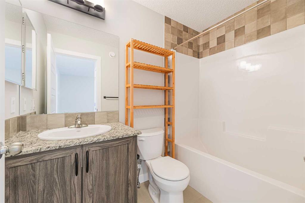 This beautifully designed 1,626 sq. ft. duplex by Shane Homes combines high-end style with everyday functionality in the heart of Pine Creek. Move-in ready, the home features a sun-drenched, open-concept main floor with soaring ceilings, durable LVP flooring, and a stunning kitchen boasting quartz countertops, stainless steel appliances, and a convenient walk-in pantry. A south-facing front veranda invites you inside, while the rear entrance provides easy access to a 2-piece powder room and leads out to your double detached garage. Upstairs you will find a central bonus room, with a large primary bedroom, 3pc ensuite bathroom and a walk-in closet to one side, and two additional bedrooms, a 4pc bathroom and a laundry area on the other side. All bathrooms are finished with quartz countertops and tile flooring. The basement adds incredible value with a separate side entrance and plumbing rough-ins for a future suite. Perfectly situated within walking distance of schools, shopping, and pathway trails, this home also offers quick access to Macleod and Stoney Trails for an effortless commute.