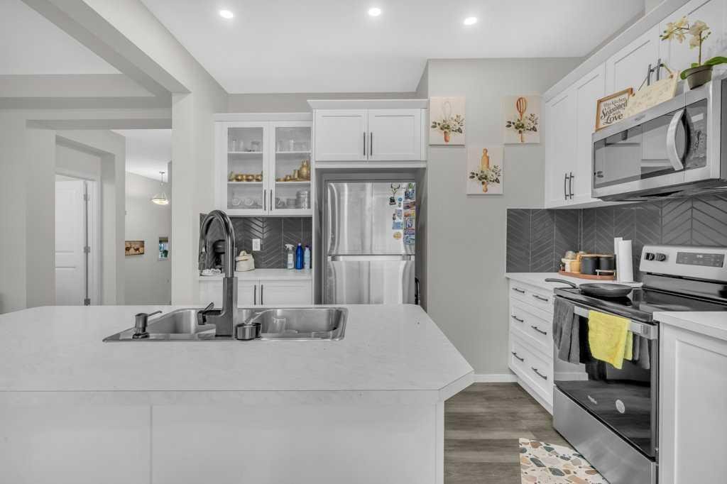 Upstairs, you’ll find a spacious bonus room, a dedicated laundry area, and three generous bedrooms, including a relaxing Primary suite with a walk-in closet and a luxurious 5-piece Ensuite featuring Double sink countertop with enormous vanity space, a soaker tub and separate Walk in shower. Enjoy your front-facing BALCONY, offering a charming spot to unwind and take in the view of the neighborhood and evening Sunsets. This beautiful house features a fully finished Walk Out to Grade Basement that provides even more space for family entertainment, a home Gym or guest accommodations. Complete with a double attached garage, landscaped yard, and close proximity to parks, playgrounds, schools, shopping, and easy access to major routes, this home combines comfort and convenience in one perfect package. Move-in ready and ideal for families — don’t miss your chance to call this beautiful property home!