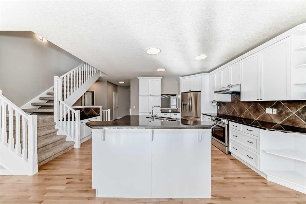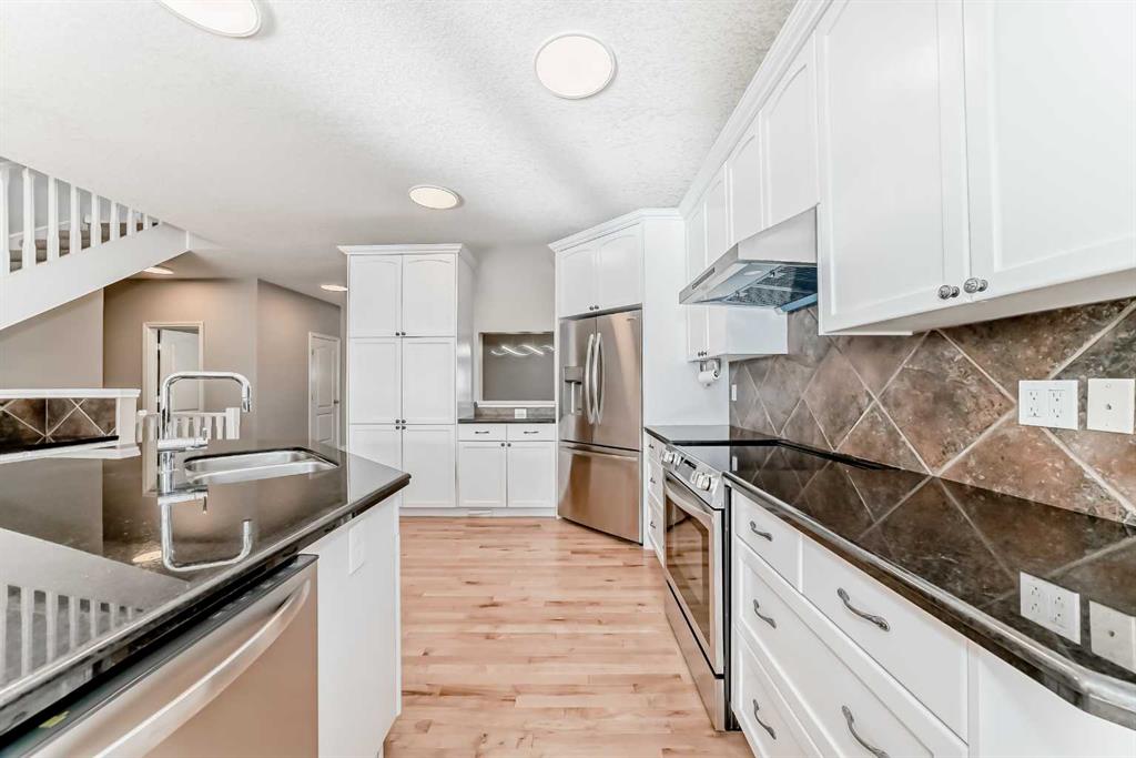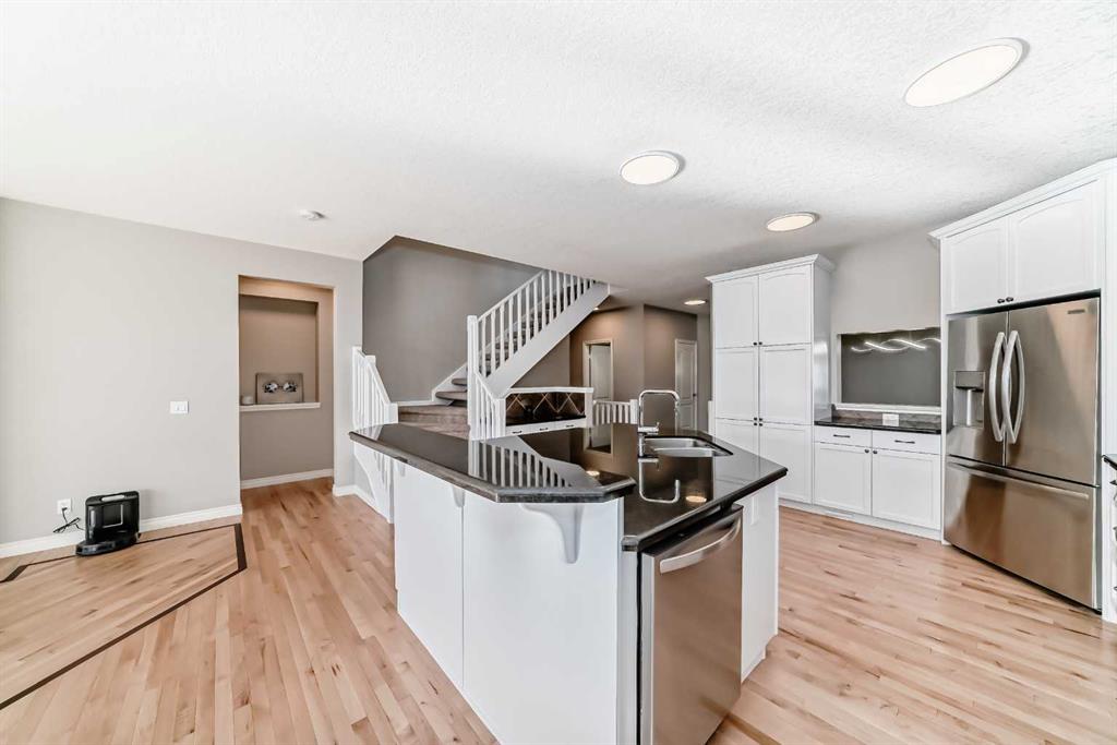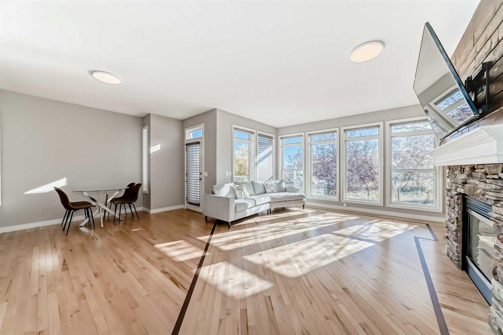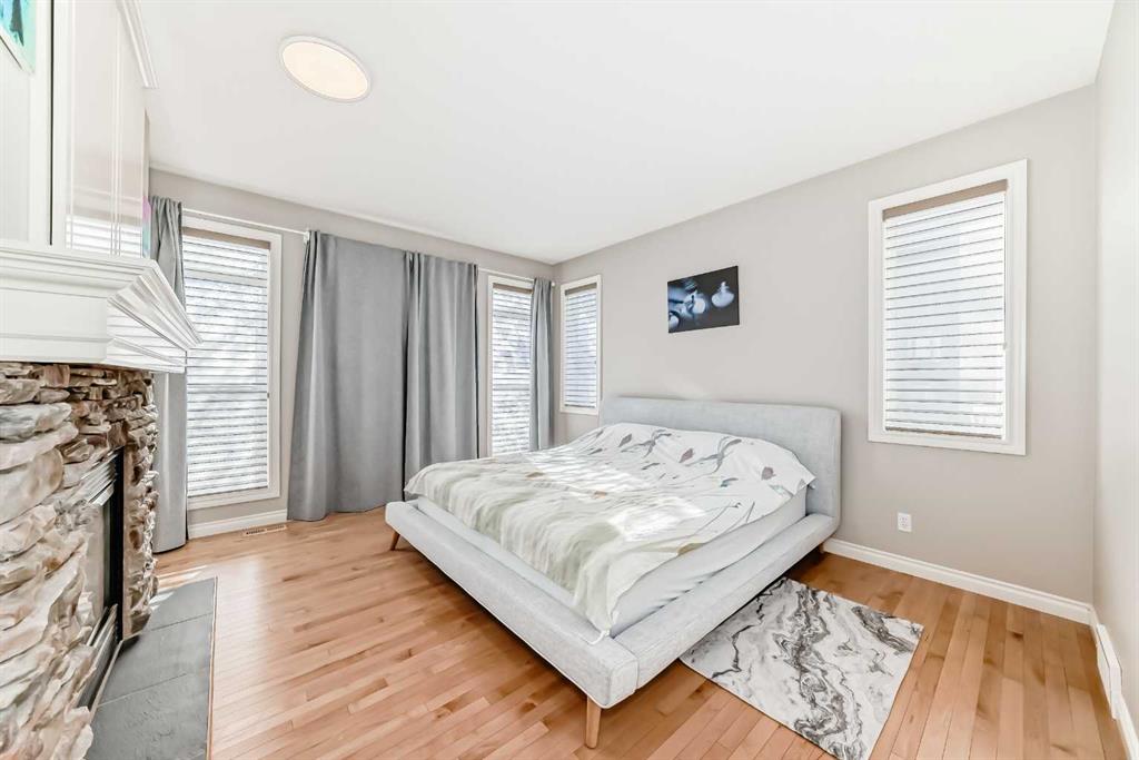 Nestled on a quiet cul-de-sac, this beautifully updated bungalow backs onto walking paths and green space, offering peaceful city views. From the spacious foyer, you’ll be welcomed into an open-concept main floor featuring a chef’s kitchen with abundant cabinetry, generous counter space, and a large central island. The bright living room showcases a two-way fireplace and oversized picture windows that capture the outdoor scenery. The primary suite provides a relaxing retreat with a fireplace, soaker tub, separate shower, and skylight. A unique upper loft offers a perfect space for a den or study, complete with a private balcony for quiet moments. The walk-up lower level is ideal for entertaining, featuring a large family room with a wet bar, two additional bedrooms, a full bathroom, ample storage, and full air conditioning. Close to downtown, transit, schools, parks, and amenities, this exceptional home blends style, comfort, and convenience in one of the city’s best locations.