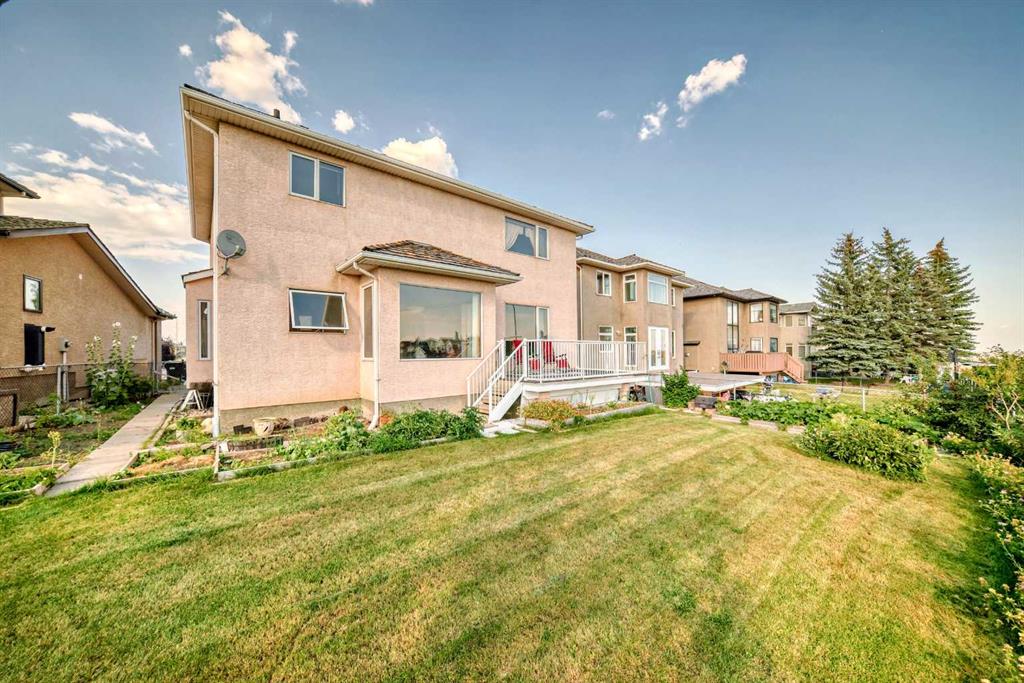 Welcome to your new home in the prestigious community of Hamptons! This stunning 4-bedroom, 2.5-bathroom residence is perfectly positioned to soak up an abundance of natural light from its coveted south-facing location. Garage door and roof are newly replaced. Outside, you’ll find a driveway spacious enough for three vehicles and a backyard with a panoramic view, complemented by a beautiful garden with ample space for cultivating your own vegetables. Enjoy leisurely days on an expansive deck, complete with convenient storage beneath. Step inside to discover a meticulously designed interior that includes a two-car garage with plenty of storage. The main floor features a grand high-ceiling foyer with a curved staircase, a formal dining room ideal for hosting guests, home office den, and a sunlit living room anchored by a cozy fireplace. The gourmet kitchen is equipped with a gas cooktop, stainless steel hood fan, and opens seamlessly into the dining area.