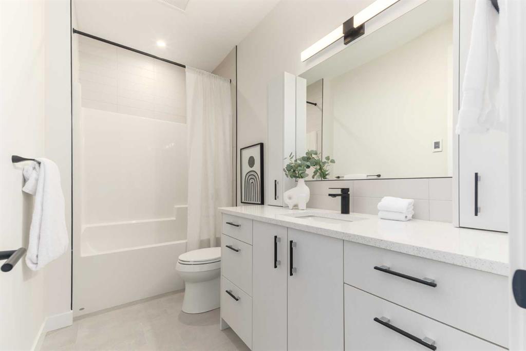 This custom built luxury family residence by Truman Homes is ideally located at the end of a quiet cul-de-sac in the prestigious community of West Springs. Thoughtfully designed for modern family living, this brand-new six-bedroom home combines timeless architecture, refined comfort, and exceptional craftsmanship throughout over 4000 SF of developed living space and three beautifully finished levels. A grand staircase welcomes you into the open foyer, where Southwest light fills the living areas, creating warmth and elegance with engineered hardwood throughout the main and upper levels. The chef-inspired kitchen showcases a large granite island, a 5-burner dual-fuel gas range with a second built-in oven, under-cabinet lighting, and a walk-in pantry with abundant space for spices, small appliances, and culinary essentials. Elegant cabinetry, deep island drawers, and intelligent corner design add both beauty and function. The open concept living and dining areas are centered around a gas fireplace with built-ins, while a built-in bar with wine fridge enhances entertaining. From the main level, walk out to a South-facing deck with a hot tub connection, overlooking a large backyard ready for your dream landscaping or family retreat. A two-desk office, tucked away from the main living areas, offers privacy and natural light, with a powder room conveniently located near the kitchen. The mudroom, connecting directly to the attached four-car garage, provides built-in storage for seasonal and everyday items. Upstairs, the primary suite is a serene retreat featuring heated floors in the ensuite, dual custom vanity, a glass-framed shower, a large walk-in closet, and a private patio for morning coffee or evening relaxation while you soak in mountain views. The upper level includes four bedrooms, ideal for growing families, and three full bathrooms, each with heated floors, plus a bright laundry room with a window, sink, washer, dryer, and ample storage. The fully developed lower-level features roughed-in in-floor radiant heat, two bedrooms, a four-piece bathroom, a theatre room, flex space for fitness, and a second kitchen area with a fridge and dishwasher, perfect for guests or multi-generational living. The oversized four-car attached garage impresses with soaring ceiling heights, roughed in radiant in-floor heating, floor drains, and two EV chargers. Mechanical highlights include two high-efficiency furnaces zoned controlled, rough-in for air conditioning, CAD-6 wiring, zoned speakers roughed-in throughout the home including the garage, a radon mitigation system, and roughed-in security. Located just 20 minutes from downtown Calgary, West Springs offers top restaurants, cafés, fitness facilities, boutique shopping, and excellent schools, all within walking distance. This home was thoughtfully designed and custom built with too many upgrades to name. Make sure to review the property brochure to get a full list of the upgrades that went into this superb family home!