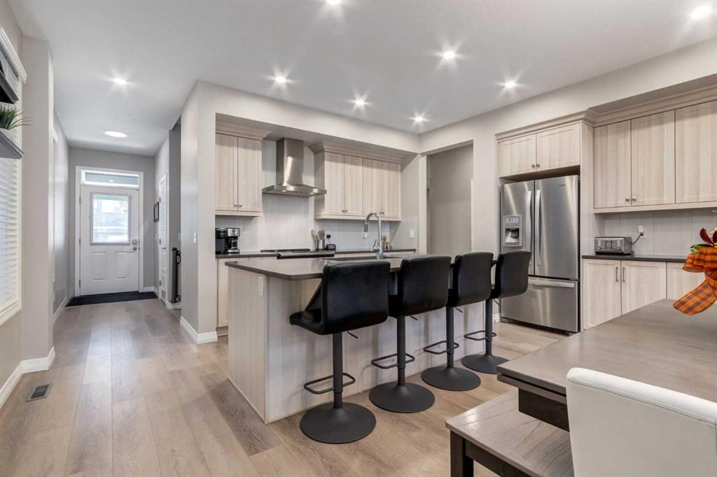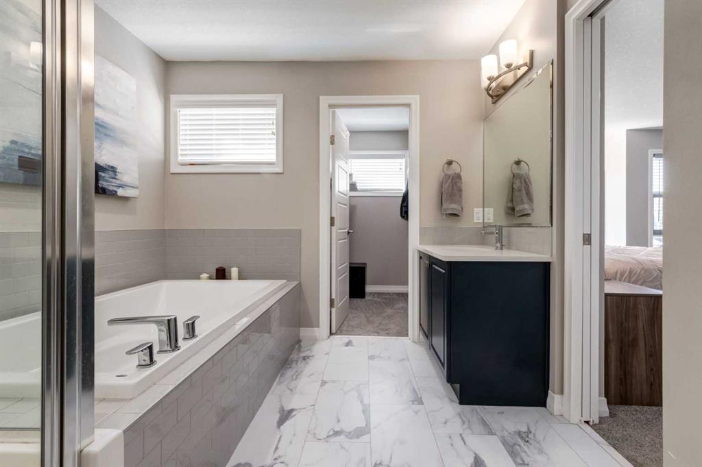 Welcome to this stunning Jayman Built 4 bedroom home in the family friendly community of Seton! Meticulously maintained and full of impressive upgrades, this nearly new home is a must see! Close to schools, shopping and many community features like the YMCA, movie theatre and dog park, this location can’t be beat! Pulling up to the house, you will love the modern appeal of mixed color and brickwork, enhanced by Trimlight year round lighting making holiday lighting a breeze. Walking into the home, the foyer leads to a bright open living space, perfect for entertaining and family time. The kitchen boasts stainless steel appliances and fresh light cabinetry, and nice size island for a quick meal. The walk in pantry features adjustable shelving by California Closets to create your own ideal storage. The open dining room flows into the living room which overlooks the back deck and yard, which the family will love heading out to enjoy . Bright windows and a cozy electric fireplace make this the perfect space for relaxing with family and friends. Completing the main floor is a separate office space and 2 piece bathroom, great for those who work from home or want a private space for a reading or computer room. On the second floor, you are welcomed with a bonus room and the perfect bedroom layout for your family. On one side you find your large bright primary bedroom, with walk in closet and 5 piece ensuite bathroom, with relaxing spa-like colors. On the other side of the second floor are two matching bedrooms, each with their own walk in closet. A four piece bathroom and separate laundry room complete the second level. Heading down to the fully finished basement is the perfect space for enjoying family time and recreation. With a built in bar area, the family room will be the perfect host to movie and game nights. A fourth bedroom is great for larger families or a guest room, with a full 4 piece bathroom. Complete with tons of storage and a separate flex space (currently used as a gym), this basement can’t be beat! Not only does this home feature a perfect floor plan, it has been thoughtfully upgraded with details for comfort and convenience. With Central AC the hot summers will never be an issue, and the Ecobee thermostat will keep the temperature perfectly regulated. Other Smarthome features include Kasa smart lighting, an August smart lock on the front door and Ring Security camera system, which are all easily controlled by Amazon Alexa. The double attached garage has been finished with Polyaspartic floor coating for a long lasting finish, and comes with a convenient EV charger for your vehicle. Solar panels (6) have also been installed for energy efficiency, and can easily be expanded to your liking. With so many amazing features, this move in ready home will leave you nothing short of impressed! If you are looking for the perfect home, and ready to experience the amazing SE community of Seton, contact your realtor today for a showing!