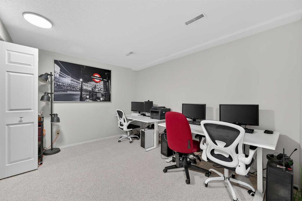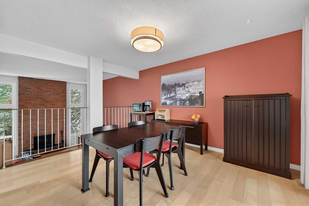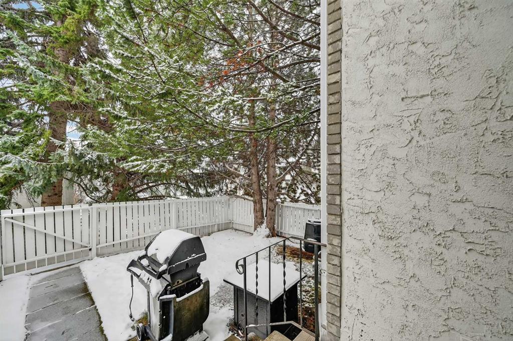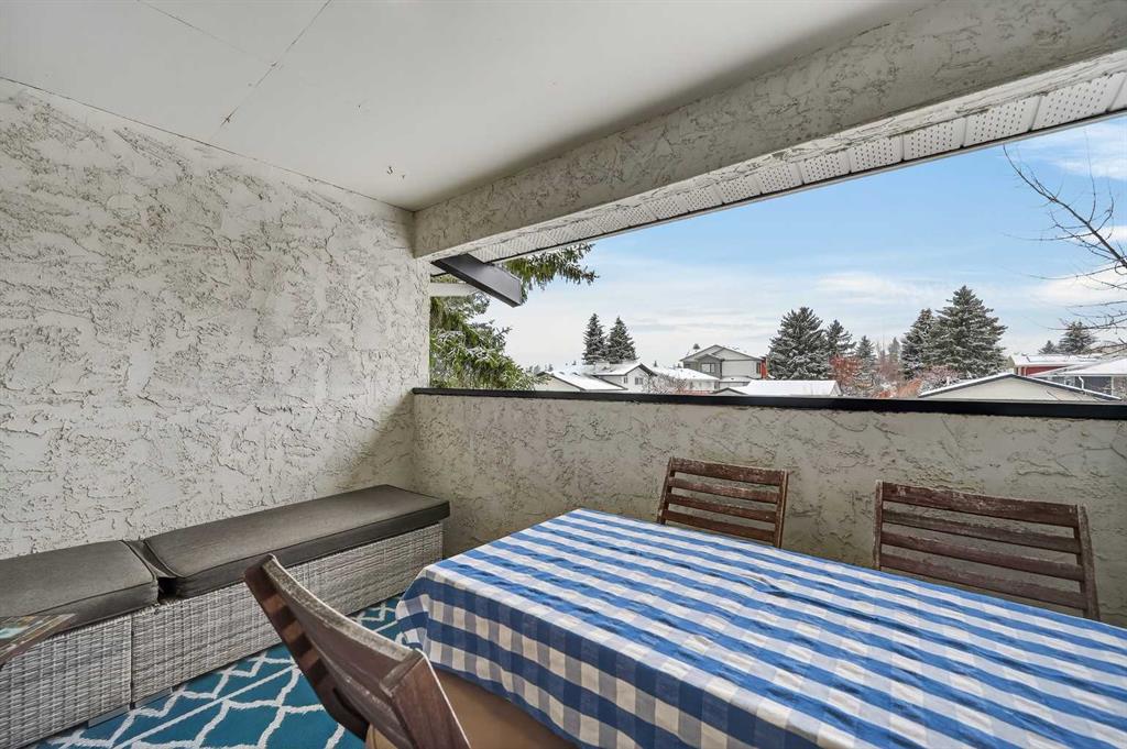 ** OPEN HOUSE SAT Apr 11, 2-4pm *** WEST facing END unit with COVERED front BALCONY in coveted 5400 Dalhousie! UPDATED and clean with a fully finished basement, this unit has so much to offer. TILE front foyer is SPACIOUS with lots of room for mudroom gear. GREAT ROOM with cathedral ceiling, NEW engineered HARDWOOD flooring, WOOD burning fireplace, stunning brick masonry floor to ceiling, SLATE hearth, ALL NEW 3pane WINDOWS (throughout!), great gathering space, with door to your very PRIVATE backyard with PATH behind. Engineered HARDWOOD continues in upper DINING room with lots of room for large table, hutch or curio cabinet. RENOVATED kitchen with MAPLE cabinets, PULLOUT pantry, QUARTZ countertops, new SINK, HEATED FLOORS, STAINLESS STEEL appliances w/NEW DISHWASHER (2025), UNDER COUNTER lighting, LOADS of storage. Pause and TAKE IN the COVERED WEST balcony, one of a handful in the complex, with MOUNTAIN VIEW. 2-piece powder room with HEATED floor. UPPER level has LARGE PRIMARY bedroom, sitting amongst tree tops from double windows view over the backyard, DOUBLE closets for all your things, 2ND bedroom with BIG closet and WEST VIEW. FAMILY BATH with SOAKER tub, MAPLE vanity with ADDED banks of STORAGE, black hardware. Deep LINEN CLOSET holds more than just linens! FINISHED basement is bonus FLEX space and includes NEW Electrolux w/d LAUNDRY (Aug 2025, done under permit). NEW HWT (2024), Patio doors (2024), Windows (2025), RE-INSULATED attic (2024), NEW bathroom fans (2024). All this with a SINGLE ATTACHED GARAGE with direct entry into your home, an ABUNDANCE of AMENITIES including indoor pool, fitness, racquetball court, gym, party space, deck with view of COP, sauna, games room, kitchen. Walking distance to shops, Dalhousie LRT station, schools and community association! This home stays warm in winter and cool in summer in a complex that offers so much for families!