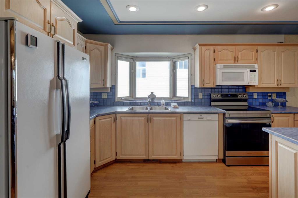 Welcome to this beautifully maintained, custom-built bungalow tucked away on a quiet street in the highly coveted community of Edgemont. From the moment you step inside, the spacious front entry & striking curved staircase set the tone for a home that balances elegance with everyday comfort. The thoughtfully designed floor plan features a bright formal living room & dedicated dining area—perfect for entertaining family & friends. At the heart of the home, the updated kitchen offers newer cabinetry, a generous pantry, a central island, & a cozy breakfast nook that seamlessly opens into the inviting family room, complete with a charming brick-facing fireplace. The main floor also boasts a generous primary retreat with a private 3-piece ensuite & three closets, along with two additional well-sized bedrooms & a full bath. Downstairs, the fully finished basement expands your living space with an open rec/games room (pool table included!), a second fireplace, wet bar, den/office, a&nd plenty of storage. Step outside to your private backyard oasis—beautifully landscaped with lush garden beds, a large deck for summer gatherings, & a durable metal fence. Notable updates include: a new hot water tank (2025), brand-new basement carpet (2019), hardwood in the main floor hallway, newer shingles & skylight (approx. 12 years), a new garage door, & a double attached garage. With its spacious layout, timeless character, & prime location in a mature, family-friendly neighbourhood with top-rated schools, amenities, & green spaces just steps away, this home truly has it all.