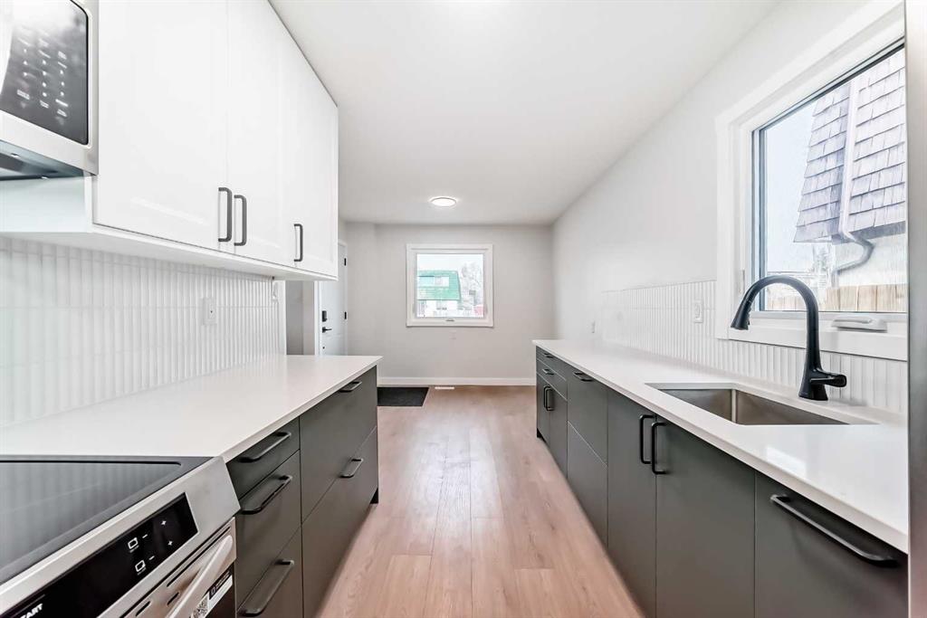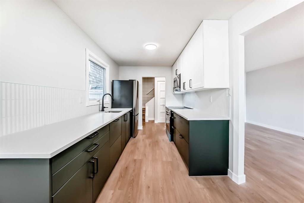 First time home buyers ( NO CONDO FEES) and insightful investors – take note.!!! Thoughtfully renovated and freshly painted, this turn-key home, features a galley style kitchen with beautiful quartz counter tops, a Frigidaire Induction stove and side by side refrigerator, As well as a convection microwave/hood fan and classic tiled back splash, which is surrounded by crisp white upper cabinets. Gorgeous deep green base cabinets host tons of storage and a seamlessly integrated dishwasher. This home has a good sized living room and cosy dining area. The main floor is completed with a half bathroom and a convenient side entrance-withe easy access to the storage shed. Upstairs features 3 good sized bedrooms, a full bath and a linen closet. The basement is fully finished with a rec room, laundry room and plenty of storage. Other features you will love about this property are, easy maintenance vinyl flooring throughout, new windows, knock down ceilings, new baseboards, new landscaping. To be noted as well, this property has a BRAND NEW TOP END 2 stage furnace and a BRAND NEW TOP END water heater, and fresh new paint throughout. Even the roof is in great condition. This home is a gem with absolutely awesome neighbours. The location is ideal- close to Glenmore Trail and easy access to Deer Foot Trail. This charming home is nestled on a quiet street, close to shopping, transit, schools and parks. Ogden is a well established safe neighbourhood – an up and coming hot spot – don’t miss this investment opportunity!