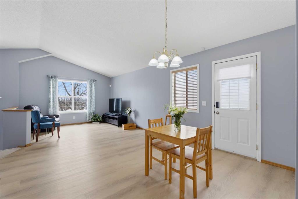 3 BEDROOMS UP | OVERSIZED GARAGE W/ 220V & NETWORK | 200 AMP SERVICE | NEW FLOORING, PAINT, ROOF, SIDING, SOFFIT & FASCIA | WEST BACKYARD | ACROSS FROM PARK| Ideally located directly across the street from a playground and steps from bus routes in the established community of Bridlewood, this refreshed home pairs everyday comfort with thoughtful upgrades while placing parks, pathways, the Bridlewood Marsh and Spruce Meadows within easy reach. Step inside to a vaulted main living area where vaulted ceilings enhance openness and invite natural light to move freely throughout the space. Continue into the dining area where a convenient side entrance connects seamlessly to the backyard, supporting effortless indoor-outdoor flow for daily routines and seasonal gatherings. Effortlessly, prepare meals in the well-planned kitchen where abundant cabinetry, generous counter space and a window over the sink contribute both function and brightness. Relaxation is invited in the primary retreat that accommodates a walk-in closet along with cheater access to the 4-piece bathroom for added convenience. Two additional bedrooms on the main level create flexibility for family living, guests or a home office. Head downstairs to a spacious recreation area ready for movie nights, games, fitness or hobbies, complemented by a second kitchen that adds versatility for multi-generational living or keeping the upper level cooler during warmer months. Another bedroom plus a flexible bonus room expand the layout with options for changing needs over time. Enjoy a west-facing backyard designed for afternoon sun where a patio sets the stage for barbeques while a fenced yard keeps kids and pets contained. Extensive exterior updates including newer roof, siding, soffit and fascia contribute to long-term peace of mind. Plus this wonderful home takes advantage of rare mechanical upgrades such as 200 amp electrical service and an oversized garage equipped with 220 power and cable networking, ideal for projects, storage or future possibilities. This phenomenal location effortlessly connects daily life to nearby green spaces, walking paths, schools, shopping and major routes while maintaining a quiet, community-oriented setting.