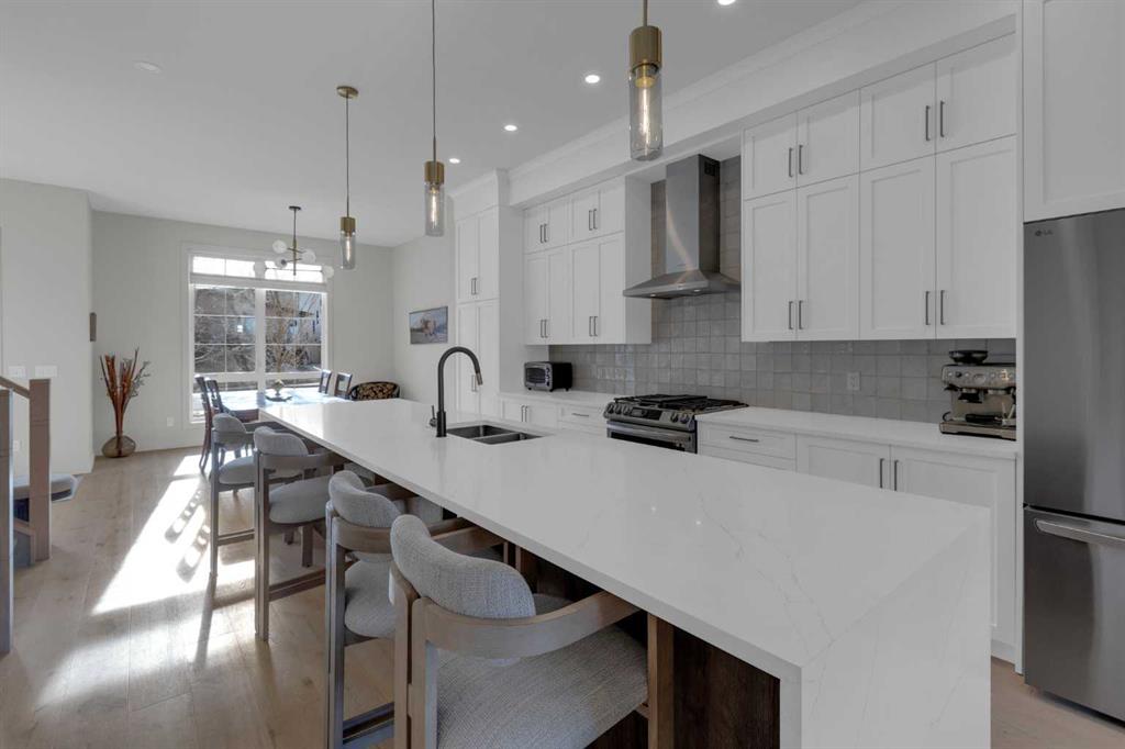 HOME SWEET HOME! Welcome to this BREATHTAKING 2023 CUSTOM-BUILT SEMI-DETACHED HOME in the heart of trendy Bowness highlighted by a LEGAL BASEMENT SUITE! This is an exceptional opportunity to own and invest in one of Calgary’s most sought-after, rapidly evolving communities with quick access to escape to Canmore, Banff and the mountains. This SPECTACULAR INFILL HOME offers the perfect balance of luxury, space, and smart income potential offering 5 bedrooms, 3.5 bathrooms and over 1,968 SQFT above grade living space. This thoughtfully designed home delivers two spacious levels of beautifully curated living space complimented by a fully self-contained 2 BEDROOM LEGAL BASEMENT SUITE with a separate entrance, ideal for a MORTGAGE HELPER. The main floor impresses with soaring 10’ ceilings, breathtaking hardwood flooring, timeless designer finishes, and an abundance of natural light pouring in through large south-facing windows. The spacious rear living room opens seamlessly onto an oversized deck through sliding patio doors, an entertainer’s dream. At the heart of the home, the show-stopping kitchen features custom cabinetry, a striking 13’ quartz waterfall island with a breakfast bar, pantry, premium stainless steel appliances and a stylish coffee bar that blends function with flair. Upstairs, retreat to a luxurious primary suite complete with a custom tray ceiling, a generous walk-in closet, and a spa-inspired 5 piece ensuite bathroom highlighted by a cozy soaker tub, double vanity sinks and a private shower with a bench. Two additional generous-sized bedrooms, a gorgeous 5 piece bathroom, and a convenient upstairs laundry room complete this floor. The LEGAL BASEMENT SUITE is equally impressive, boasting a large bedroom with walk-in closet, a spacious living area rarely found in suites, a contemporary, stylish white fully equipped kitchen with stainless steel appliances and an additional bedroom with full egress windows which can easily accommodate a home office. HOME UPGRADES include Custom blinds in the dining room ($3,000) and basement windows ($500), Fine filter water system under kitchen sink, moved wall in basement to enlarge area for washer/dryer, re-built master bedroom closet with an Ikea storage closet for much more clothing storage. Outside you will find your convenient, maintenance free landscaped front and back yard and a double detached garage that is insulated, drywalled, wired and has a wall of storage shelves, linen closet in upstairs hallway and re-built one bedroom closet for additional storage space. Located in the heart of Bowness, this home is just steps from major amenities including parks, pathways, schools, local shops, restaurants, breweries, cafés, the Bow River and it’s pathway systems, quick access to downtown, Market Mall, Canada Olympic Park, and the mountains, all while being part of a vibrant, walkable, and close-knit community known for its outdoor lifestyle. Don’t miss out on this GEM, book your private viewing today!