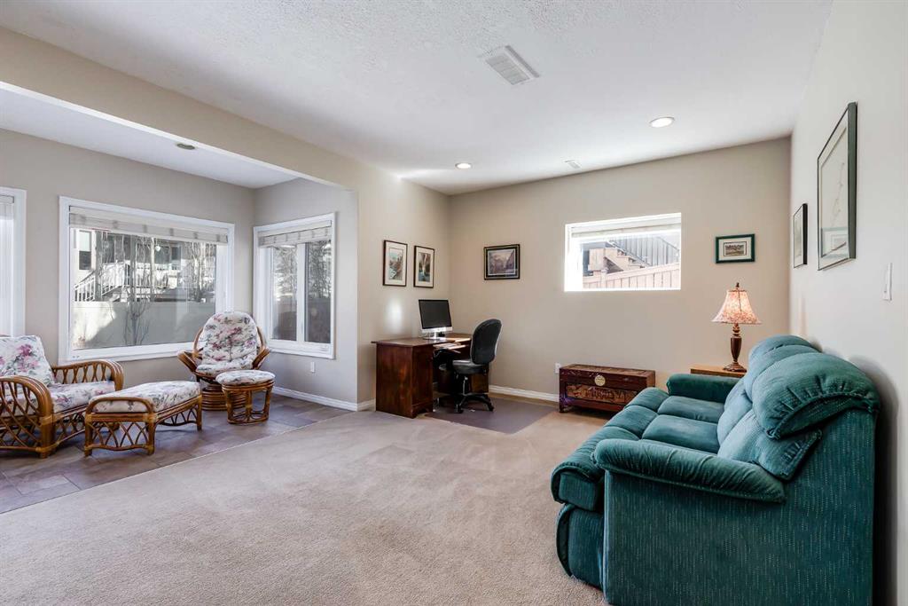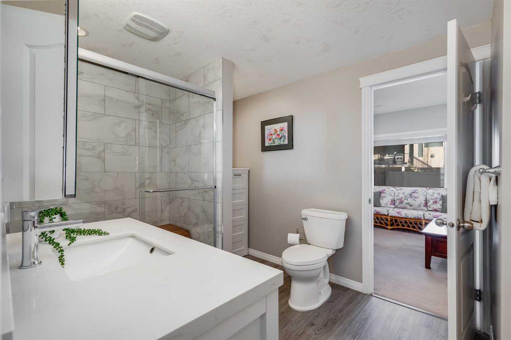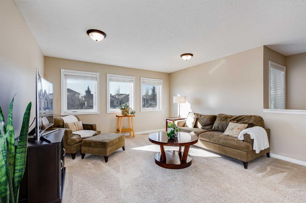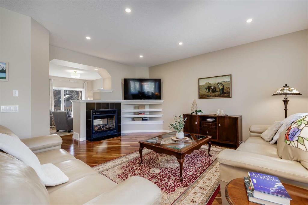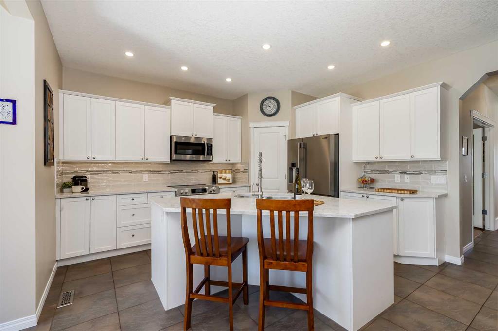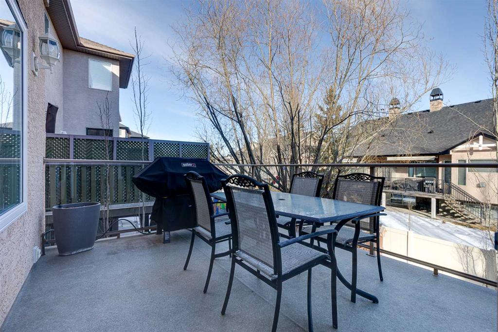 Set in Evercreek Bluffs within the sought-after community of Evergreen, this Shane Homes built two-storey walkout offers more than 3,800 sq. ft. of developed living space, a double attached garage, and a well-planned layout suited to daily living. The exterior combines stucco and stone with a welcoming front porch and Gemstone lighting, creating strong curb appeal. The main floor begins with a spacious entry and 9’ ceilings. Hardwood flooring extends through the living and family rooms, where a two sided gas fireplace creates a natural connection between the spaces. The open concept design continues into the dining area and kitchen, finished with tile flooring for durability and easy maintenance. The kitchen is equipped with stainless steel appliances, white cabinetry, quartz countertops, a corner pantry, an island with seating, and ample storage and workspace. The dining area provides direct access to a maintenance free balcony complete with a gas line for BBQ use. A main floor office with French doors offers a quiet workspace, while a two piece powder room and a rear laundry area off the garage add convenience. Upstairs features a large, sun filled bonus room. Double doors lead into the primary suite, which includes a walk-in closet and a well appointed ensuite with dual sinks, a soaker tub, and an oversized shower. Two additional bedrooms each include their own walk in closet and share a four piece bathroom. The fully developed walkout basement includes 9’ ceilings and a generous recreation space. A dedicated media area with built in shelving and a gas fireplace adds comfort and flexibility. The lower level also includes a bedroom with a walk-in closet and ensuite access to a three piece bathroom, which can also be accessed from the rec room. Additional storage is available throughout. Notable upgrades and features include central vacuum, a new hot water tank in 2020, triple pane windows installed in 2024 with warranty, and recent appliance updates including washer and dryer (2024), fridge (2023), and stove (2025). The garage is finished with built in cabinetry and overhead storage. The backyard is fully fenced and professionally landscaped, featuring a covered patio, mature trees, established shrubs, a large lawn area, and underground irrigation. The location offers exceptional access to amenities and lifestyle conveniences. It is steps from the pathways of Fish Creek Provincial Park and close to a nearby playground, with schools including Dr. Freda Miller School, Evergreen School, and Marshall Springs School all within walking distance. Everyday shopping is nearby at The Shops at Buffalo Run including Costco, while major routes are easily accessible via Stoney Trail. Transit options include a short drive to the Fish Creek LRT Station, supporting quick access to downtown. Recreation destinations such as Spruce Meadows and the Rocky Mountains are also within easy reach. Check out the floor plans & 3D Tour for a closer look!