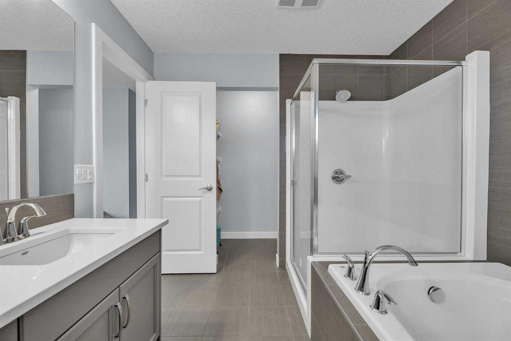 The upper level includes three generously sized bedrooms, including the private primary retreat complete with a walk-in closet and a well-appointed ensuite featuring double sinks. A large walk-in laundry room adds both comfort and convenience to everyday routines.