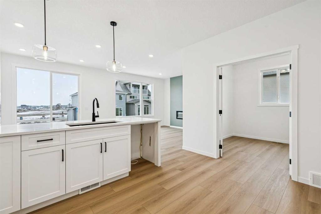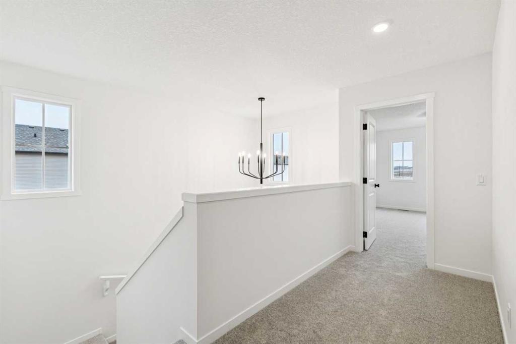 The Alfa offers 2,013 sq. ft. of well-balanced living space. A two-storey open-to-below at the front entry fills the foyer with natural light and creates a strong first impression, while a tucked-away half bath just off the foyer is kept out of sight from the main living areas. Toward the back of the home, the kitchen includes a large u-shaped kitchen overlooking the dining area and great room. Just off the kitchen, a pocket den offers a quiet, functional space for work or study. The walk-through pantry connects the kitchen to the mudroom, which features built-in storage and garage access. Upstairs, a central bonus room separates the two rear-facing bedrooms from the primary bedroom at the front. This level also includes a full bathroom and a laundry room. The primary bedroom includes a walk-in closet and private ensuite. This home also features a side entry, and 9′ foundation for potential future development or basement development convenience. Photos are representative.