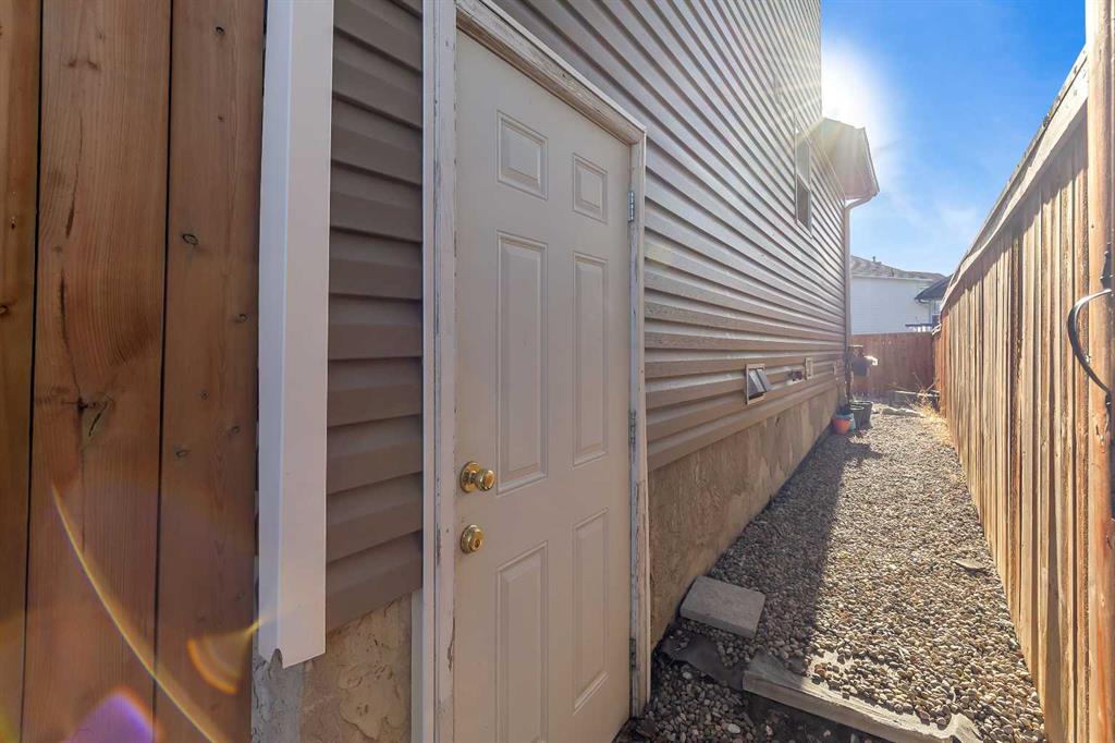 Experience the perfect blend of elegance and functionality in this meticulously kept, owner-occupied two-story home located in the highly sought-after community of Martindale. You are greeted by a charming front porch that leads into a grand foyer, where soaring open-to-above ceilings and dual-aspect windows flood the living area with an abundance of natural light. The main level continues to impress with a massive dining room and a well-appointed corner kitchen featuring a walk-in pantry and extensive counter space, all complemented by a convenient 2-piece bath. Upstairs, the primary suite offers a private sanctuary with a walk-in closet and a 4-piece Jack-and-Jill bathroom that provides seamless access to two additional generously sized bedrooms. The fully finished basement serves as a versatile living space with its own separate entrance, featuring a bedroom, a 3-piece bath, a secondary kitchen, and a cozy flex room centered around a warm fireplace, with a dedicated laundry area completing the level. Outside, the property boasts a double car garage and a low-maintenance backyard designed for easy living. This unbeatable location puts you within a 10-minute walk to the LRT, steps from major bus routes, and a short drive to Peter Lougheed Hospital, while top-rated schools like Crossing Park, Nelson Mandela High, and Gobind Sarvar, along with local grocery stores and places of worship, are all just moments away.