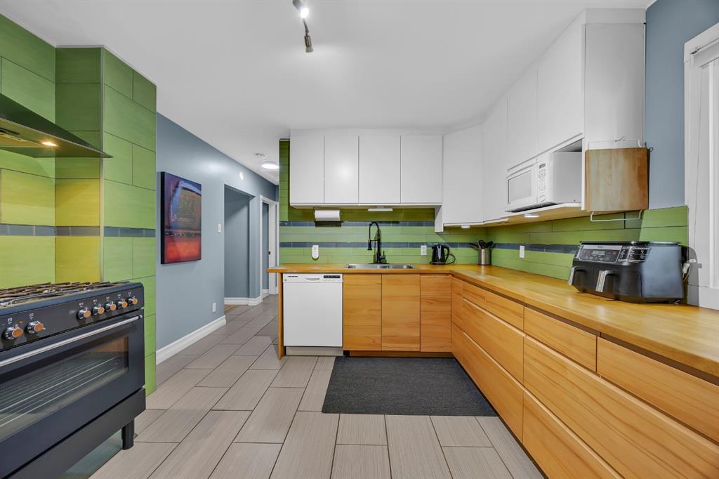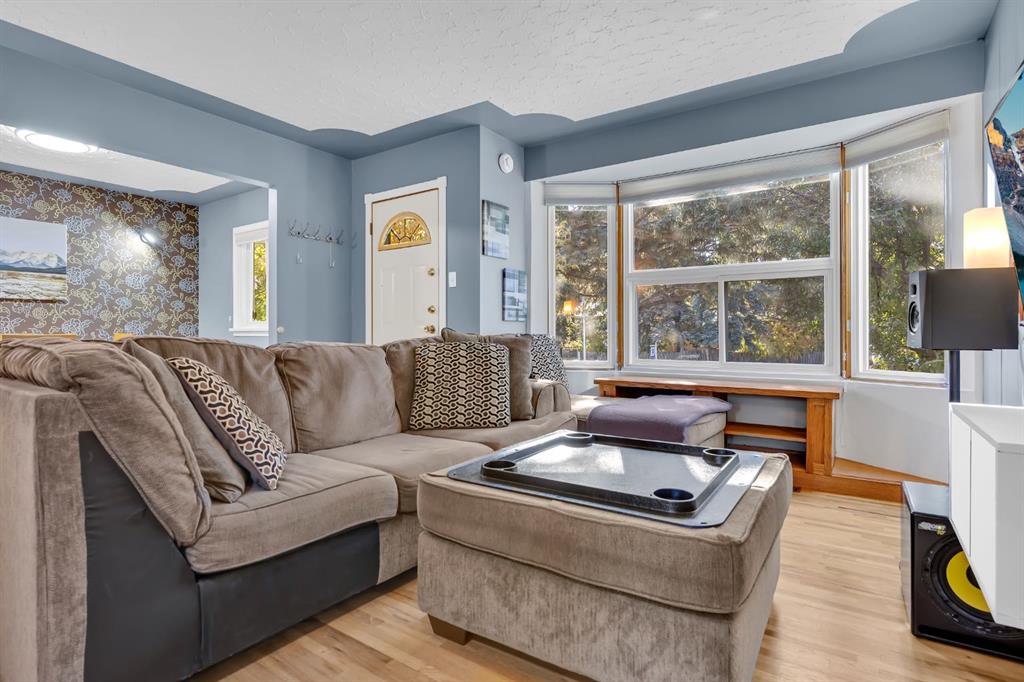 This charming bungalow is nestled on a quiet street in the heart of the historically iconic community of Bowness. Beautiful mature trees will greet you at the curb and the extended concrete drive will usher you up to the front door. You will be greeted at the foyer with glistening original hardwood flooring. The comfortable sized living room is illuminated with natural light flowing through the large front bay window. A lovely built in adjacent the bay window is an ideal location for the TV or plants. Spacious dining area with a beautiful papered feature wall, touch activated sconces, and stunning original glass paned pantry door. This gem boasts a balance of updates throughout while maintaining qualities of its original charm. The beautifully renovated kitchen is an expressive space that is sure to inspire many lovingly prepared meals. The aesthetically appealing two toned soft close drawers and cabinets offer functional space saving enhancements while the updated oversized gas stove and range hood provide an engaging focal point to the kitchen. Updated 4 pc main bath. A comfortable sized Primary room and second bedroom complete your tour of the main floor. The rear door offers a separate entry to the main and lower level. A large storage closet and open space await you at the bottom of the stairs. This is an ideal space to set up the gym equipment or keep those valuable bicycles indoors. The large bright utility room is home to the washer and dryer, hobby area and additional storage. The substantially sized recreation room is home to the dry bar and striking stone faced wood burning fireplace. A third bedroom and updated 3 piece bath make this an exceptional area for entertaining. The extended side driveway offers plenty of additional parking. The carport will keep the snow off the vehicle during the winter months & also includes a front storage area. The massive back yard is an entertainers dream. The beautiful stone patio welcomes your guests to gather around the fire pit while you grill up the steaks on your gas BBQ. The rear fence has a swing door and could accommodate RV parking. Or, build your dream garage at the rear of the home and park the RV on the side driveway. Alternatively one could remove the carport and have dual access to a garage. Additional upgrades to this home include newer LED light fixtures throughout, paint, windows on the main and lower bedroom, newer hot water tank & furnace, roof is approximately 10 years old, and sewer line to the home has been replaced. Close proximity to schools, shopping & amenities, Bowness Park, COP, Shouldice Athletic Park, the Children’s hospital & the University. The of abundance of amenities within the community and surrounding area is exceptional. A short commute to downtown and quick access to highway 1 for those who enjoy adventuring outside the city. Contact your favourite realtor today to call this home your own.