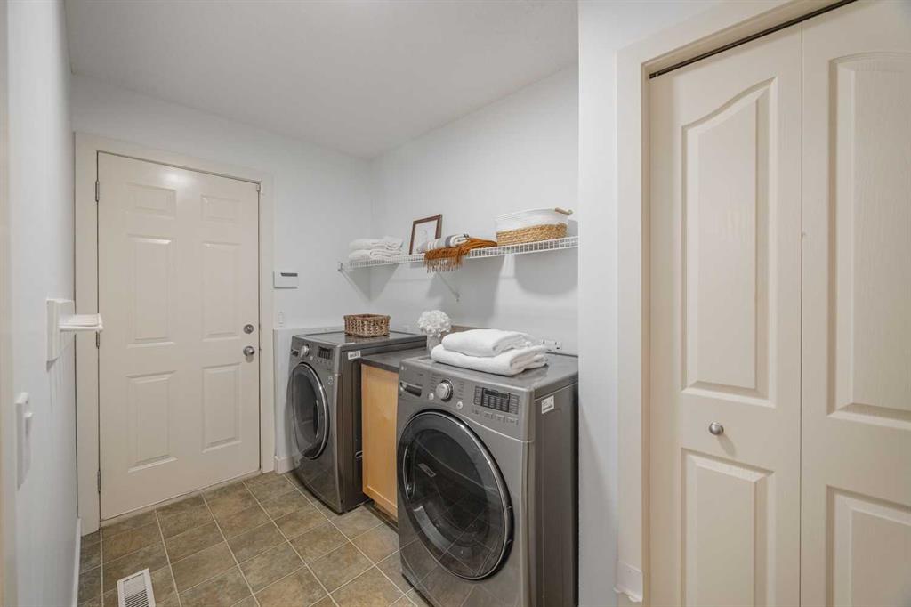 Enjoy a main floor laundry room with additional storage, a two-piece powder room and tucked-away access to the lower level and double attached garage.
