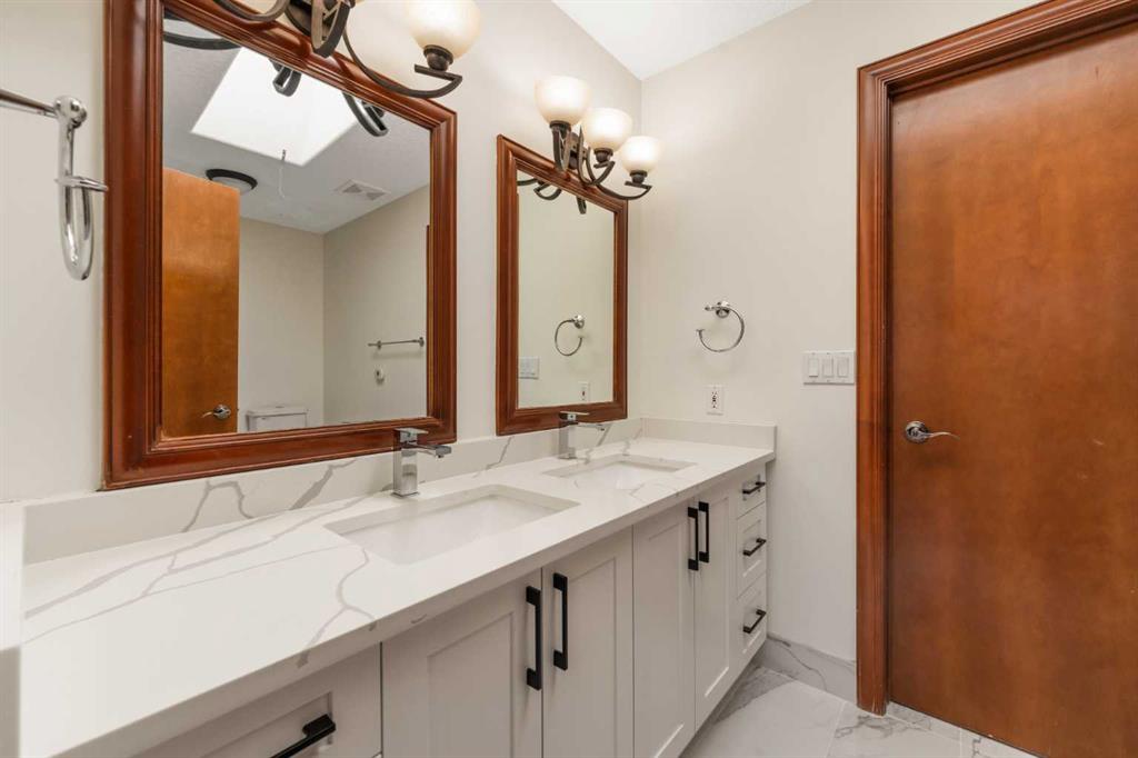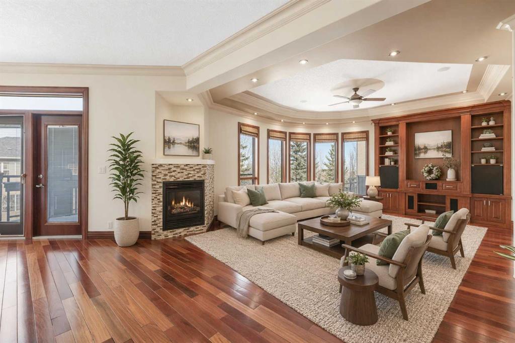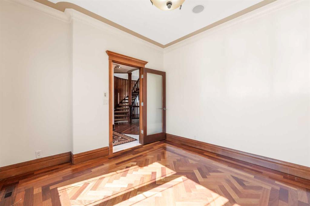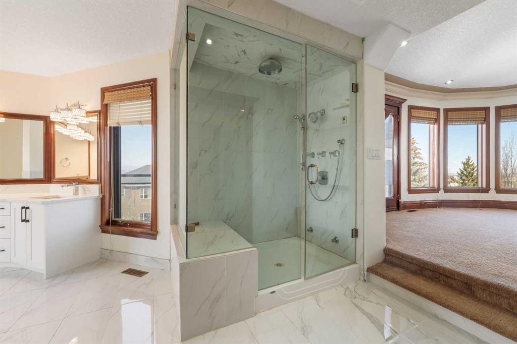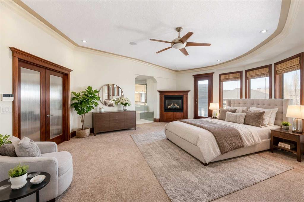 Are you looking for a house like no other, with a unique floor plan? See it to believe it. An extraordinary custom built LUXURY HOME in Calgary’s most sought-after neighborhood. Just moments from the prestigious Calgary French International School, premier shopping, and convenient highways, this stunning 5-bedroom, 4-full, 2-half-bath residence spans over 4500 square feet of sun-filled living space. As you enter, a cozy foyer welcomes you into a world of sophistication. The UNIQUE OPEN SPIRAL STAIRCASE stands as a centerpiece, CONNECTING ALL THREE LEVELS IN A FREE FLOWING LAYOUT. Unlike typical basements, this home embraces an open, airy feel, NO CEILING CUTS THE BASEMENT OFF; instead, the basement, VISIBLE FROM THE TOP FLOOR, invites you into a UNIFIED living experience. The main floor dazzles with 2 expansive living areas, perfect for hosting, and a formal living room with a fireplace. The RENOVATED and UPGRADAED chef’s kitchen is a dream—granite countertops, mostly BRAND NEW APPLIANCES, and a separate SPICE KITCHEN. 3 BALCONIES in the house expand your living space, perfect for summer gatherings, while the home is bathed in natural light from LARGE WINDOWS. Upstairs, enjoy the convenience of a bedroom-level laundry, complete with a SKYLIGHT, while the secondary bathroom also boasts ANOTHER SKYLIGHT, ensuring brightness at every turn. Upstairs, 4 serene bedrooms await, with two sharing a RENOVATED luxurious spa-like bathroom, each with double vanity sinks. The master suite is a private haven, featuring a fireplace, double-door entry, and a spa-inspired ensuite with a jetted tub, steam shower, and walk-in closet. The home offers ample storage, and central air for comfort year-round. The walkout basement is an entertainer’s dream—a cozy living area with a fireplace, a wine cellar, wet bar, bedroom, and den—perfect for guests. With a large garage, a flex room, and abundant storage, every detail is designed for practicality. Bathed in positivity, with abundant windows, this home is a masterpiece—where openness, elegance, and a warm family vibe come together. You will appreciate the location of this home surrounded by grocery stores like Co-op, No Frills and Save-on foods and only 12 minutes to the Shouldice park. A great convenience of walking distance to the prestigious Calgary French & International School and just minutes to Webber Academy. Upscale living in a family friendly community, your search ends here…..