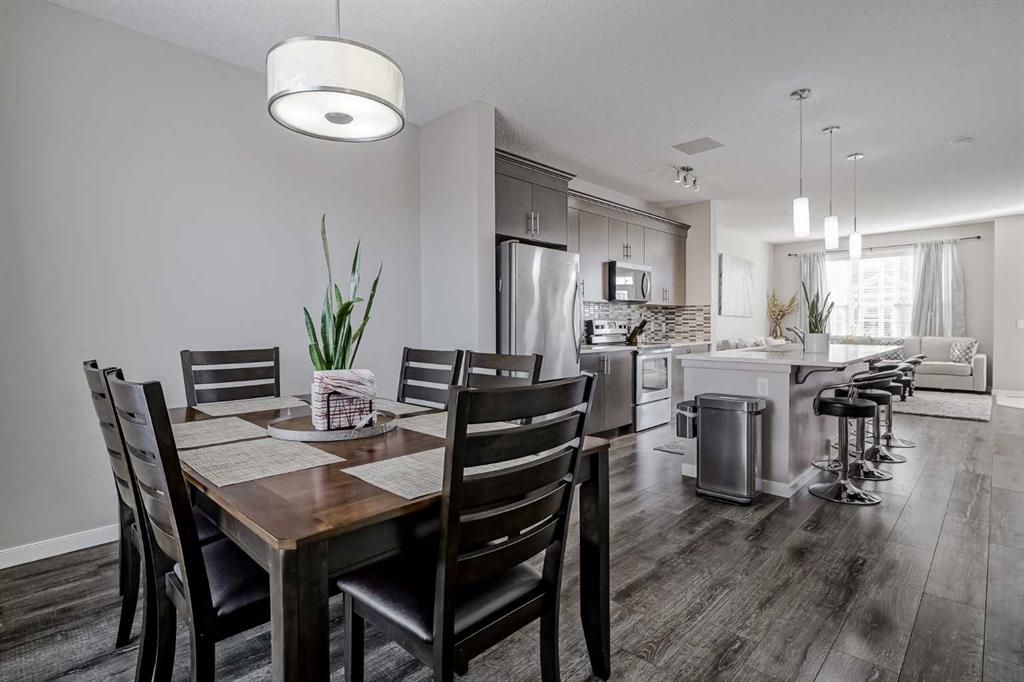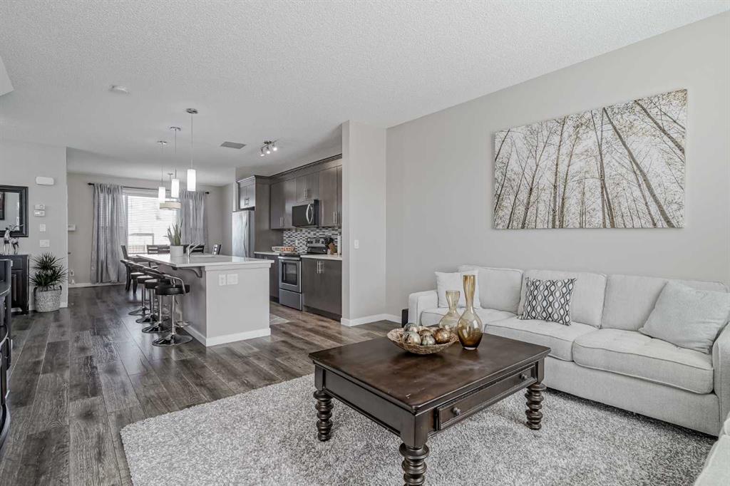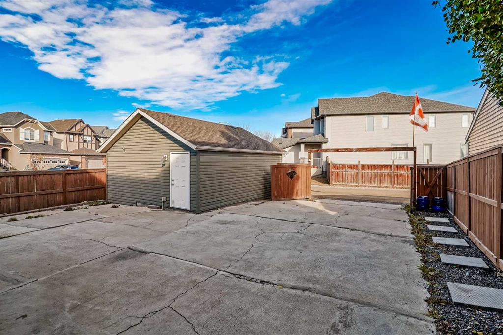 Prepare to be impressed by this exceptional two-storey, corner-lot home situated in the desirable community of Cranston! This residence offers a fabulous, open-concept floor plan designed for effortless living and entertaining. The main level is anchored by beautiful laminate flooring throughout and features a spacious living room perfect for gathering. Culinary enthusiasts will appreciate the great kitchen, boasting abundant cabinet space, sleek quartz countertops, and a large central island. A generous dining area easily accommodates family meals, complemented by a versatile nook off the kitchen—ideal for a small den or extra seating space. Upstairs, the convenience is clear: three generously sized bedrooms await, along with a full four-piece bathroom and a dedicated upstairs laundry room. The primary bedroom serves as a true sanctuary, complete with a luxurious five-piece ensuite. The living space extends seamlessly into the fully finished basement, which offers a spacious family room, an additional bedroom, and a three-piece bathroom, providing endless possibilities for guests, hobbies, or recreation. Practicality meets function outside with a double detached garage and dedicated space for RV parking. The location is truly unbeatable: you are just minutes from major commuter routes like Deerfoot Trail and Stoney Trail. Premier shopping and essential services, including the South Health Campus, are only a short distance away, making daily life incredibly convenient. This home is a perfect blend of space, finish, and prime location!