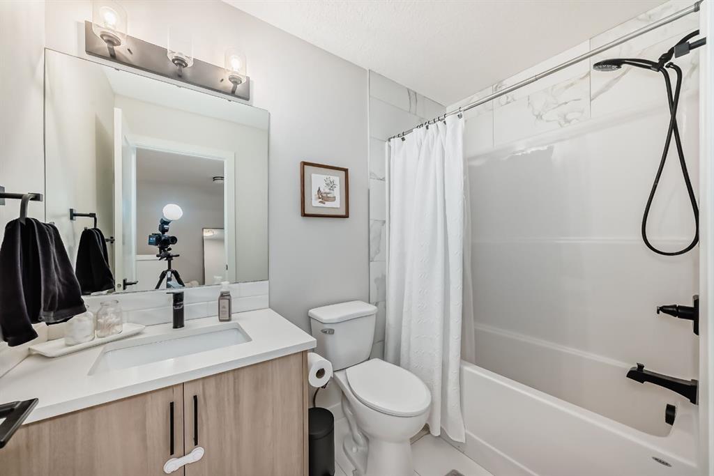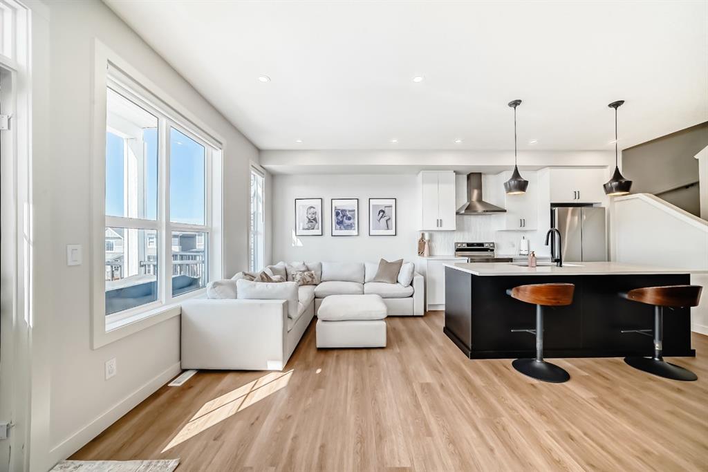 NO CONDO FEES!! This home is just waiting for your personal touch in making it warm and inviting for you and your family. 3 bedrooms with laundry at the top of your wide staircase, with a spacious bonus room. The main floor has living room with new shiplap walls, dining/eating area and an island with bright kitchen overlooking the backyard off of the deck, and the views!!! The backyard has green grass and large patio for entertaining, a covered storage area under the upper deck and a gate to access the walking path to the park. Undeveloped basement with Roughed in Bath ready to be developed.