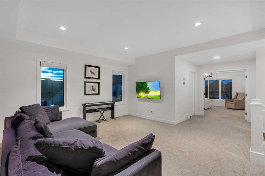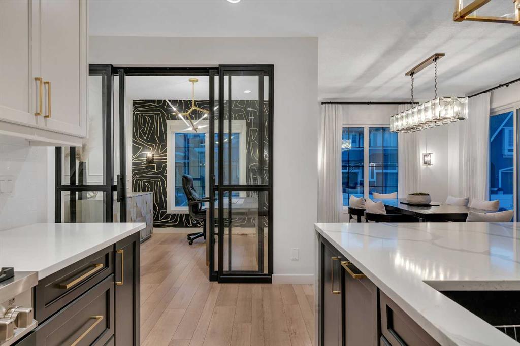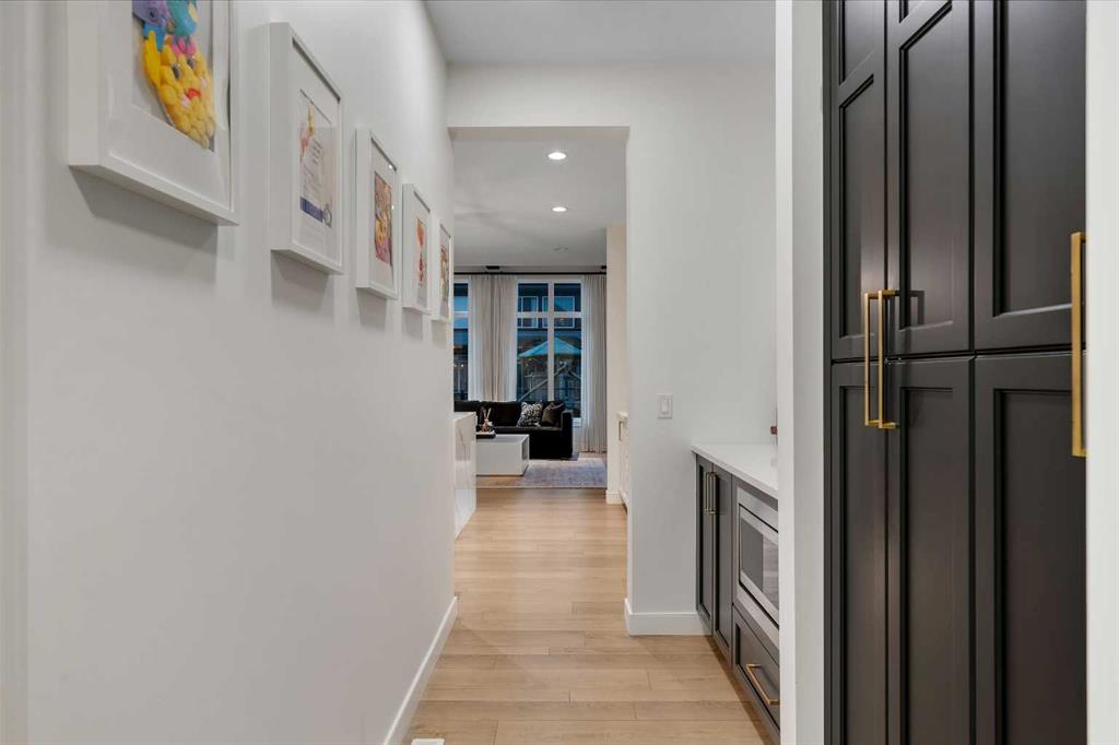 WALKING DISTANCE TO LAKE ACCESS / DOUBLE FRONT ATTACHED GARAGE / EV VEHICLE CHARGER / WATER SOFTNER / MAINTENANCE FREE BACKYARD / PREMIUM TURF WITH PLAYFOAM UNDERLAY / UPGRADED APPLIANCE PACKAGE / CUSTOM DRAPES / HUNTER DOUGLAS WINDOW COVERINGS / HIGH-END INTERIOR FINISHES THROUGHOUT AND MORE! Discover the epitome of modern luxury in this rare corner-lot 2-storey residence, offering 3 bedrooms, 2.5 bathrooms, and a private, maintenance-free backyard oasis. With over $150,000 in custom upgrades, this home is truly one-of-a-kind. Step through the grand foyer and into a thoughtfully designed open floor plan, where expansive windows flood the space with natural light. The chef-inspired kitchen features a built-in Dacor refrigerator, Italian Bertazzoni gas range, and a sleek butler’s pantry with direct mudroom access. Entertain in style in the elegant dining room with seamless backyard access, or unwind in the stunning living room adorned with a gas fireplace feature, custom drapery and Hunter Douglas window coverings throughout the home. A private executive office with steel walls and glass accents with custom slider steel doors elevates your work-from-home experience, while upstairs, a spacious bonus room offers the perfect family retreat. The primary suite is a true sanctuary, featuring double French doors, intricate wall detailing, heated floors, a spa-inspired ensuite with a walk-in custom shower, and a fully tailored dressing room. Two additional bedrooms share a beautifully appointed bathroom with custom storage, while the convenient upper-level laundry with built-ins and sink completes the thoughtful design. Outdoors, your private composite deck leads to a meticulously curated backyard, featuring premium turf with playfoam underlay—ideal for children and pets—surrounded by a sleek vinyl fence. Perfectly situated just steps from the beach, shops, and community access, this home is more than a residence—it’s a lifestyle.