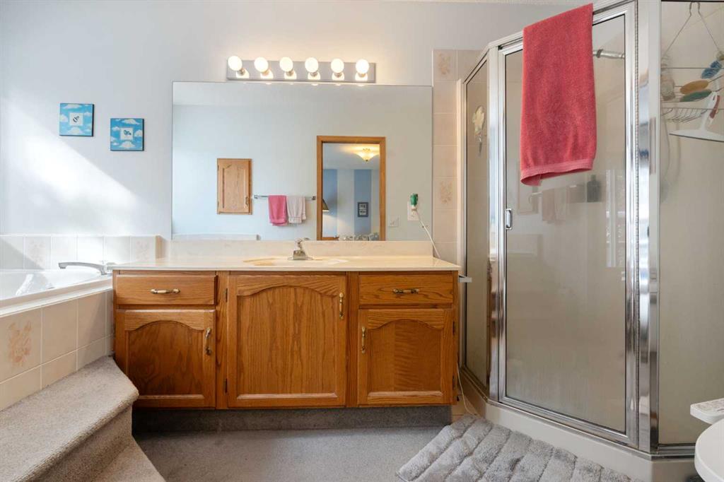 ***Open House Sunday Feb 22 1:00-4:30 PM- Dual Open House with 28 Wolf Drive*** Lovely family home on one of the nicest lots in Redwood Meadows! This half acre lot is located in a quiet cul-de-sac, and backs directly onto the Berm Trail and Elbow River beyond. Enjoy hiking trails, mountain biking, x-country skiing and fishing directly from your backyard. Entering the home you find a large open living/dining area with soaring ceilings and skylights that brighten this area and the kitchen beyond. A cute breakfast nook over looks the forest, and leads to a nicely appointed family room with hardwood floors and gas fireplace. The main floor also has a flex room that could be a bedroom or office, a laundry, and a 2-piece bath. Upstairs features the primary retreat, a large room with 4-piece en-suite bath, walk-in closet, and a wonderful private balcony overlooking the forest and river beyond. There are two more bedrooms and another bath on this level. The basement has a workshop/craft room plus providing potential for further development. The front steps, balcony deck, and back deck are built with solid California redwood! The back deck, recently re-stained, is not only private but has a great barbecue area and built in bench and table. Great for entertaining! The house is completed by a large double attached garage. You cannot beat this location- check out the attached 3-D tour, and then come see it in person!