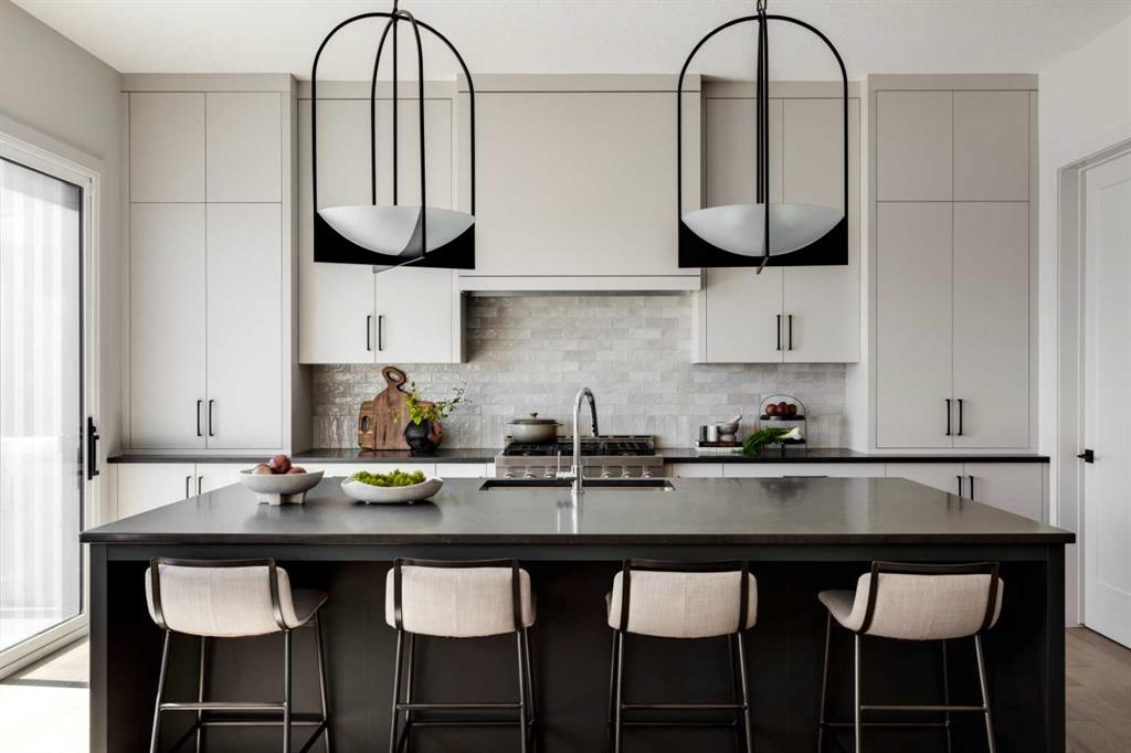 Welcome Home to Lupi Luxury Homes 8 Rockcliff Hill NW, this distinguished residence epitomizes the pinnacle of luxurious living. 4 oversized bedrooms each with their own ensuites and walk-in closets. This lovely home seamlessly integrates with its surroundings through a thoughtfully designed layout, boasting 6 bedrooms and 6 bathrooms. A standout feature is the 3-car garage with ceiling heights to accommodate a car lift. As you step inside, a wealth of high-end amenities unfolds, illuminated by natural light streaming through triple-pane Loe2 windows. The gourmet kitchen, with rich white cabinetry to the 10’ ceiling and darker oversized island, showcases a built-in stainless steel, double fridge / freezer and upgraded gas range, dishwasher, microwave, hood fan, bar fridge, creating a culinary haven for residents and guests. Elevating the living experience, the residence boasts large deck off the professionally landscaped oversized back yard. A captivating stone fireplace becomes a central focus, infusing the space with warmth and inviting ambiance. The master ensuite is a true retreat, featuring a curb less walk in shower, soaker tub and his and hers vanity sinks and a large walk-in closet. Technological sophistication with a security system includes, and various powered window coverings. The home is adorned with exposed aggregate concrete, a high-end double furnace system with two air conditioning units included, ensures year-round comfort. Elegance permeates every corner, from an exquisite
