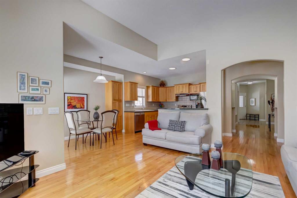 Welcome to this exceptionally maintained original-owner villa bungalow, offering over 2,700 sq. ft. of fully developed living space in the highly sought-after Straddock Villas—a hidden estate community prized for its peaceful ambiance, mature tree-lined streets, and exceptional sense of community. Situated on a desirable corner lot, this immaculate bungalow showcases true pride of ownership and an outstanding, well-designed floor plan filled with natural light, elegant arched doorways, and tasteful designer touches throughout. The home features three bedrooms and three bathrooms, ideal for both everyday living and entertaining. A large tiled foyer welcomes you inside and opens to a bright front bedroom currently used as a den, complete with large windows. Gleaming hardwood floors guide you through a wide hallway into the formal dining room—perfectly sized for hosting family and friends. The open-concept living area impresses with a custom kitchen featuring birch cabinetry, granite countertops with an eating bar, updated stainless steel appliances (stove 2025, dishwasher 2021), new lighting, abundant storage, and a sunny breakfast nook that opens onto the west-facing patio, ideal for afternoon sun and evening relaxation. The spacious living room is anchored by a cozy fireplace, creating a warm and inviting atmosphere. The king-sized primary bedroom offers a full walk-in closet and a private four-piece ensuite. A three-piece bathroom and convenient main-floor laundry with new washer and dryer (2026) complete this level. Downstairs, the grand staircase leads to a fully developed lower level featuring a third bedroom, a full bathroom, and a large entertainment and recreation area with a second gas fireplace. A dedicated pool table area (pool table included) and generous storage space in the utility room add both function and flexibility. Additional upgrades include a furnace (2019) and air conditioning (2024) and new high end Berber carpet in bedrooms and basement (2025). The double attached garage and double driveway provide ample parking and convenience. Minutes to great ravine walking and bike paths. Backs onto a small city green space. Access to a small playground with monkey bars etc for the grandkids. Five minutes walk to Strathcona Square Shopping Centre with grocery and liquor stores, bank, pharmacy, health professionals and restaurants and more. If you’ve been considering “right-sizing” or dreaming of a lifestyle that allows for easier travel and low-maintenance living, now may be the perfect time. This beautifully cared-for bungalow offers comfort, space, and peace of mind in an exceptional community with an active social committee that organizes get-togethers & the neighbours look after each other, especially when travelling- an opportunity rarely available and not to be missed.