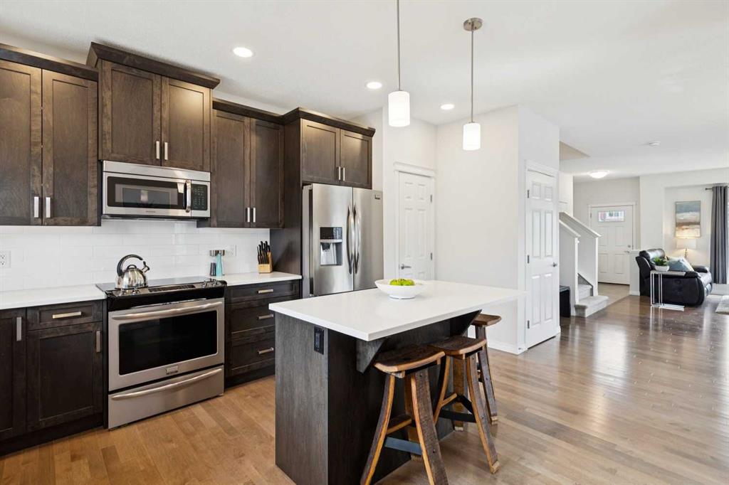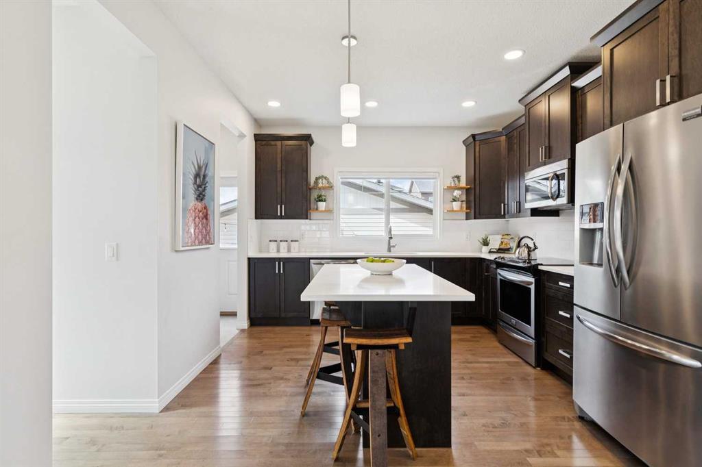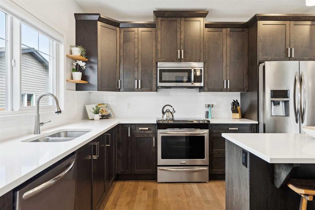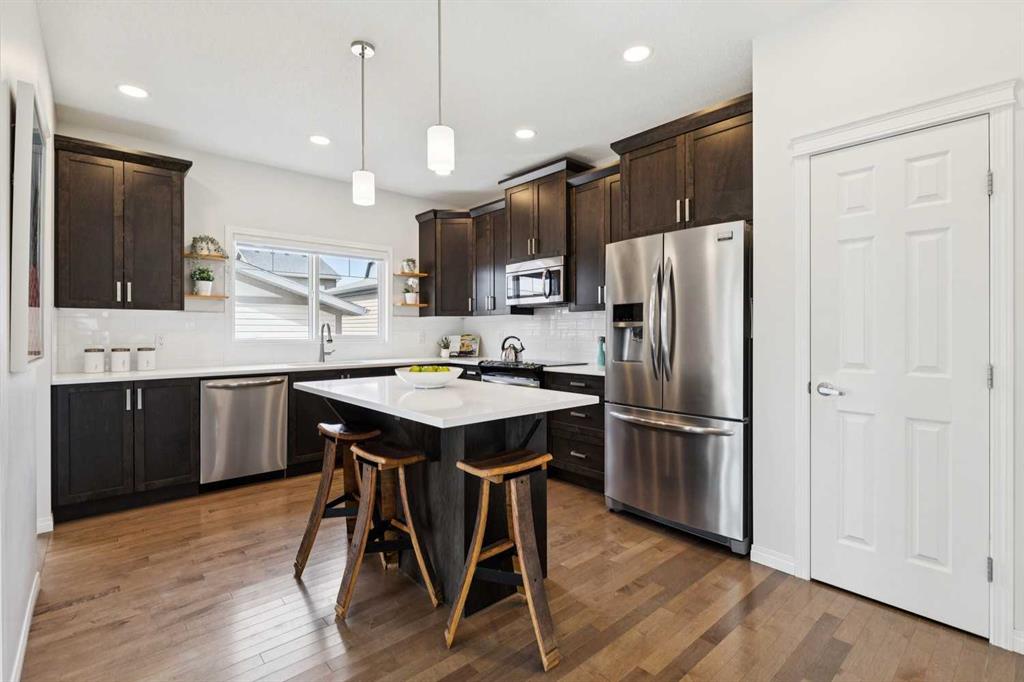 CORNER LOT | 4 BEDROOMS | FULLY DEVELOPED BASEMENT | HEATED OVERSIZED GARAGE | RV PARKING | Looking for a home that actually works for how you live day to day? This WELL-MAINTAINED FAMILY HOME IN WALDEN delivers the space, layout, and upgrades buyers are searching for — without compromise. Step inside to an OPEN-CONCEPT MAIN FLOOR with 9-FOOT CEILINGS and large windows that bring in TONS OF NATURAL LIGHT. The living room is anchored by a GAS FIREPLACE, creating a comfortable space to relax or gather with family. The kitchen is designed for real life — featuring QUARTZ COUNTERTOPS, stainless steel appliances, and an ISLAND WITH SEATING, plus plenty of prep space and storage to make everyday living easier. The large DINING AREA connects seamlessly to the main living space, while the kitchen offers direct access to the backyard deck — making it easy to move between indoor and outdoor living. Need a workspace? The small MAIN FLOOR OFFICE/FLEX SPACE gives you options — whether you’re working from home or the kids need a place to study. Upstairs unwind in your spacious PRIMARY SUITE with walk-in closet and ensuite. Two additional bedrooms, a full bath, and UPPER-LEVEL LAUNDRY make this layout work for busy households. The FULLY DEVELOPED BASEMENT adds even more flexibility — with a 4TH BEDROOM, 3-PIECE ENSUITE, and REC SPACE that’s ready for guests, teens, or movie nights. Outside is where this home really separates itself. Situated on a CORNER LOT, you get more space and a neighbour only on one side. Complete with a CUSTOM DECK, privacy screening, and a FIRE PIT area that becomes the place everyone gathers. Rear access offers space for RV parking. And then there’s the garage — A HEATED OVERSIZED GARAGE WITH 220V POWER and BUILT-IN STORAGE — perfect for anyone who needs workspace, storage, or just appreciates the upgrade. Additional features include TRIPLE PANE WINDOWS and AIR CONDITIONING, giving you comfort and efficiency year-round. Located just minutes from SHOPPING, SCHOOLS, PATHWAYS, and quick access to MACLEOD TRAIL & STONEY TRAIL, this is a home that makes daily life easier.