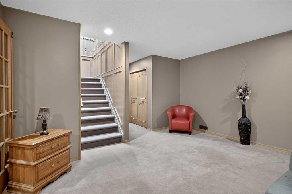 Car enthusiasts and hobbyists will find their sanctuary in the oversized double heated garage, which comes fully equipped with a built-in workbench, ample shelving, and the rare luxury of hot and cold water taps. Storage is abundant throughout the property, ensuring every item has its place. From the meticulous interior finishes to the tech-ready upgrades and the prime location near Calgary’s favourite provincial park, this home represents a premier opportunity to live in one of the city’s most sought-after estate enclaves.