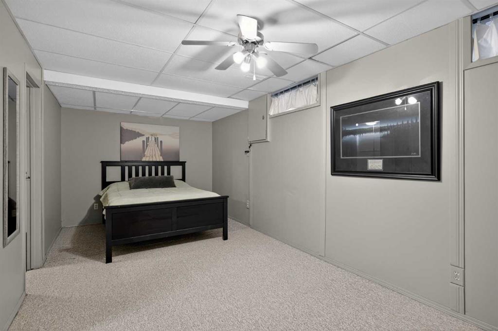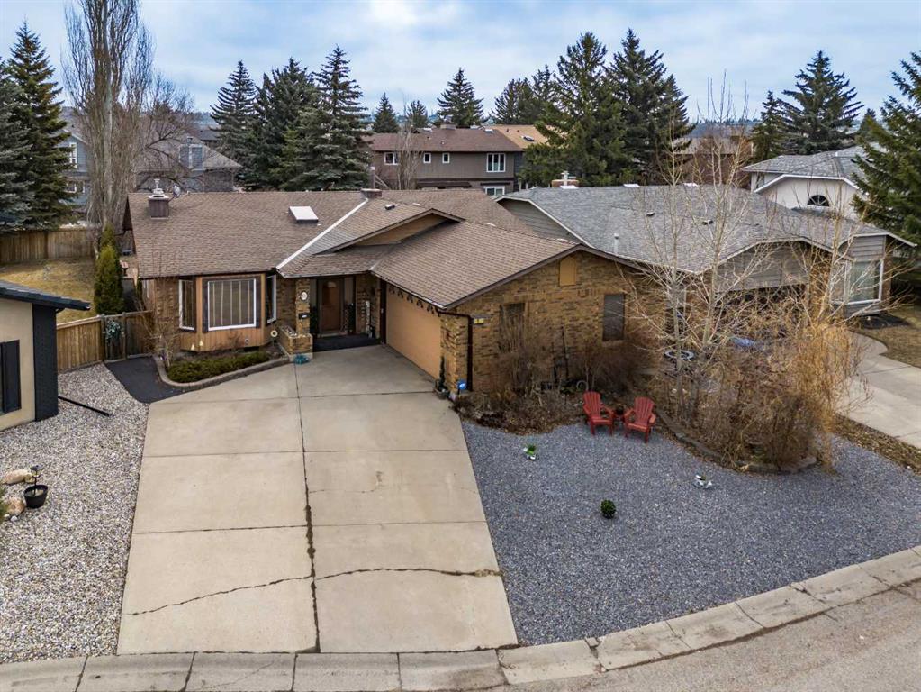 OPEN HOUSE SATURDAY APRIL 18 (12:00-2:00pm). Nestled on a quiet, tucked-away street in the prestigious ESTATES OF DEER RUN, this exceptional bungalow offers a rare combination of sophisticated upgrades and an unbeatable location just steps from the natural beauty of Fish Creek Park. The heart of the home is designed for both comfort and style, featuring elegant granite countertops, stainless steel appliances, and a main living area highlighted by unique antique mirror shelving and a cozy, natural gas fireplace. Natural light pours into the space through a skylight equipped with remote-controlled blinds, while the functional layout includes the convenience of main-floor laundry and a dedicated wet bar for seamless entertaining. With five spacious bedrooms and three bathrooms, the home offers plenty of room for a growing family, including a basement bedroom that was originally a sauna and can easily be reverted for those seeking a private spa retreat.