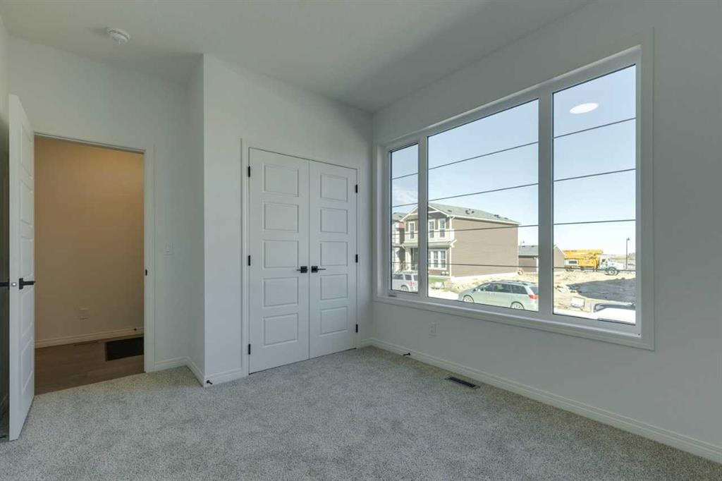 This beautifully upgraded 1,822 sq ft home in Homestead is designed for comfort, style, and flexibility. The main floor includes a bedroom and full bath, ideal for guests. The chef-inspired kitchen features an electric range, cabinetry with crown moulding, refrigerator, and premium finishes, creating a functional and elegant space. Upstairs offers three spacious bedrooms, a central bonus room perfect for a home office or media setup, and a smart layout that maximizes space and natural light. The separate side entrance leads to a basement with rough-ins, offering excellent potential for a future development. Located in the desirable Homestead community, this home blends modern design and family-friendly living. Photos are representative.