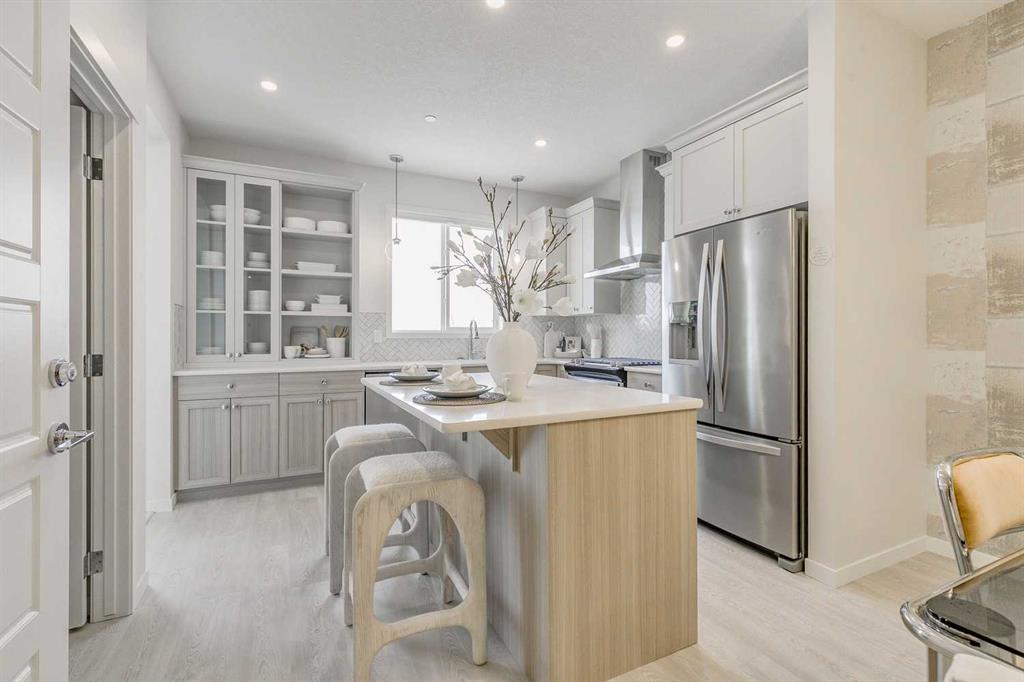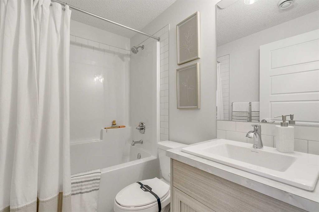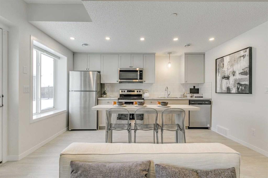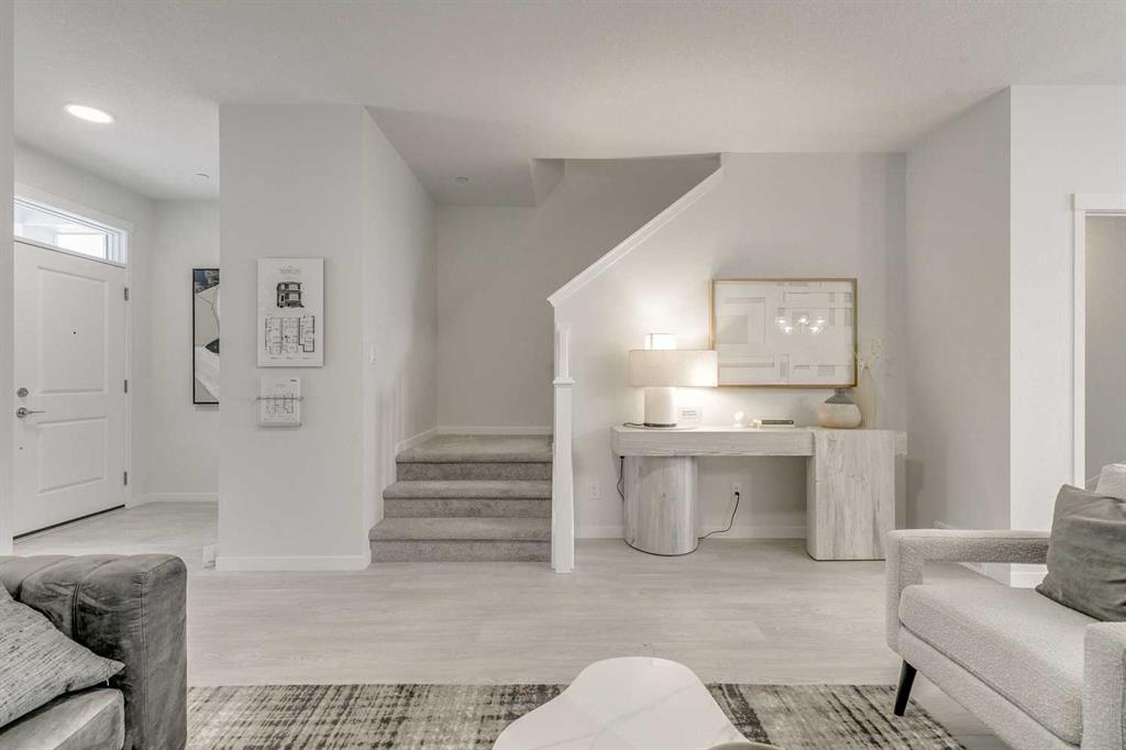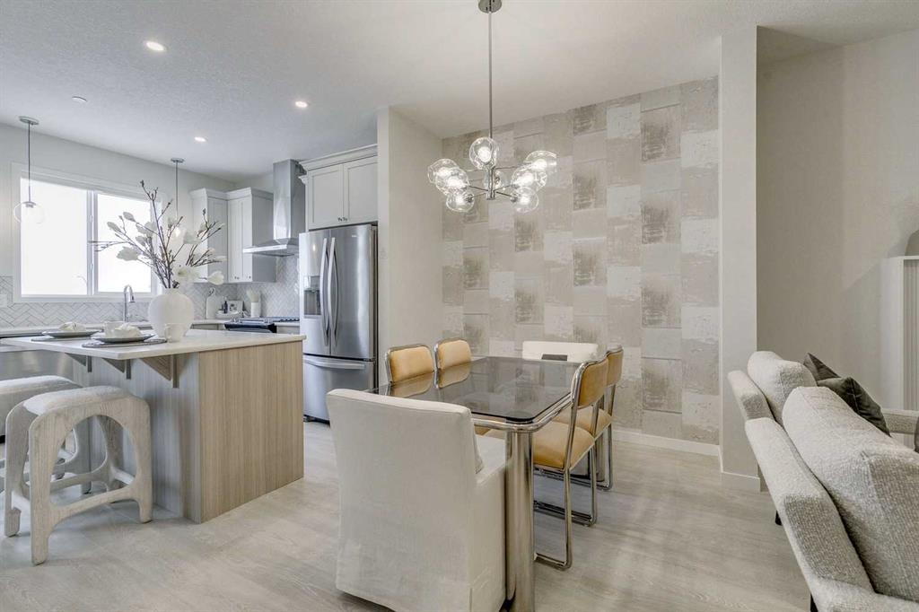 Welcome to this beautifully upgraded 2400+ sq.ft. of developed space former Morrison Homes showhome, a detached laned property located in the desirable community of Livingston. Featuring central air conditioning, exterior Gemstone lighting, and premium finishes throughout, this home offers exceptional value and versatility. The main floor showcases a gourmet kitchen with quartz countertops, a gas range, built-in microwave, kitchen island, pot lights throughout, a walk-in pantry for added storage, and a dedicated dining area perfect for family meals or entertaining. Elegant luxury vinyl plank flooring flows through the level, complemented by an electric fireplace in the living room. This floor also includes a full 4-piece bathroom, a highly functional bedroom or den, and a small rear mudroom for everyday convenience. Upstairs you’ll find a bright bonus room along with three spacious bedrooms, plus a dedicated laundry area with a washer and dryer conveniently located on this level. The primary suite includes its own 3-piece ensuite featuring a standalone tiled walk-in shower with a glass door and tile extended to the ceiling, while the additional bedrooms are served by a well-appointed 4-piece bathroom. The highlight of this home is the fully developed walkout legal suite, complete with its own kitchen, bedroom, full bathroom, laundry, and private entrance—an exceptional opportunity for rental income, extended family living, or privacy for guests. Outside, enjoy a deck equipped with a gas line for BBQs. Livingston residents enjoy access to an HOA clubhouse featuring a gymnasium, tennis courts, a splash park, and year-round programming, along with quick access to major routes for easy commuting across the city. This home blends functionality, comfort, and showhome-quality upgrades throughout—perfect for buyers seeking a move-in-ready property with a legal walkout suite in one of Calgary’s most desirable communities.