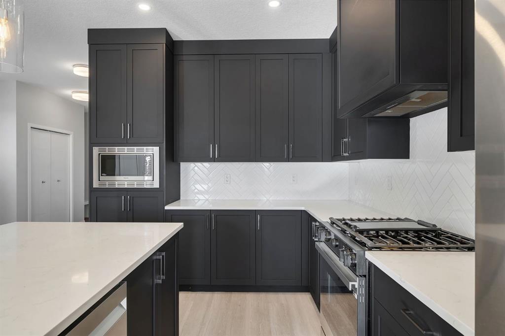 Step inside to discover a bright, open-concept layout designed for modern living. The main floor greets you with abundant natural light streaming through large windows on multiple sides, highlighting the warm tones and contemporary finishes throughout. The chef-inspired kitchen features stainless steel appliances, quartz countertops, a built-in microwave, elegant cabinetry, and a large island — making it the heart of the home for family gatherings or entertaining friends. The open layout seamlessly connects the kitchen, dining area, and living room, creating a perfect flow for everyday living.