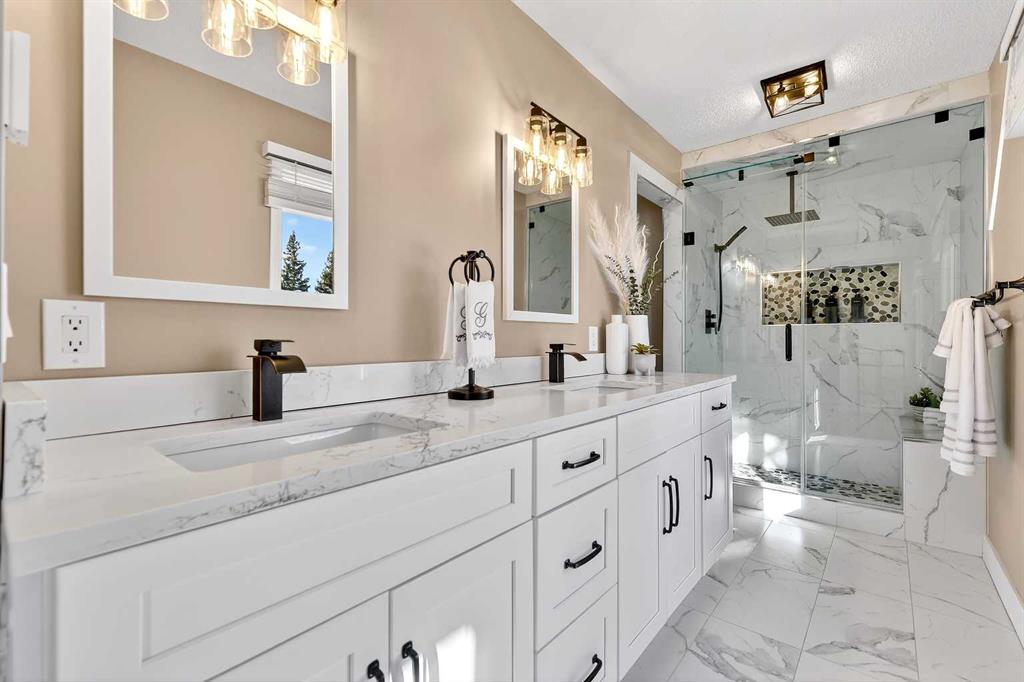 Designed for both comfort and functionality, the main level features four spacious bedrooms, including a private primary retreat with a spa-inspired ensuite complete with rain shower and generous walk-in closet. Thoughtful finishes such as hardwood flooring, vaulted ceilings, and quality fixtures create a warm yet refined atmosphere throughout the main living spaces. The bright, open layout connects the upgraded kitchen, dining area, and living room, making it equally suited for entertaining or relaxed daily living.