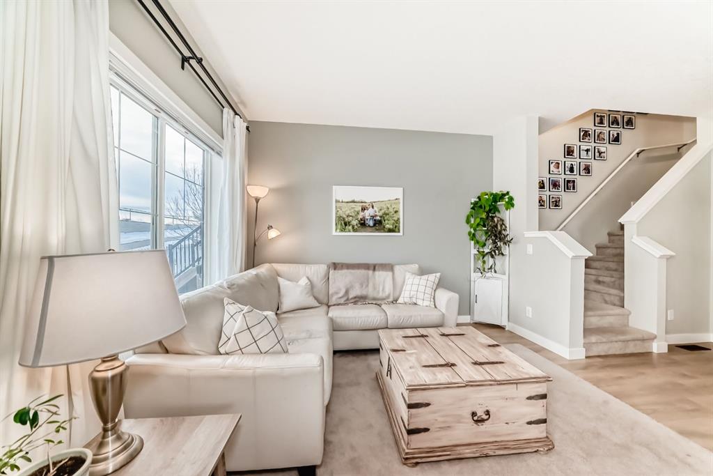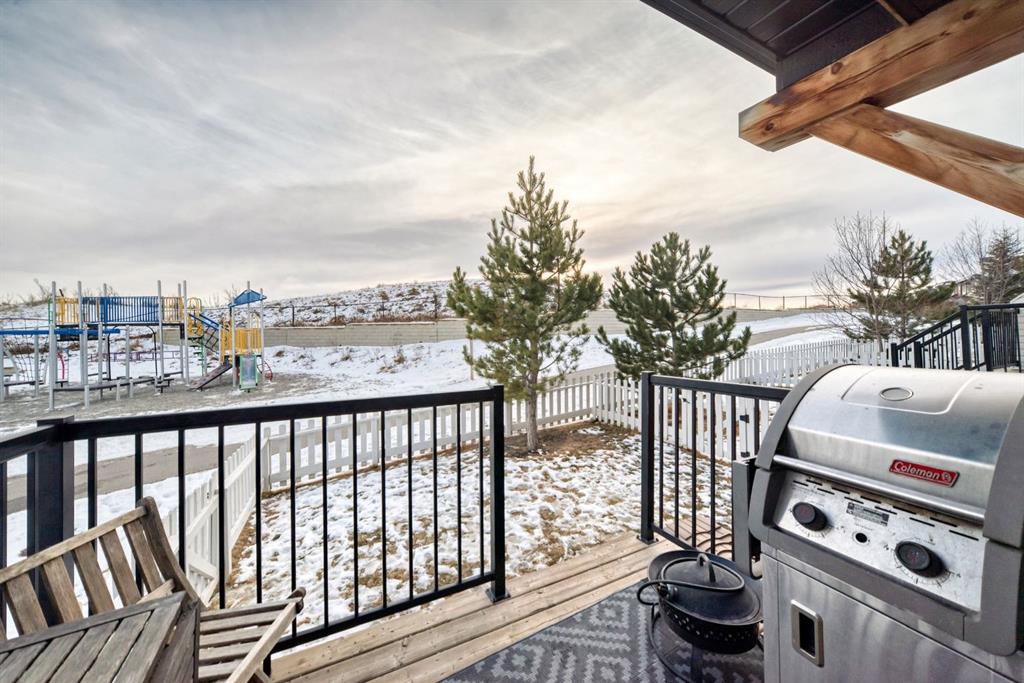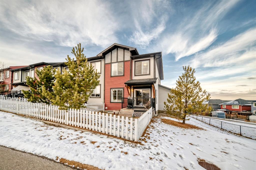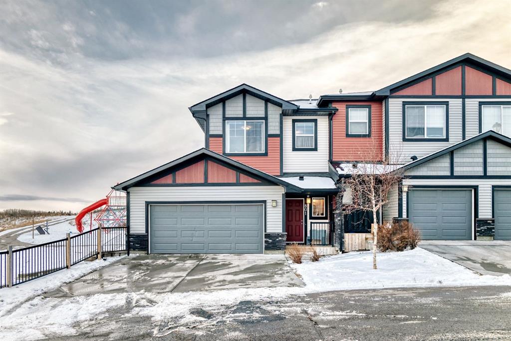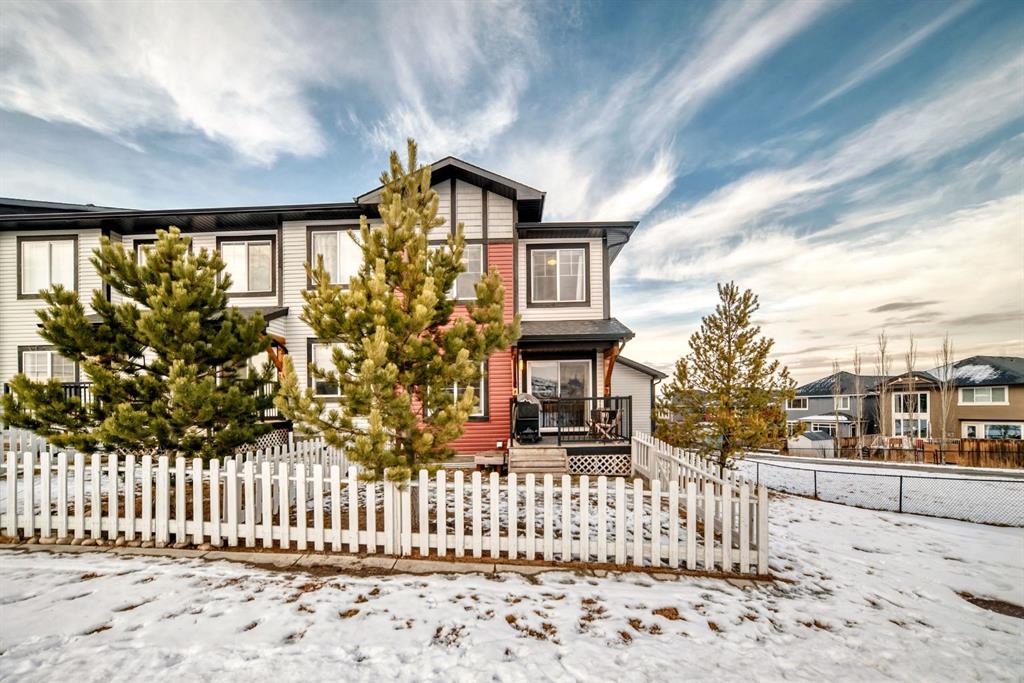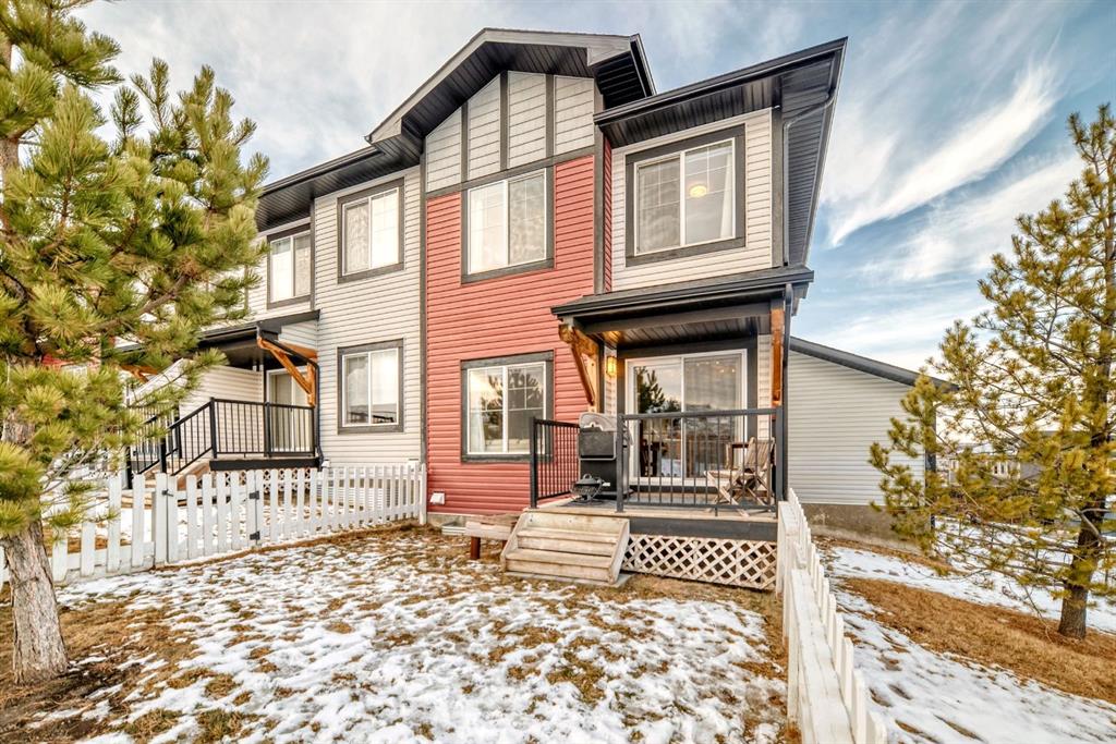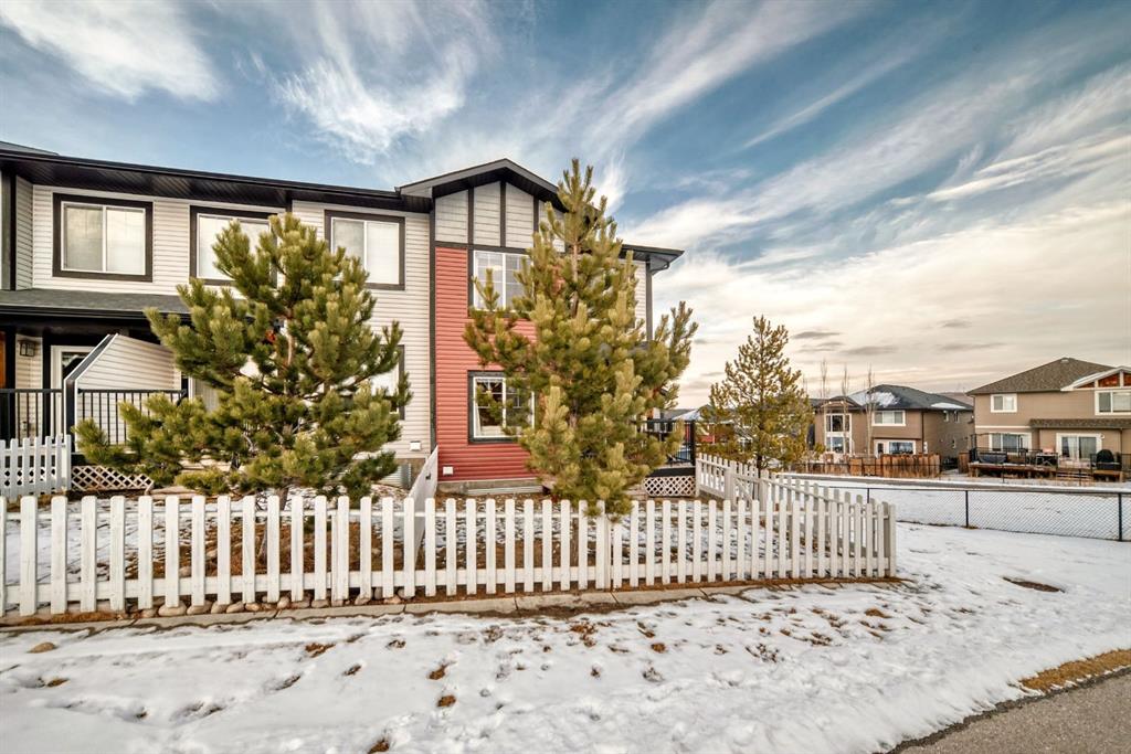 Rare opportunity in Jumping Pound! location, location, location! Beautifully maintained and updated End Unit townhome with 1,156 sq. ft of well though out living space, and backing directly onto South facing green space and a playground, with no neighbours behind. This sought after home features a rare double attached garage, open plan kitchen/dining/living room with easy access to the south facing backyard from the dining area, and abundant natural light throughout. Upstairs offers a primary bedroom with walk in closet and ensuite, plus two additional good sized bedrooms, a full family bathroom, and convenient upper level laundry. Steps from walking and biking paths and just minutes to the Bow River; ideal for outdoor enthusiasts and commuters alike. Well cared for and move in ready! A fantastic combination of location, functionality, and curb appeal. Ideally located just minutes from Schools, Shopping, Restaurants and a wide range of everyday amenities. Book your showing today.