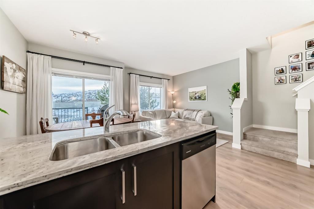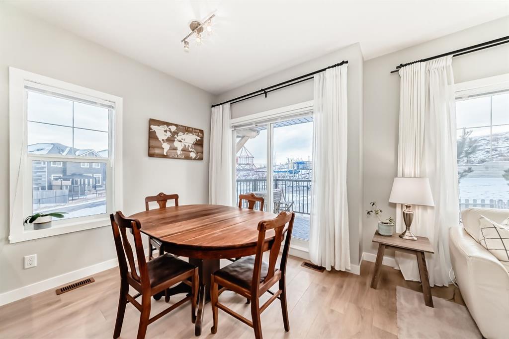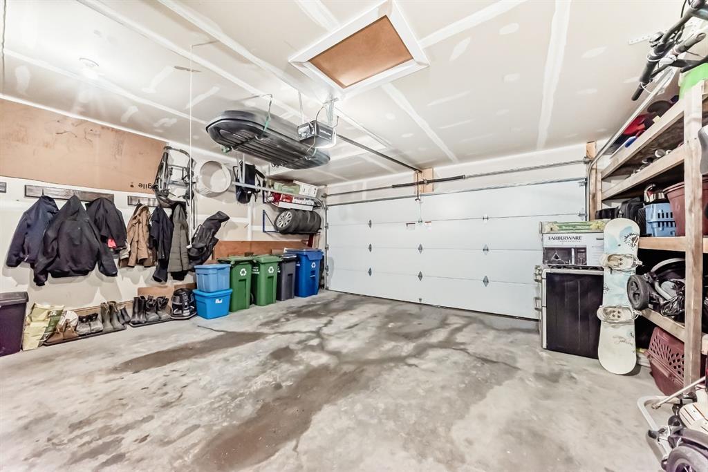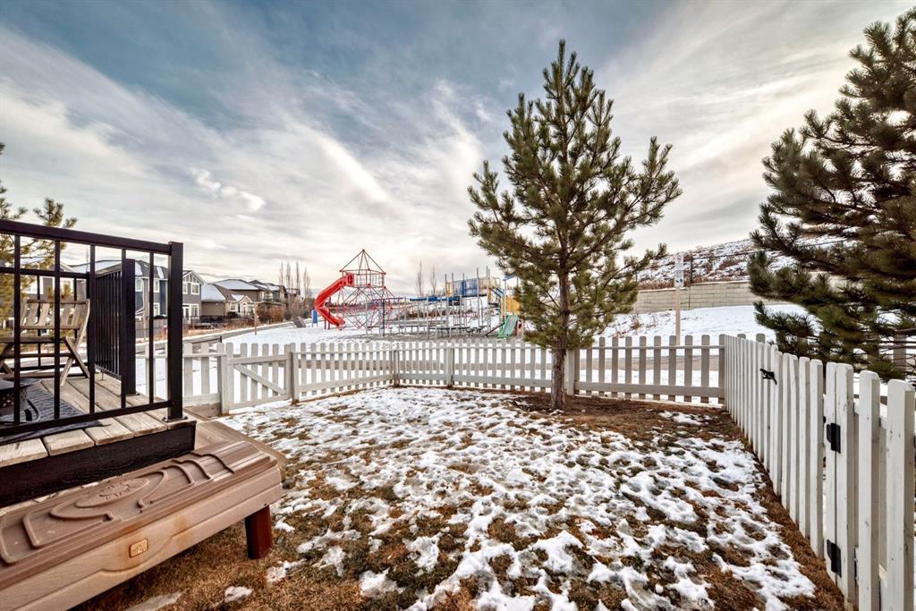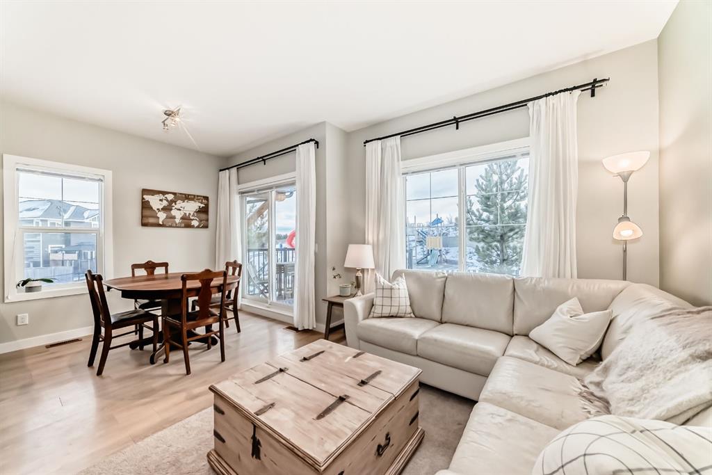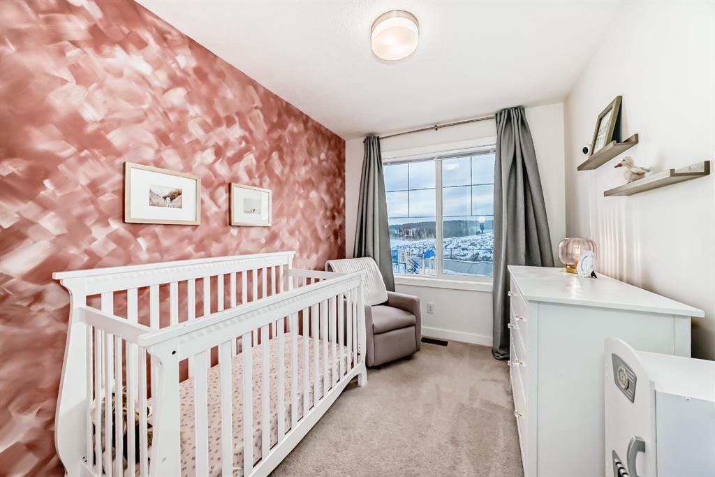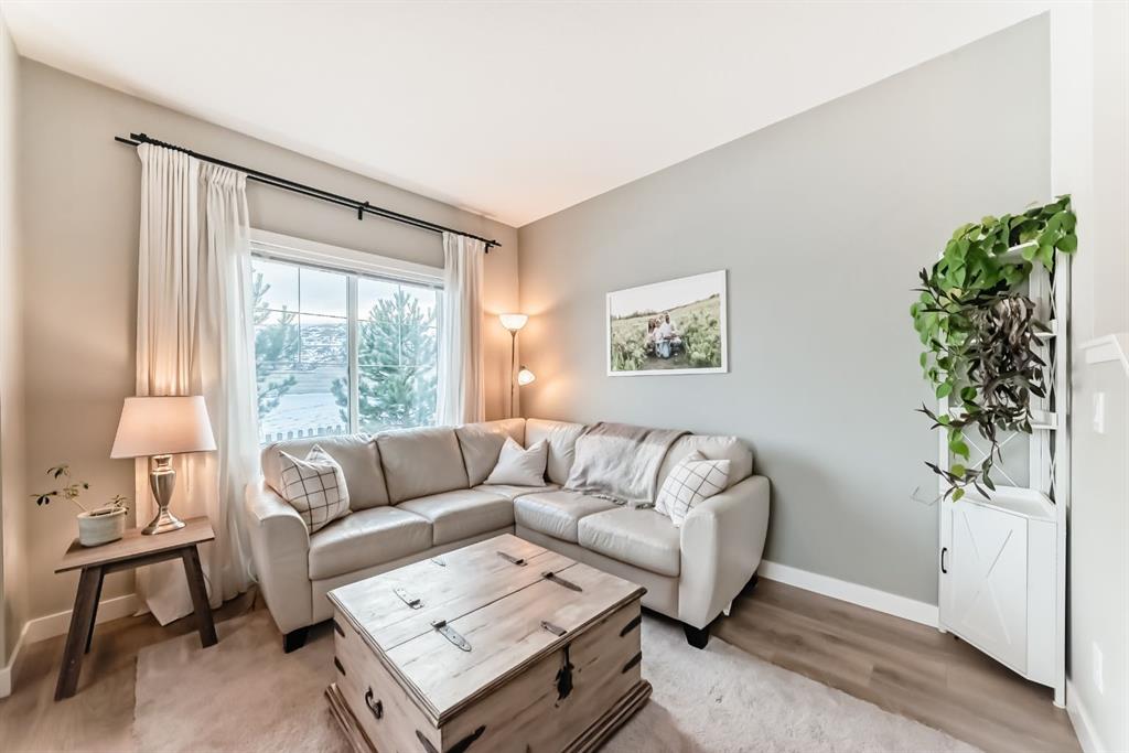 Rare opportunity in Jumping Pound! location, location, location! Beautifully maintained and updated End Unit townhome with 1,156 sq. ft of well though out living space, and backing directly onto South facing green space and a playground, with no neighbours behind. This sought after home features a rare double attached garage, open plan kitchen/dining/living room with easy access to the south facing backyard from the dining area, and abundant natural light throughout. Upstairs offers a primary bedroom with walk in closet and ensuite, plus two additional good sized bedrooms, a full family bathroom, and convenient upper level laundry. Steps from walking and biking paths and just minutes to the Bow River; ideal for outdoor enthusiasts and commuters alike. Well cared for and move in ready! A fantastic combination of location, functionality, and curb appeal. Ideally located just minutes from Schools, Shopping, Restaurants and a wide range of everyday amenities. Book your showing today.