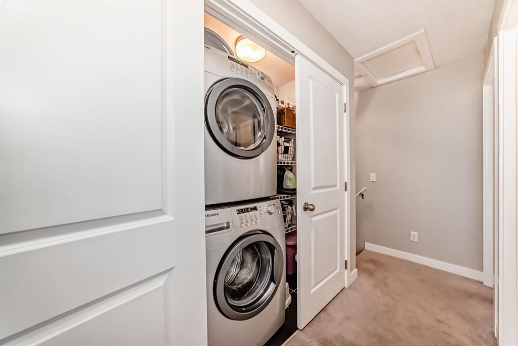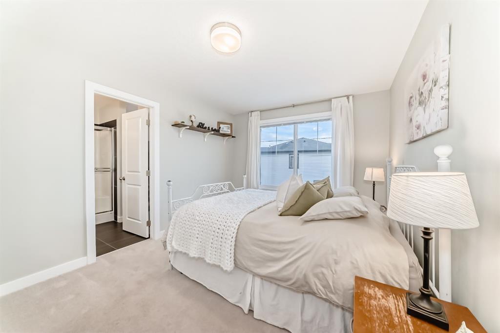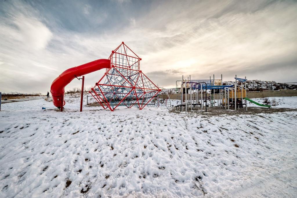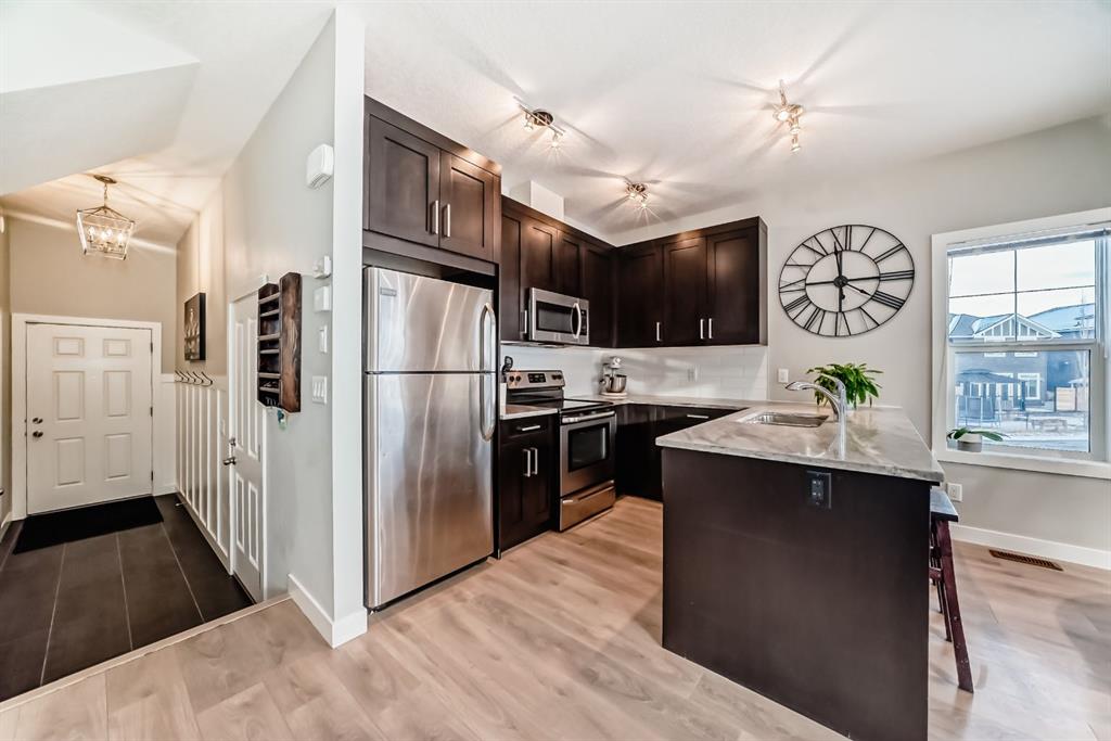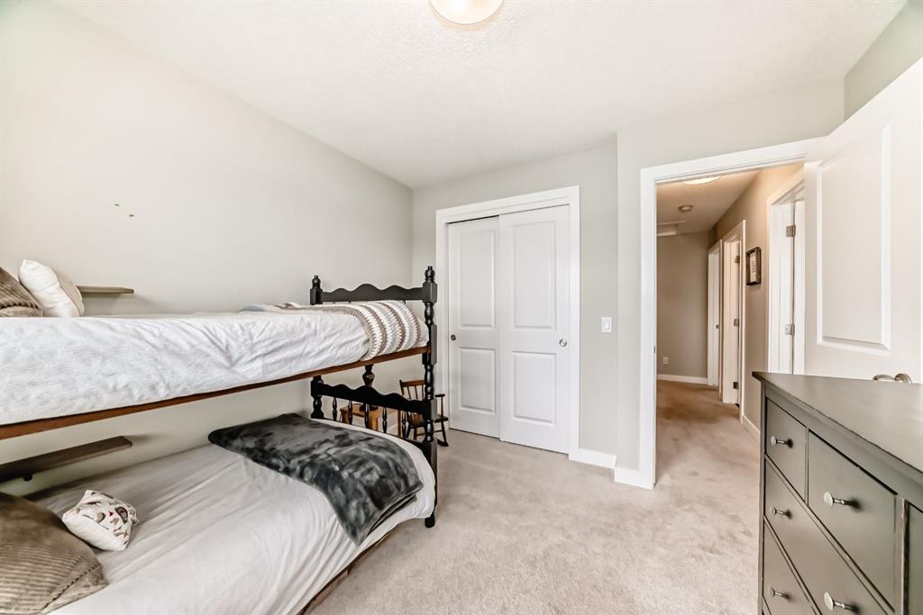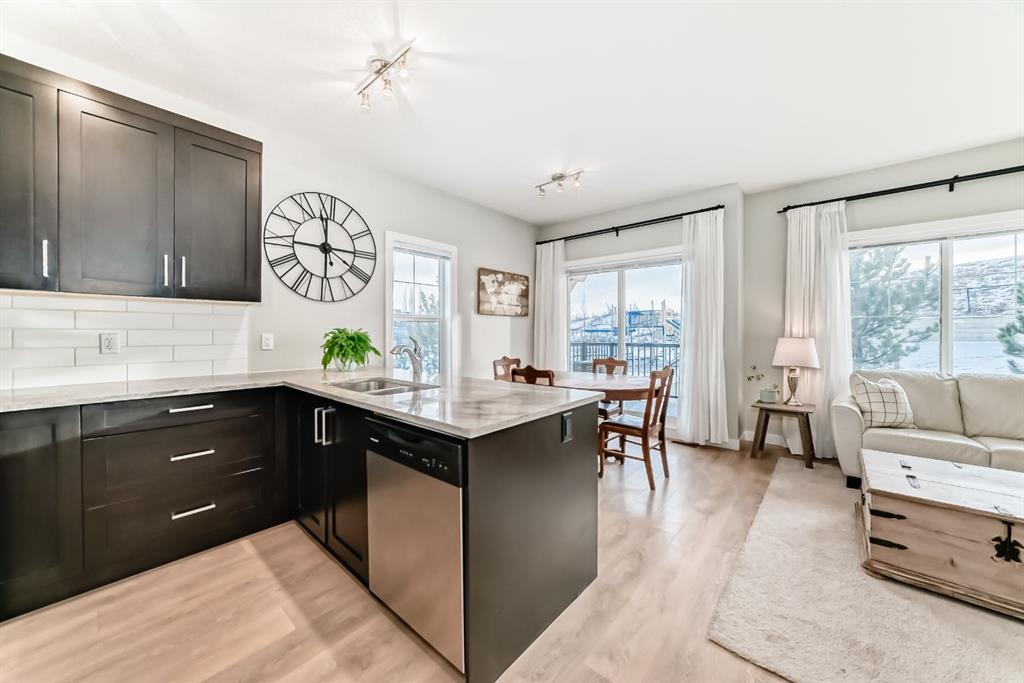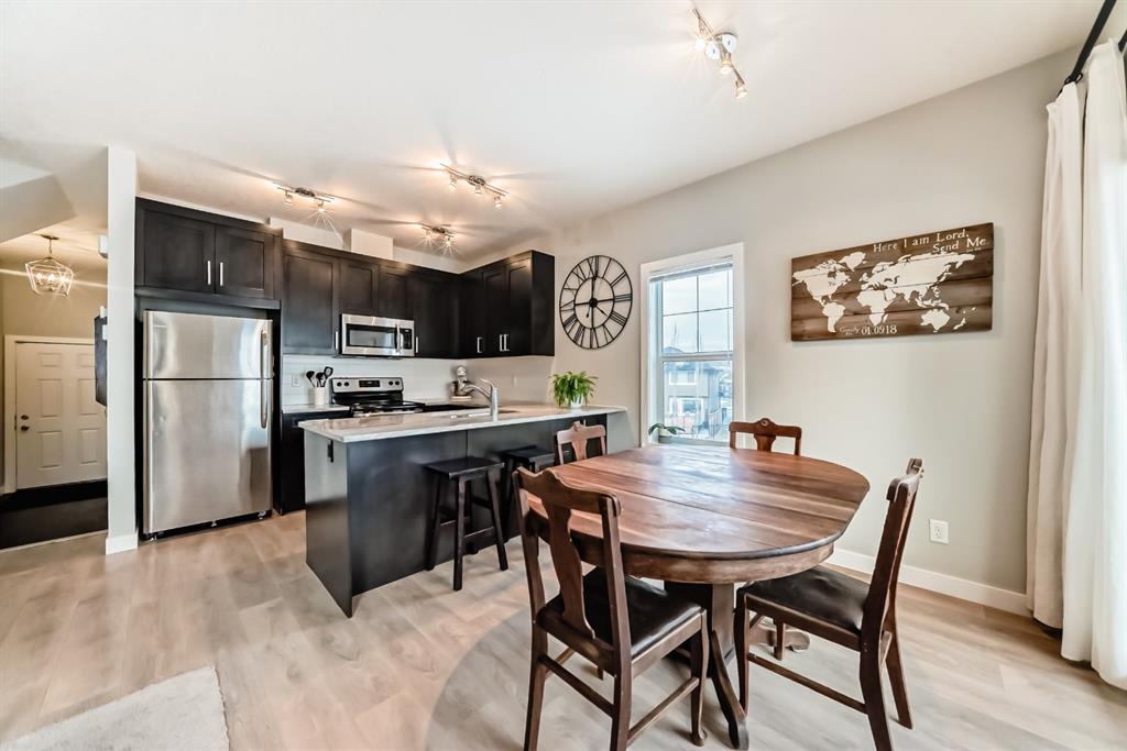 Rare opportunity in Jumping Pound! location, location, location! Beautifully maintained and updated End Unit townhome with 1,156 sq. ft of well though out living space, and backing directly onto South facing green space and a playground, with no neighbours behind. This sought after home features a rare double attached garage, open plan kitchen/dining/living room with easy access to the south facing backyard from the dining area, and abundant natural light throughout. Upstairs offers a primary bedroom with walk in closet and ensuite, plus two additional good sized bedrooms, a full family bathroom, and convenient upper level laundry. Steps from walking and biking paths and just minutes to the Bow River; ideal for outdoor enthusiasts and commuters alike. Well cared for and move in ready! A fantastic combination of location, functionality, and curb appeal. Ideally located just minutes from Schools, Shopping, Restaurants and a wide range of everyday amenities. Book your showing today.