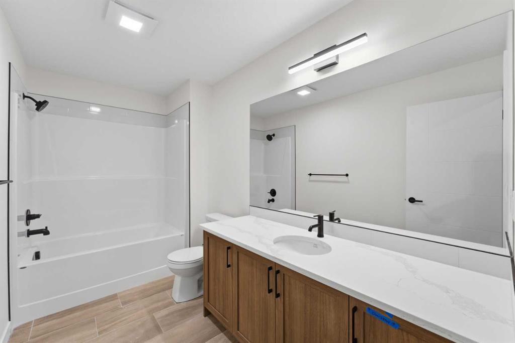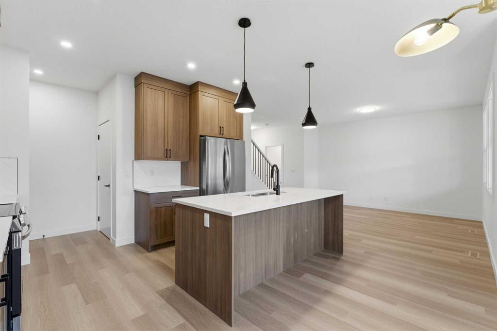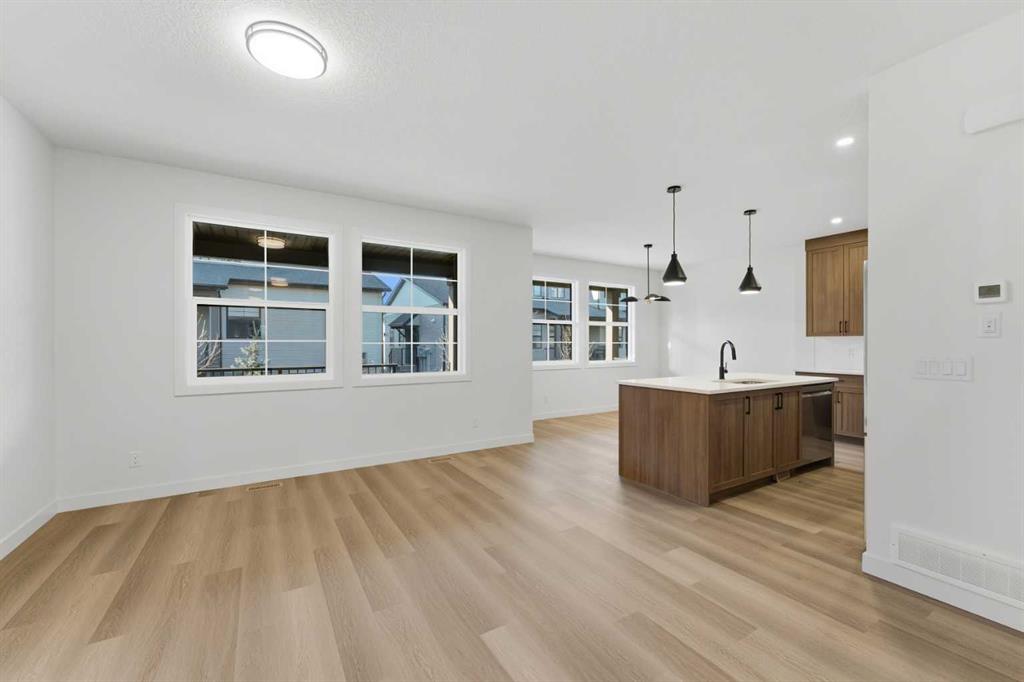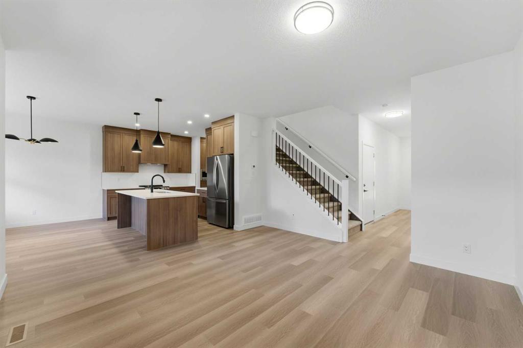 Welcome to luxury and convenience built by Vesta Properties – in the heart of Airdrie’s award-winning community of Cooper’s Crossing. This brand-new beautifully crafted interior-unit townhome combines everyday comfort with smart design. Step inside to discover a bright, functional main level that includes a stylish gourmet kitchen with an oversized island and stainless steel appliances, a cozy family room. Upstairs, a sun-soaked bonus room offers the perfect space to unwind, work from home, or enjoy family time. Just off the bonus area, you’ll find two additional bedrooms, a full bathroom, and a convenient upstairs laundry space ( No washer and dryer in unit). Also you will find your primary bedroom, which is a retreat complete with vaulted ceilings and a spa-inspired ensuite. Enjoy the added luxury of 9-foot ceilings on both the main floor and the basement, creating a spacious and airy atmosphere throughout. Summer evenings are made better on your covered west-facing balcony, with a gas line for your BBQ and views of the landscaped green space, offering a peaceful, family-friendly backdrop. Additional highlights include a double attached garage, modern contemporary exteriors, and fully landscaped yards designed for ease and curb appeal. And here’s the best part… These homes offer a true Lock & Leave lifestyle—experience it at its best! Whether you’re off traveling, managing a busy career, or simply done with yard work and snow removal, you can lock the door and go. No stress. No fuss. Just effortless, carefree living. Book your exclusive tour today!