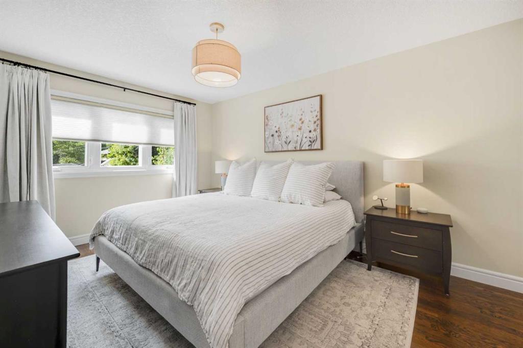 Click brochure link for more details. Exceptional home, across from the park! Stunning and spacious 4-level split. Features: beautiful backyard landscaping, semifinished oversized detached double garage w/220v electrical, shed with full electricity + lighting, gas line to deck and garage, hot + cold outdoor hose bibs, both side and rear lane access, steam shower, multiple built ins/organizers, A/C, professionally installed Radon mitigation system, knockdown ceilings, wood and gas fireplaces, new lighting, beautiful casings, gorgeous site finished hardwood flooring, and more. Walking distance to Chinook Park + Henry Wisewood schools, parks, shops, Heritage Park and Rockyview Hospital. Recent updates include finished laundry room, new stair spindles and banisters, and insulation/drywall in garage.