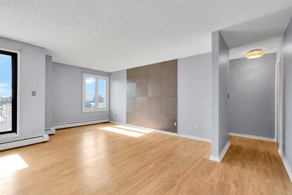 Welcome to this beautifully maintained condo in the heart of Calgary’s vibrant Beltline community. Offering over 850 sq ft of stylish living space, this bright and spacious unit features 2 bedrooms, 1 full bathroom, and an assigned, secure underground parking stall. Enjoy stunning, unobstructed south-facing views through large windows that flood the home with natural light. The open-concept layout is enhanced by sleek laminate flooring and a modern kitchen complete with white cabinetry, wood countertops, stainless steel appliances, and a convenient breakfast bar, perfect for everyday living. Step through the sliding doors off the dining area to your private balcony, an ideal spot for summer lounging or morning coffee. Both bedrooms are generously sized, each with ample closet space. A full 4-piece bathroom and in-suite laundry add to the comfort and functionality of this thoughtfully designed home. Located just steps from some of Calgary’s best restaurants, coffee shops, shopping, and public transit, this condo offers the ultimate inner-city lifestyle. Whether you’re a first-time buyer or looking for a great investment opportunity, this unit delivers exceptional value in one of the city’s most sought-after neighborhoods. Don’t miss out – book your private showing today!