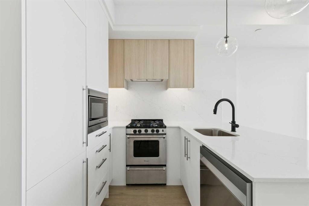 Welcome to this brand new, south-facing 2-bedroom, 2-bathroom residence offering bright, open, and modern living. The thoughtfully designed interior features durable vinyl plank flooring throughout and a sleek, efficient kitchen complete with a gas range, panel-ready Fisher & Paykel refrigerator, quartz countertops, and contemporary finishes. Enjoy seamless indoor-outdoor living with a large south-facing balcony showcasing stunning mountain views—perfect for relaxing or entertaining. The spacious primary bedroom is a true retreat, highlighted by a spa-inspired ensuite. A second interior bedroom and a well-appointed guest bathroom complete the layout. Additional conveniences include central A/C, in-suite washer and dryer, underground parking, and a dedicated storage locker. Located in a brand new Truman-built building, residents enjoy premium amenities such as a full fitness centre, games/owners lounge, dog wash, and car wash. Set in a prime west-end location with everything you need close by, this home offers exceptional value and lifestyle. Book your private viewing today!