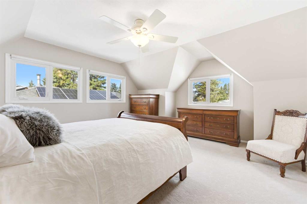 Upstairs, you’ll find two spacious bedrooms, including an impressive primary retreat , windows on multiple sides, a ceiling fan, and a walk-in closet. The second bedroom also features a walk-in closet, and abundant natural light. A well-appointed 4-piece bathroom with stone countertops and a window in the shower adds both style and function.