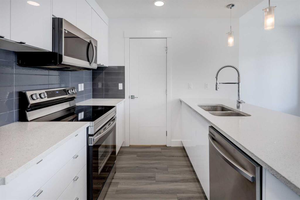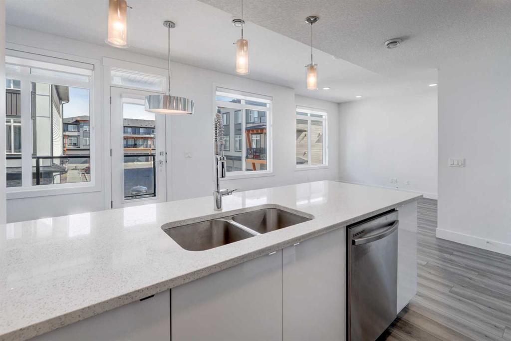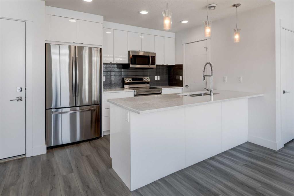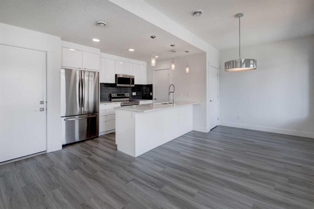 Welcome to this 2022 built AFFORDABLE townhouse with LOW CONDO FEES & a DOUBLE ATTACHED GARAGE in the heart of Saddle Ridge, arguably one of NE Calgary’s most sought after townhouse complexes with a great location that is nestled along Savanna Blvd providing easy access to Metis Trail, Stoney Trail, Costco, a future LRT/train station nearby, shopping, restaurants, playgrounds, schools & CrossIron Mills Shopping Centre. This 2-bedroom/ 2.5 bathroom home features modern vinyl plank flooring, in-unit laundry, tons of natural sunlight, quartz countertops, a modern kitchen with a sleek subway tile backsplash & stainless steel appliances. The OPEN CONCEPT main level greets you with an optimal layout seamlessly connecting the living room to the dining room, kitchen, half bathroom, laundry closet & access to the garage. The large upper level primary bedroom retreat features a 3 pc ensuite bathroom. Down the hall is the second bedroom that is conveniently located next to the 4 pc full bathroom. This is a well maintained complex in a great location that is PET FRIENDLY (upon board approval) that does not have many units come up for sale, especially at this price point!
