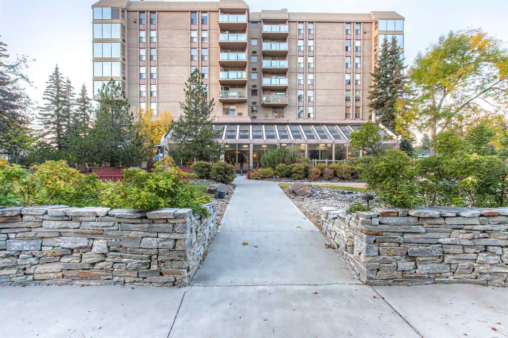 Penthouse condominium home in the lovely Varsity Towers. This top floor unit provides a beautiful living space and expansive distant views to the south and west that include the mountains, an overlook of Varsity, and the river valley. Excellent floor plan that provides an open plan and comfortable divided spaces. A Large kitchen with granite counters and quality built-in appliances connects to a very lovely sunroom with views to the south and west. The generous living room is warmed by a gas fireplace. Apart from the living spaces, a hallway leads to 2 large bedrooms and an office (easy conversion to 3rd bedroom if desired). The primary bedroom has a gas fireplace, a balcony to the outside deck space, a walk-in closet and a large 5pc ensuite bath. Separate laundry room in hallway next to the 4pc main bathroom. The home is excellent! Now amenities: Roof top patio (stairway directly outside the unit door) for enjoying the view, sunning, or a bbq., a beautiful indoor pool, exceptional private garden spaces, a well equipped gym, theatre/games room, library/study room, warm lobby spaces. In addition, this home comes with 2 indoor parking spaces and its own storage room. This home and property offers excellent value by ft$ while providing a great lifestyle.