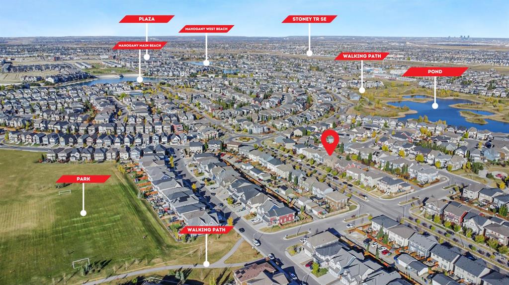 Welcome to the award-winning lake community of Mahogany! Ideally located just steps from the Beach Club, this warm and inviting semi-detached home offers the perfect blend of comfort, style, and community living.This home is sure to impress with a desirable floor plan featuring an open concept design, 9’ ceilings, wide plank laminate floors throughout the main level, and oversized windows that fill the space with natural light. The heart of the home is the upgraded kitchen, showcasing quartz countertops, modern cabinetry, and a layout designed for both everyday family meals and effortless entertaining. You’ll also appreciate the comfort of central air conditioning, keeping the home cool and inviting during the warm summer months. Upstairs, you’ll find three spacious bedrooms, including a relaxing primary suite complete with a private ensuite and walk-in closet. A second full bathroom makes busy mornings effortless. The finished basement extends your living space with a fourth bedroom, three-piece bathroom, and a flexible rec area that can grow with your family — whether it’s a playroom, home gym, or movie space. Steps from your doorstep, enjoy all that Mahogany has to offer: sandy beaches, swimming, skating, parks, pathways, and year-round activities for every age. This is where family memories are made — welcome home to Mahogany.