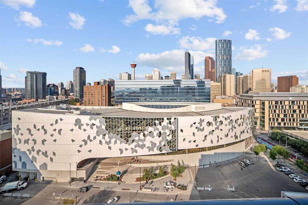 The building is packed with amenities: a rooftop patio with BBQs and 360° city views, a fully equipped gym on the 16th floor, lounge, bike storage, and personal storage lockers. Just steps from the LRT, Studio Bell, restaurants, shopping, and the Central Library, this condo combines style, convenience, and location