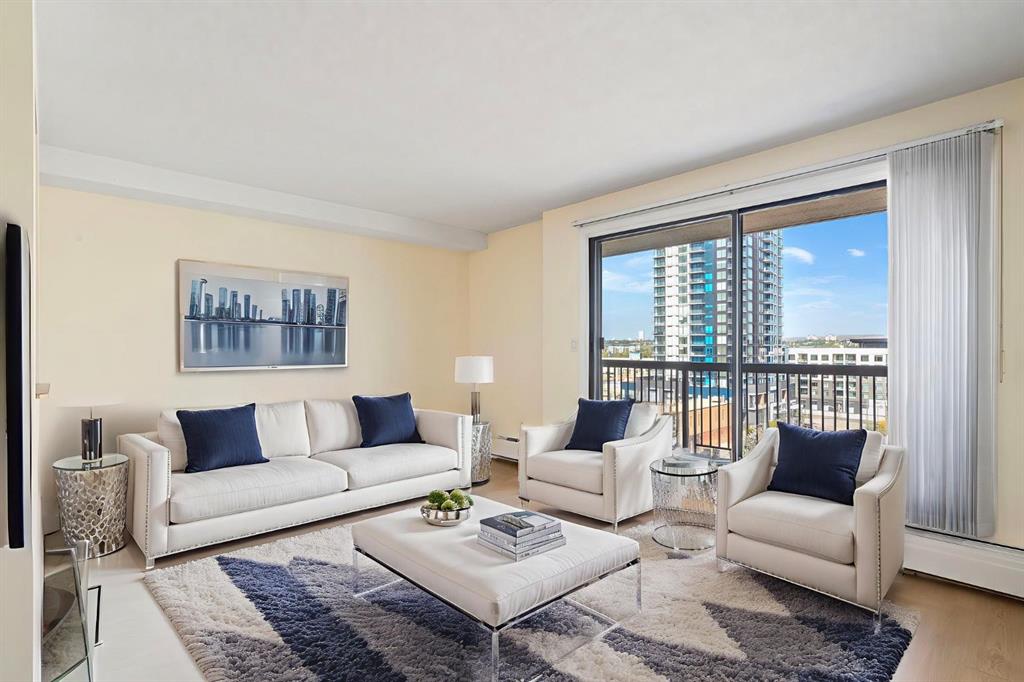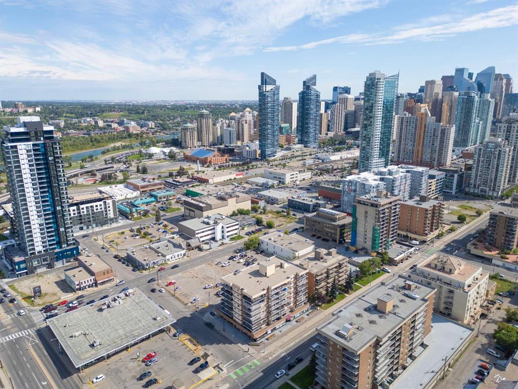 This bright and well-positioned 1-bedroom, 1-bathroom condo presents an outstanding opportunity for both first-time buyers and savvy investors looking to secure a foothold in Calgary’s downtown core. Thoughtfully updated with fresh paint and brand-new laminate flooring, the unit offers a clean, modern canvas that’s move-in ready with room to make it your own. Perched on the 8th floor of The Ravenwood, the home is filled with natural light, highlighted by a large patio door that opens onto a covered balcony—an ideal spot to enjoy morning coffee, evening sunsets, or the vibrant city atmosphere. The efficient galley-style kitchen provides generous cabinetry, while the spacious living area easily accommodates both everyday living and entertaining. A full 4-piece bathroom and a comfortable bedroom with window and closet complete the space. With secure building access, elevator service, and an unbeatable location just steps from restaurants, shops, and transit, this condo offers exceptional value and urban convenience in the heart of downtown.